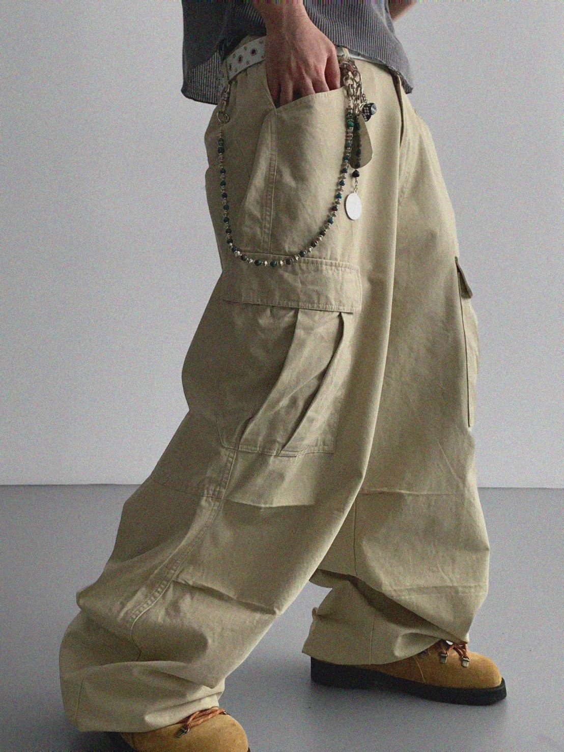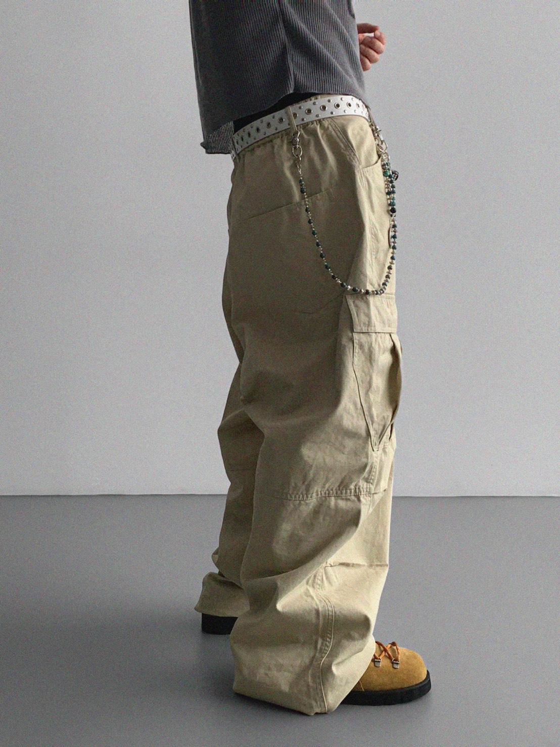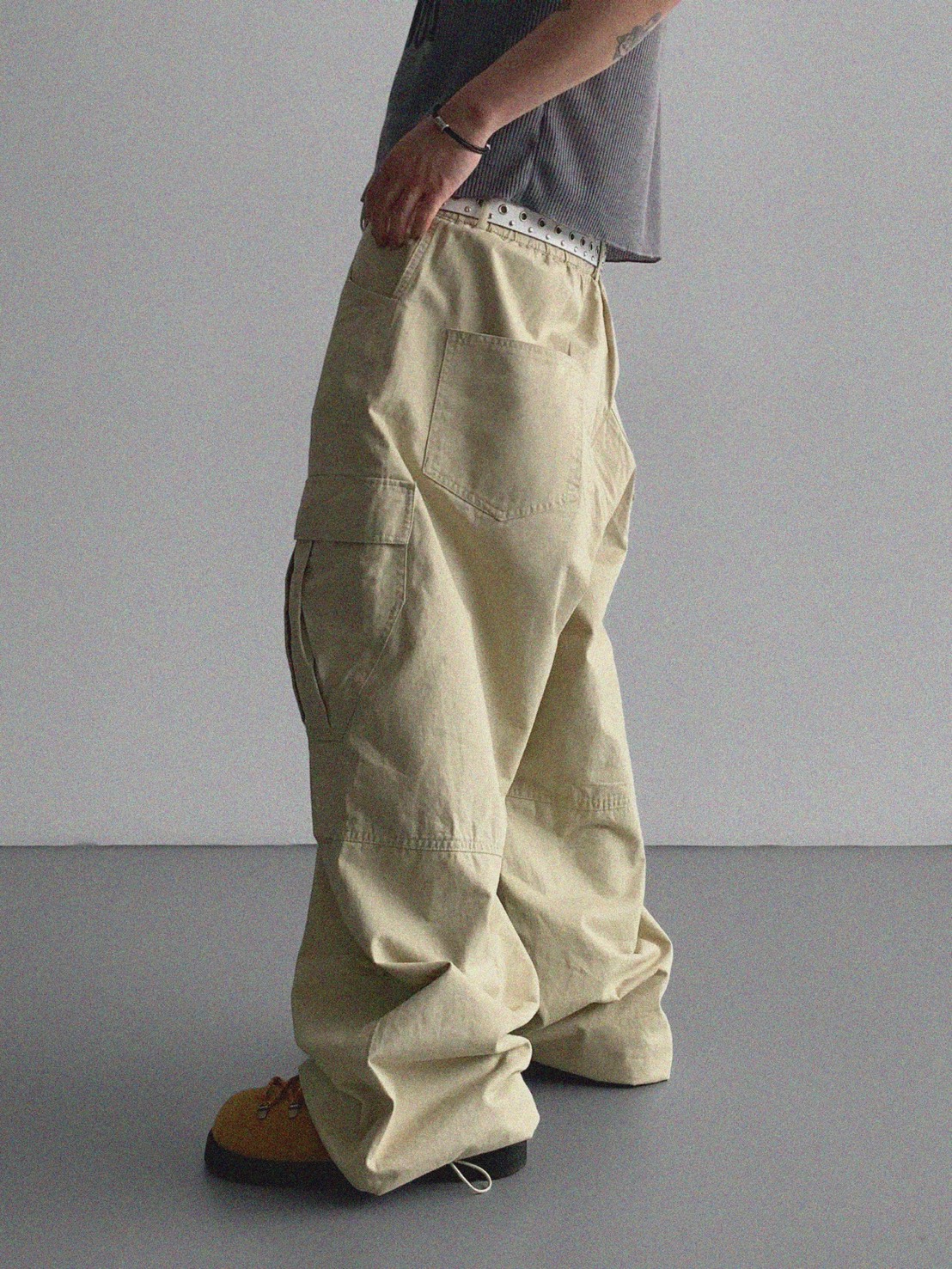 韓國 2.0 新版 立體 打摺 大口袋 堆積感 落地 工作褲 (2color)