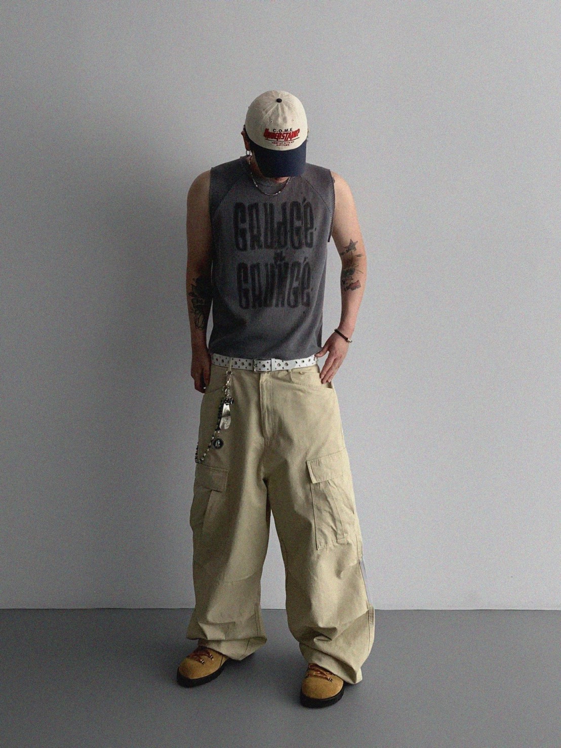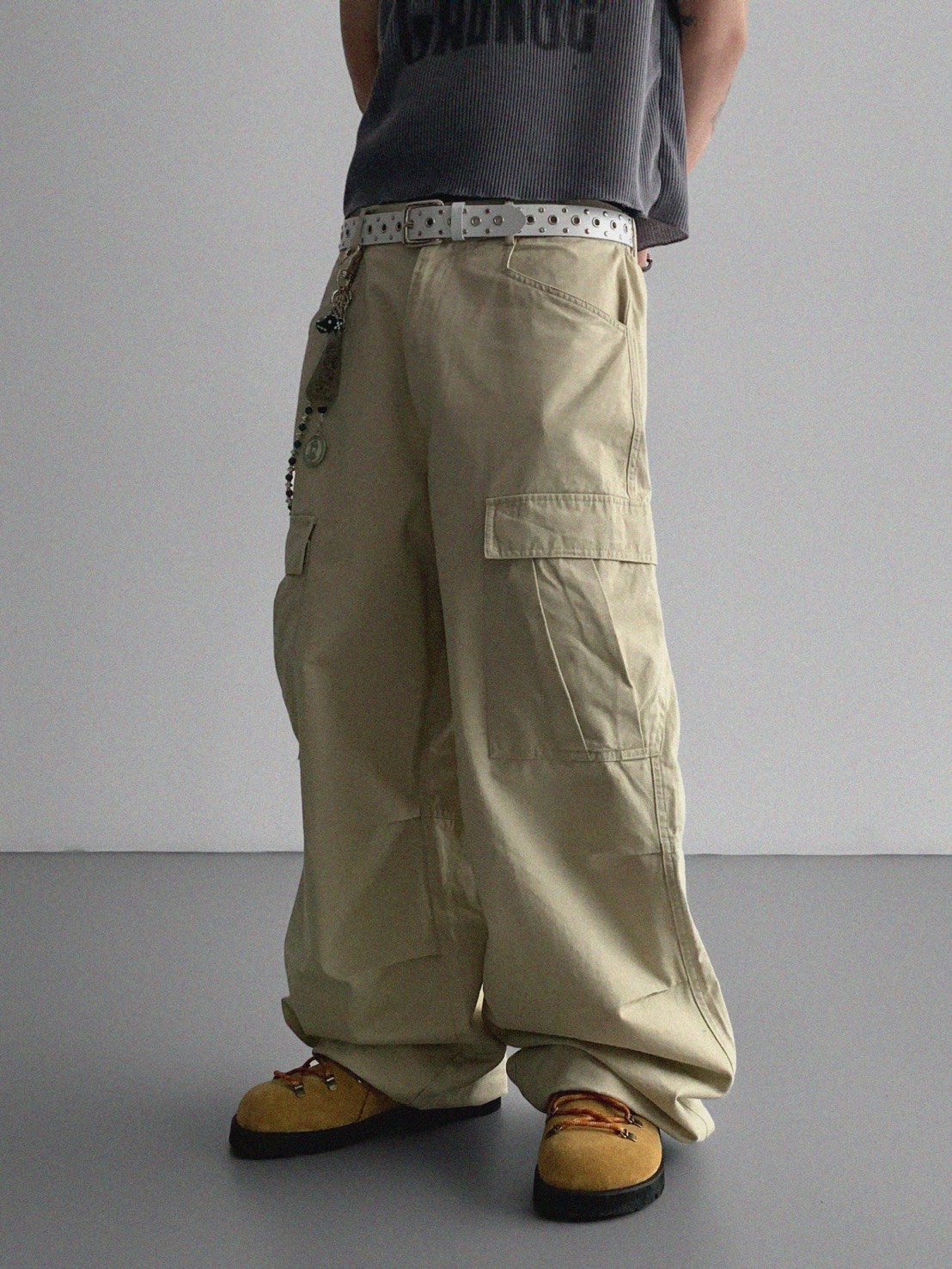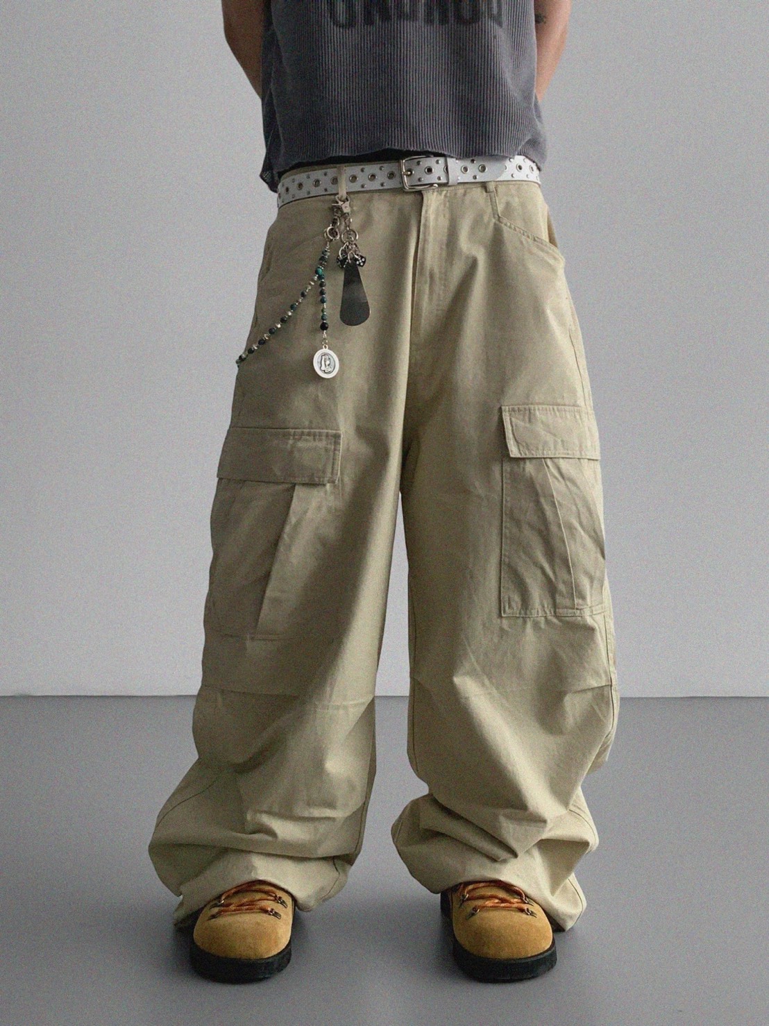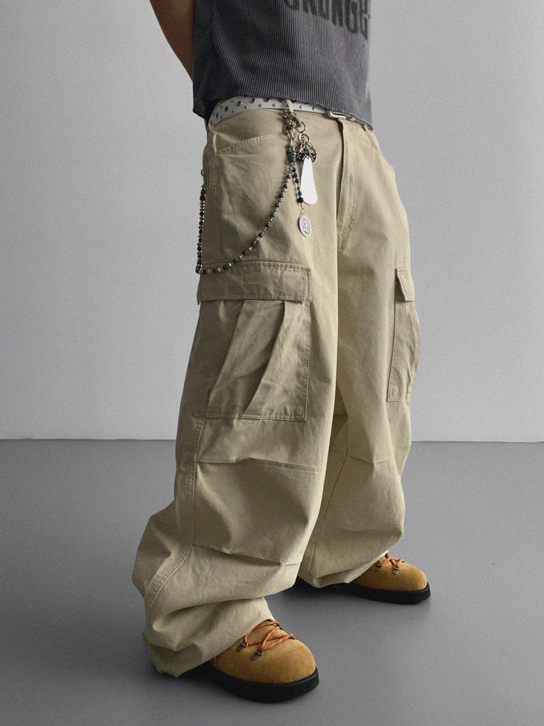 韓國 2.0 新版 立體 打摺 大口袋 堆積感 落地 工作褲 (2color)