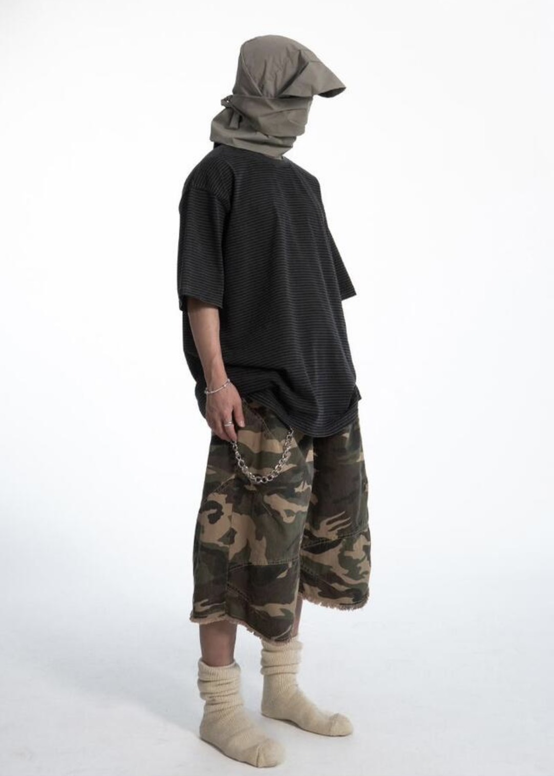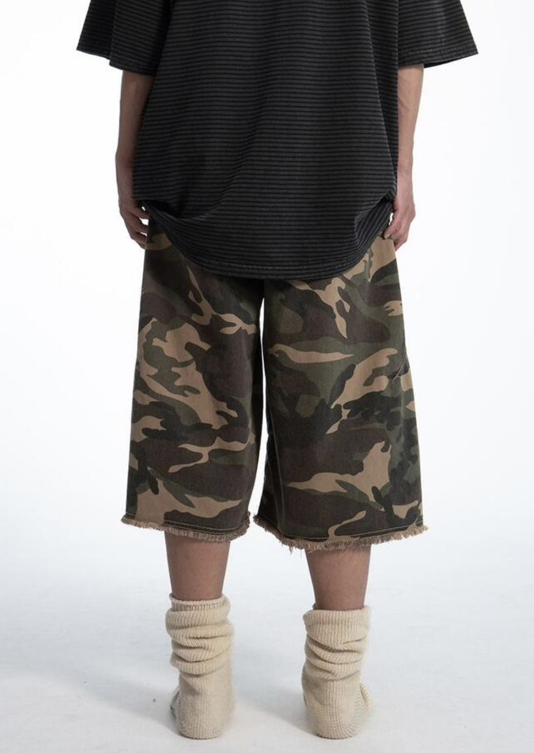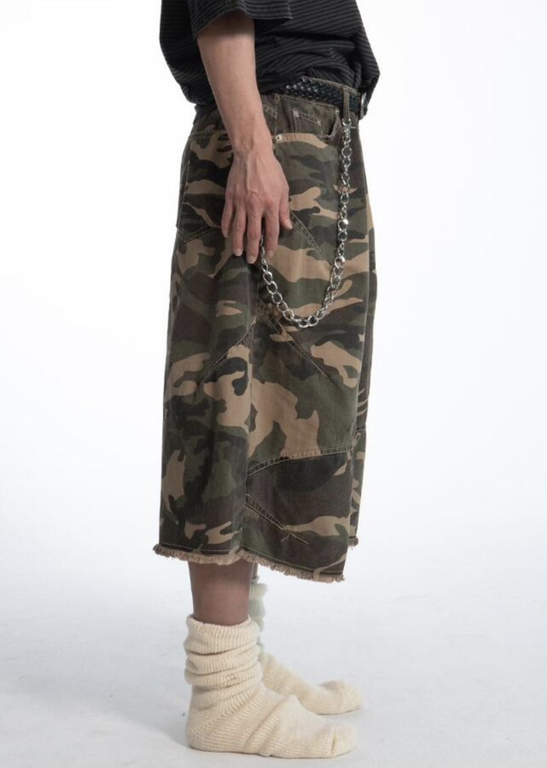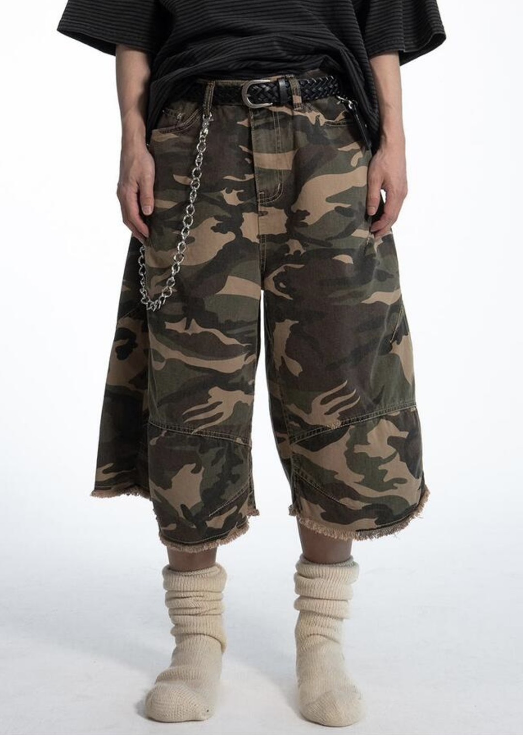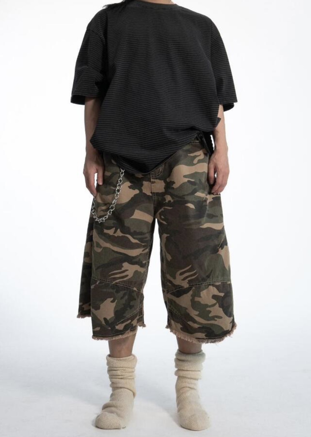 韓國 百慕達 迷彩 不收邊 膝下 工作短褲