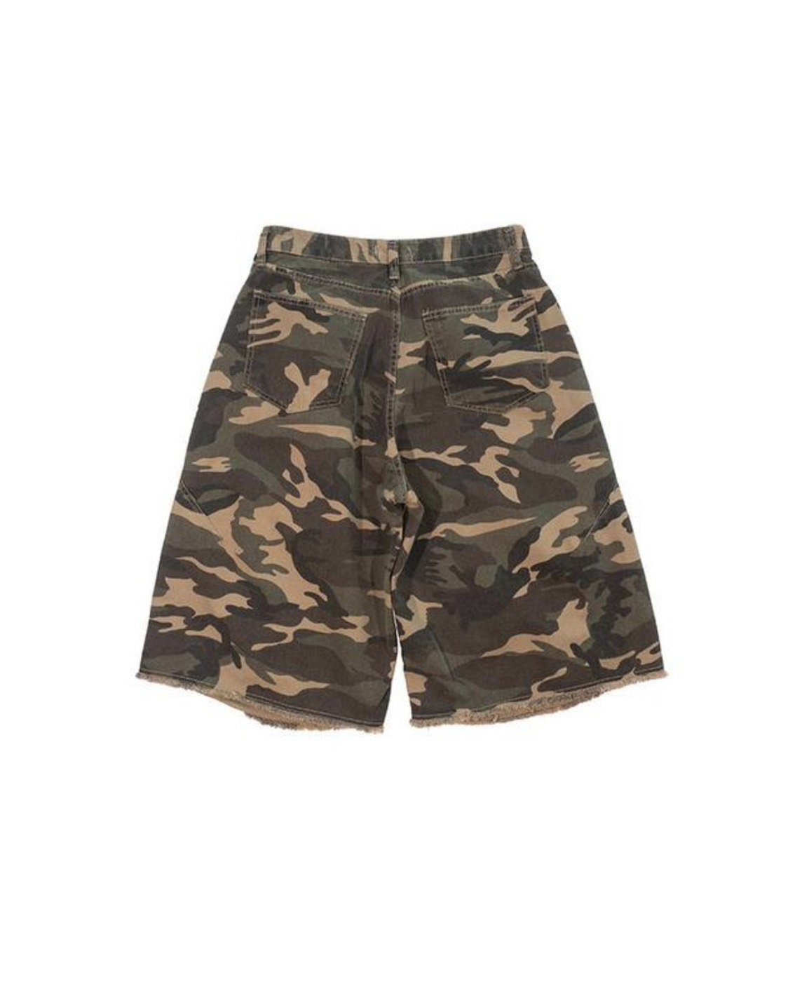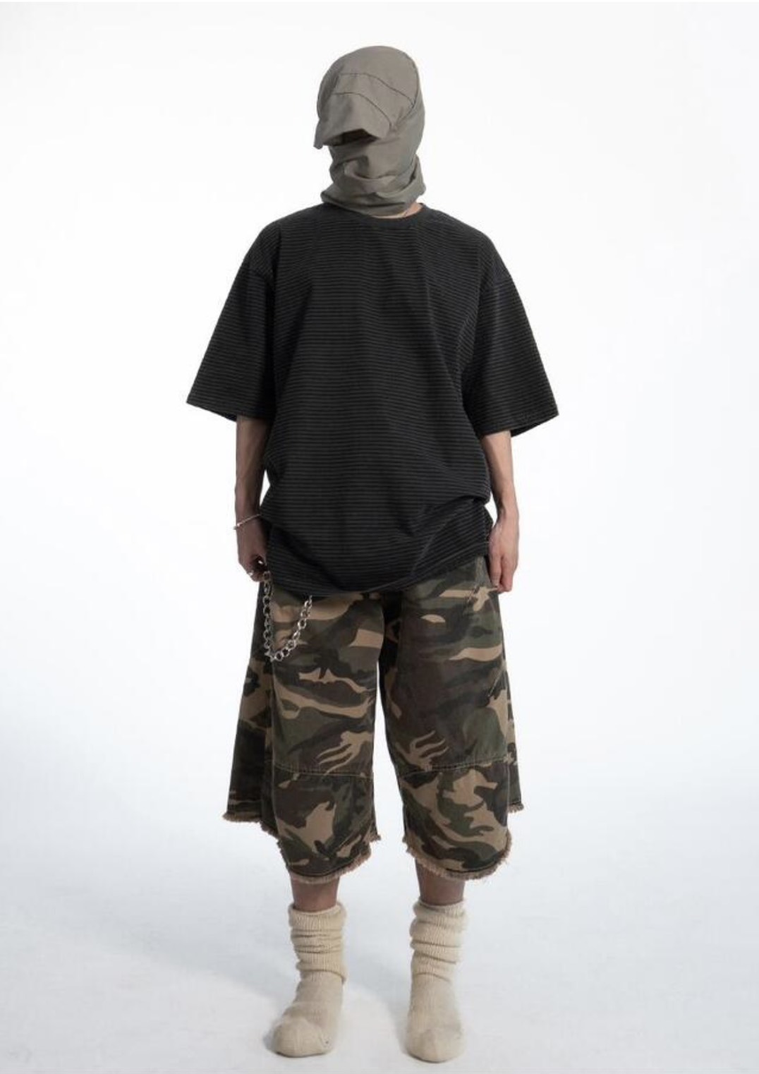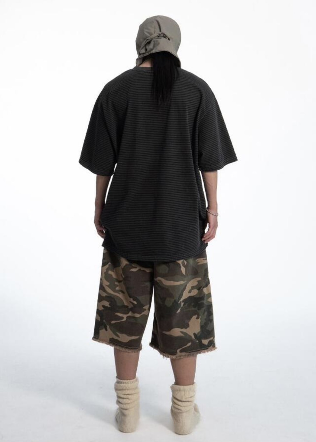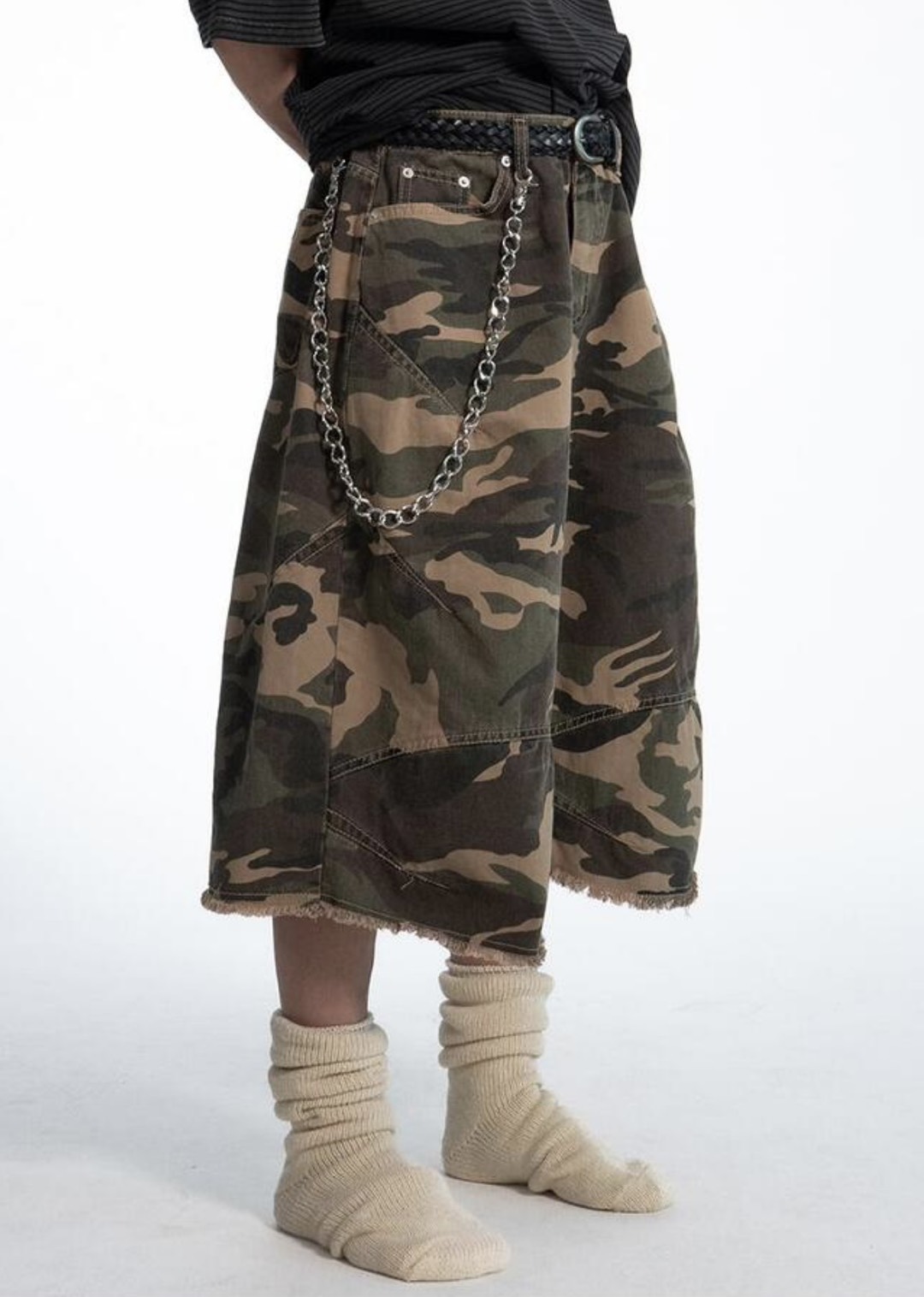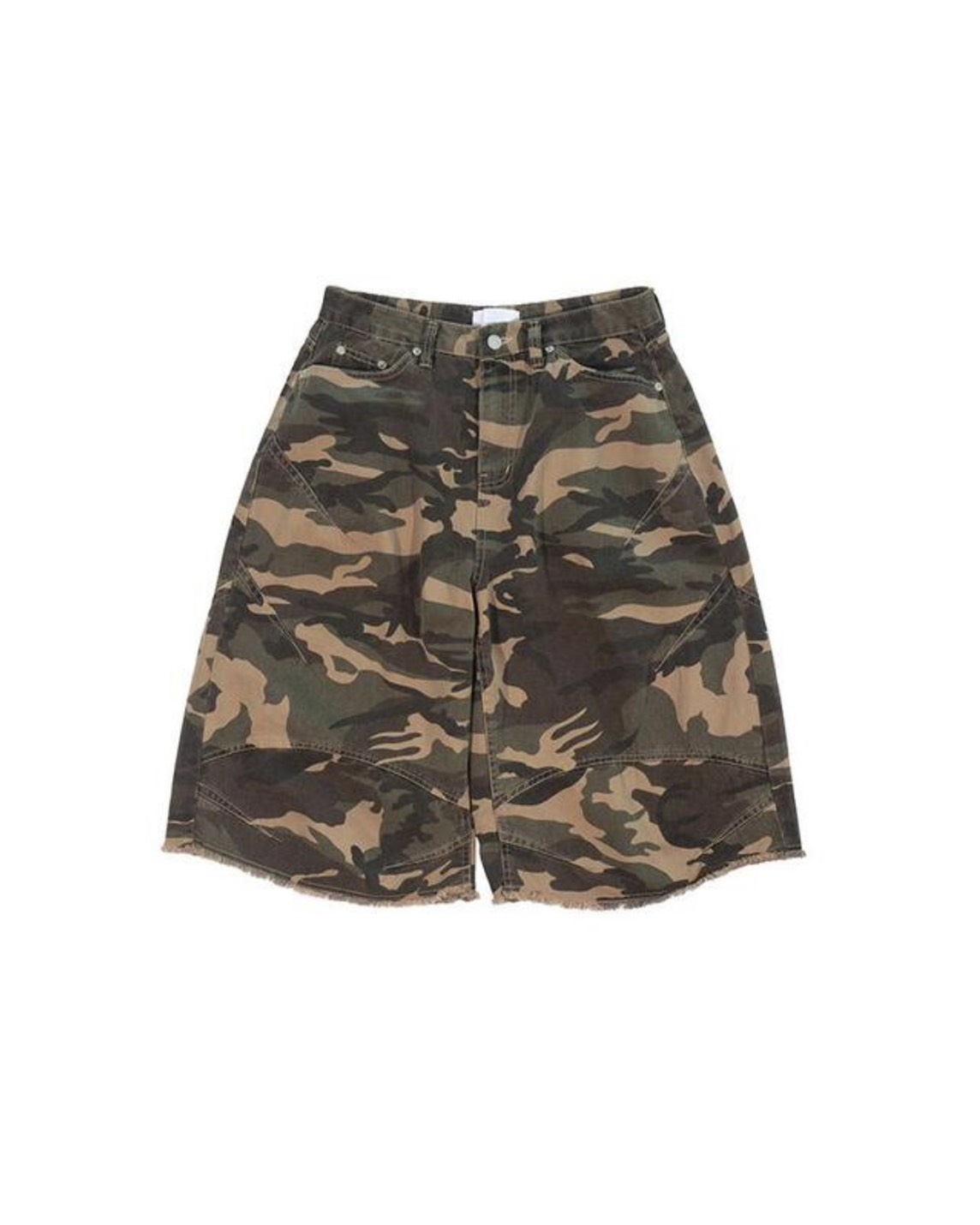 韓國 百慕達 迷彩 不收邊 膝下 工作短褲
