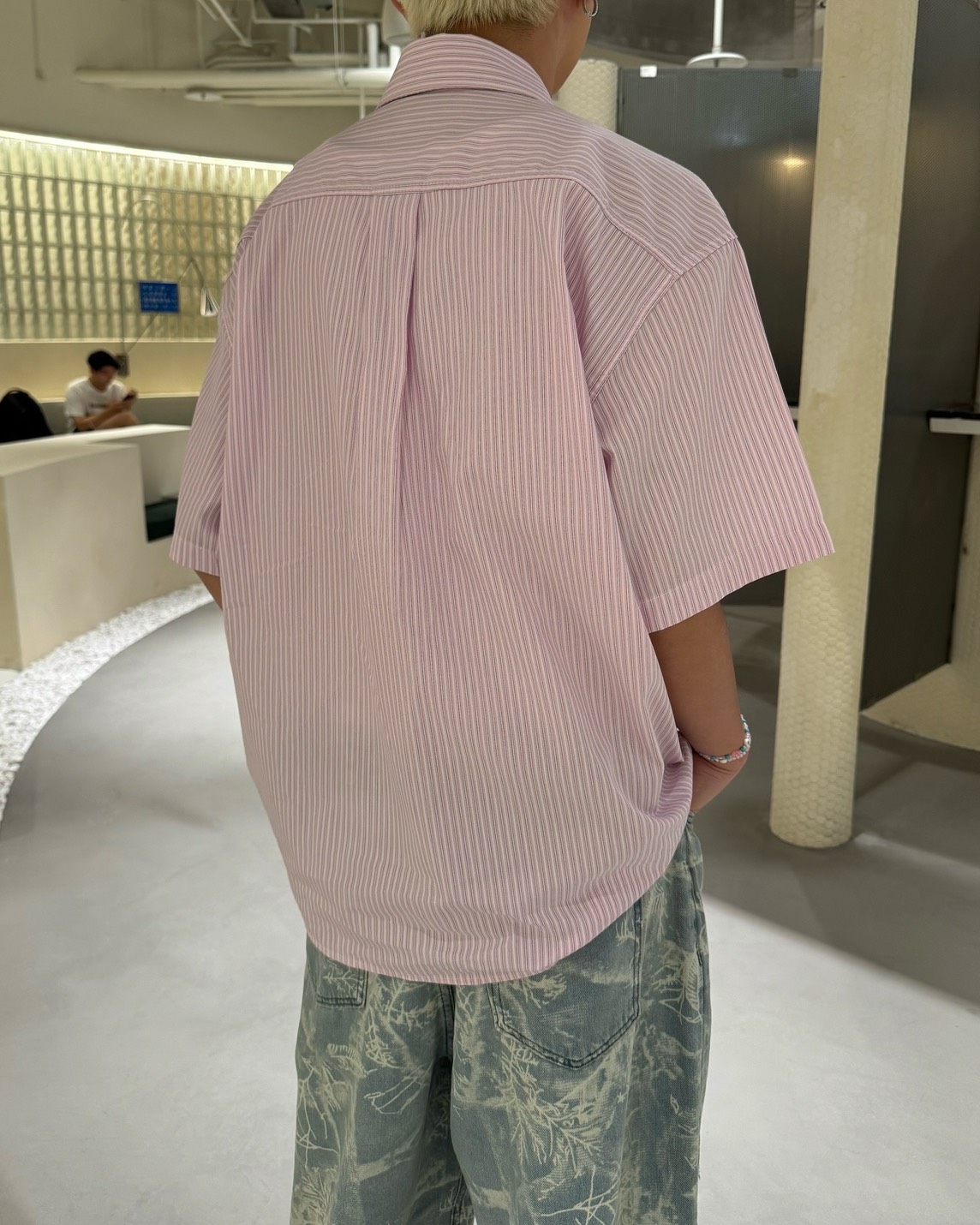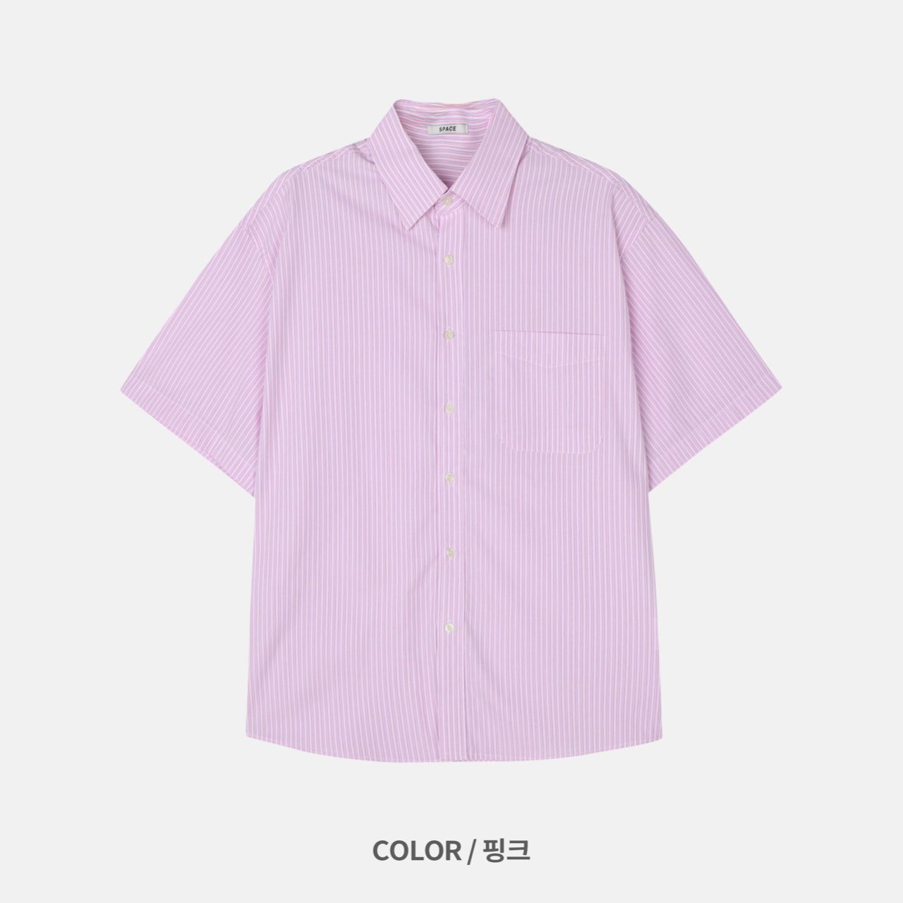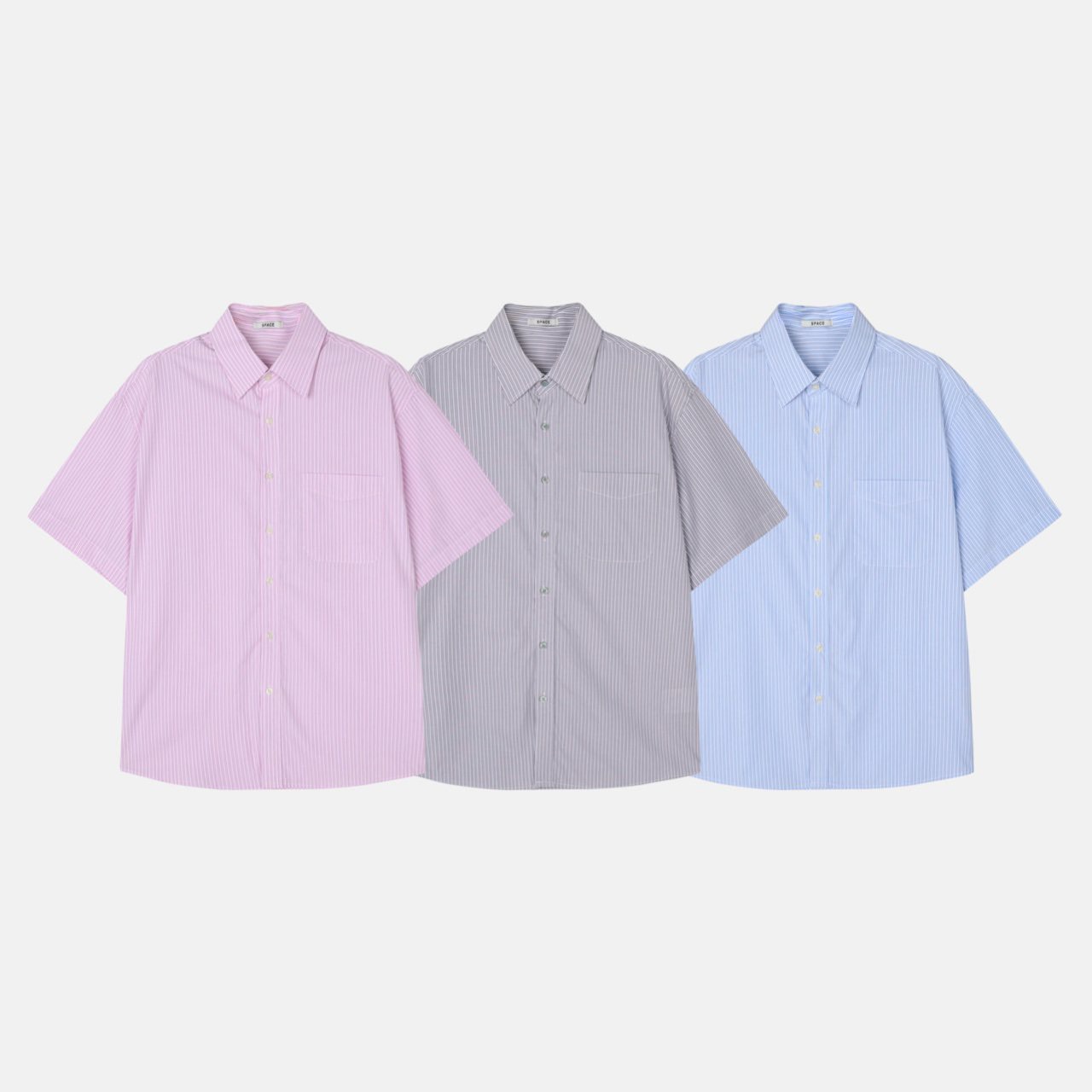 韓國 繽紛 夏日 糖果色 直條紋 口袋 短袖襯衫 (3color)