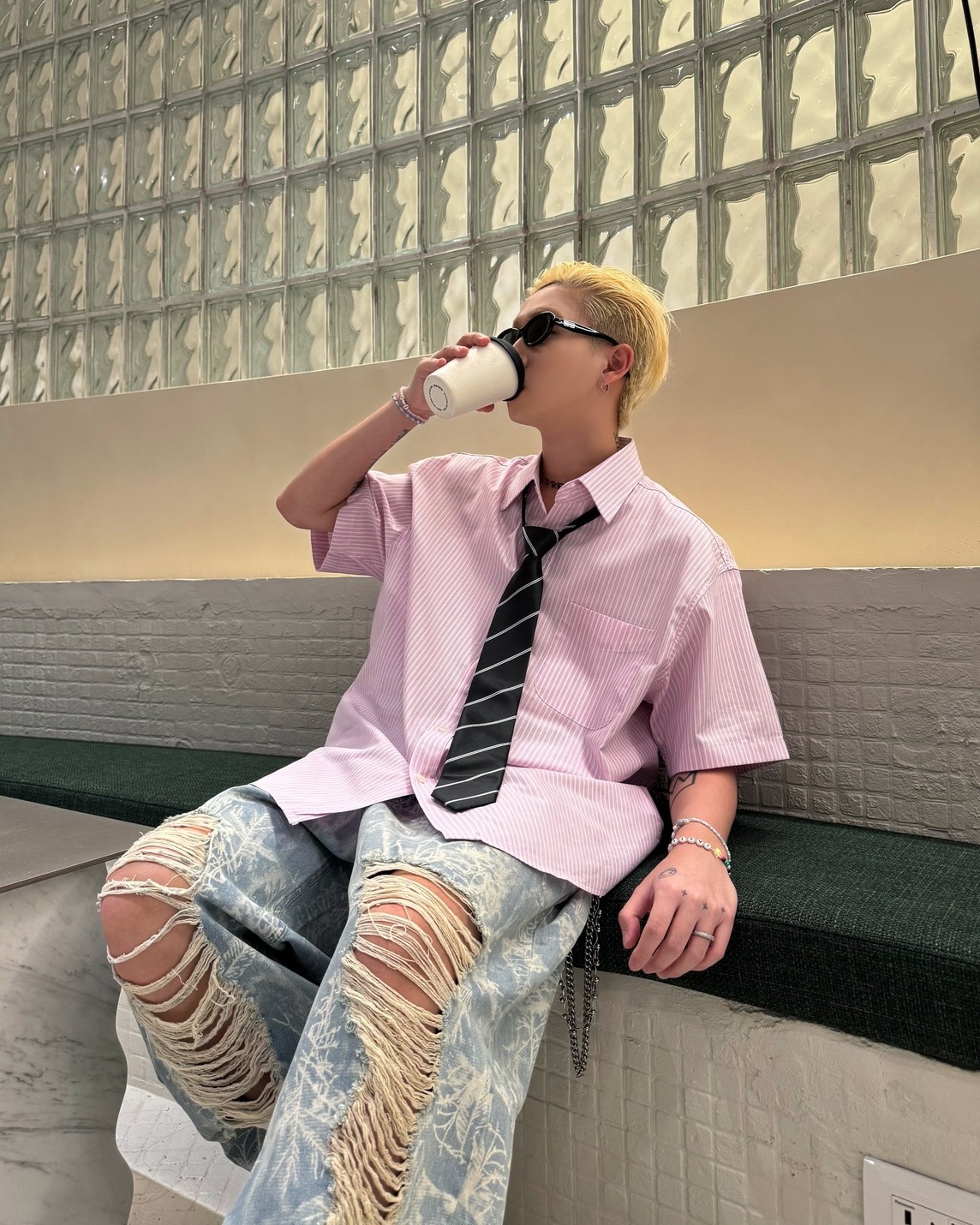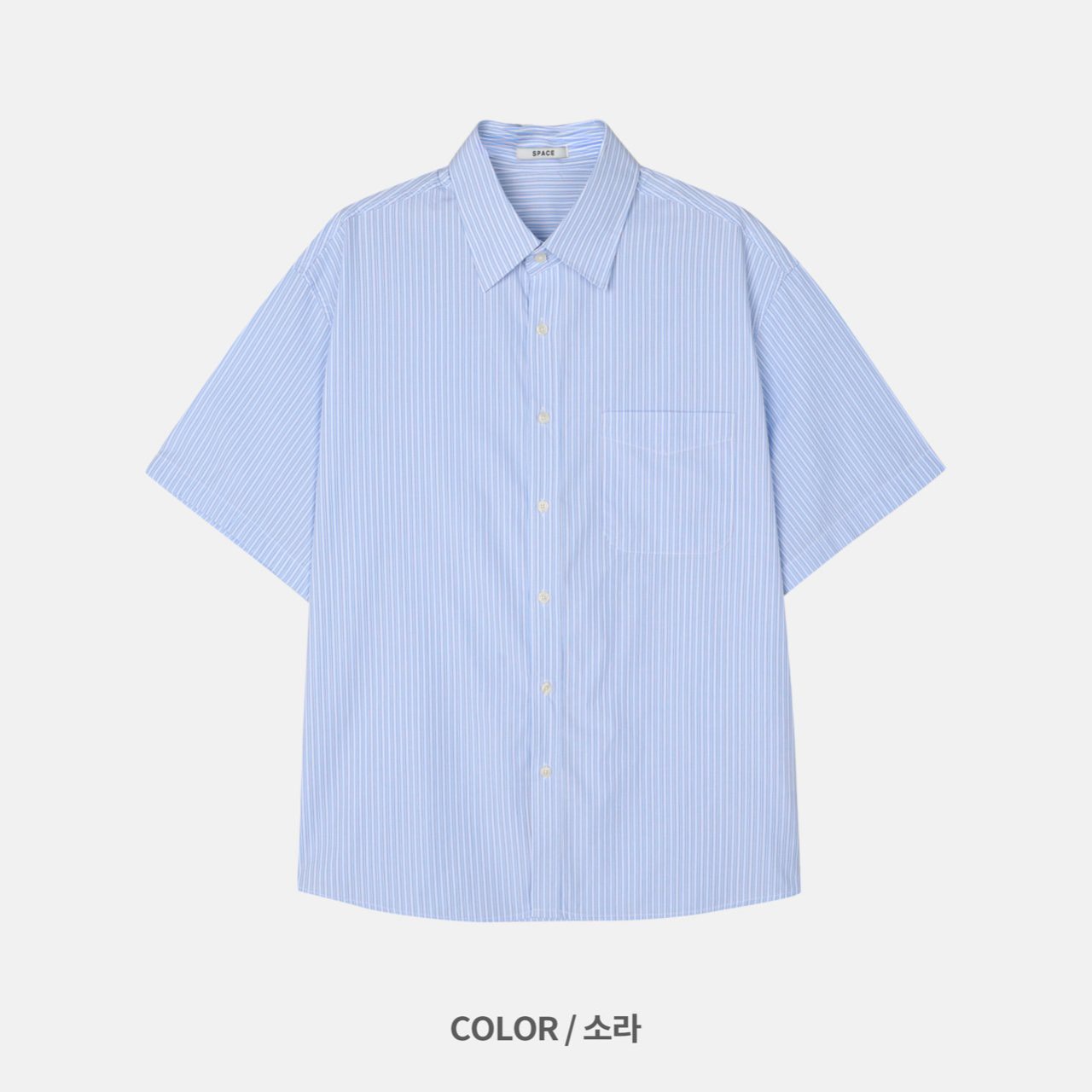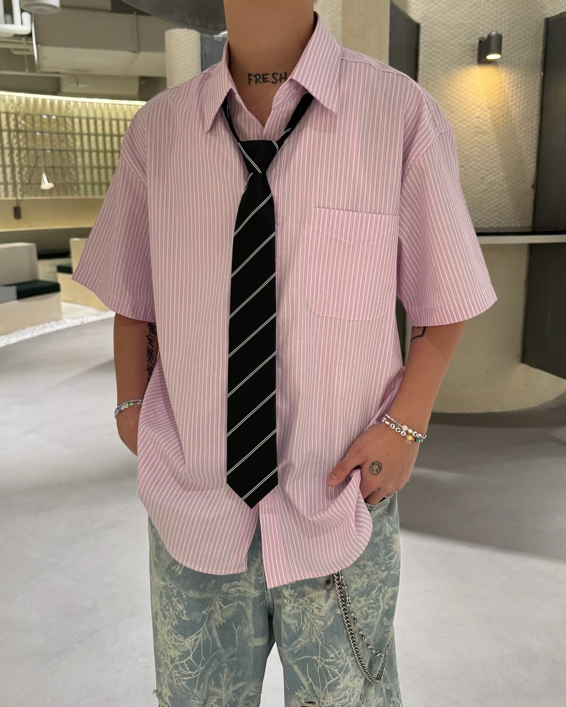 韓國 繽紛 夏日 糖果色 直條紋 口袋 短袖襯衫 (3color)