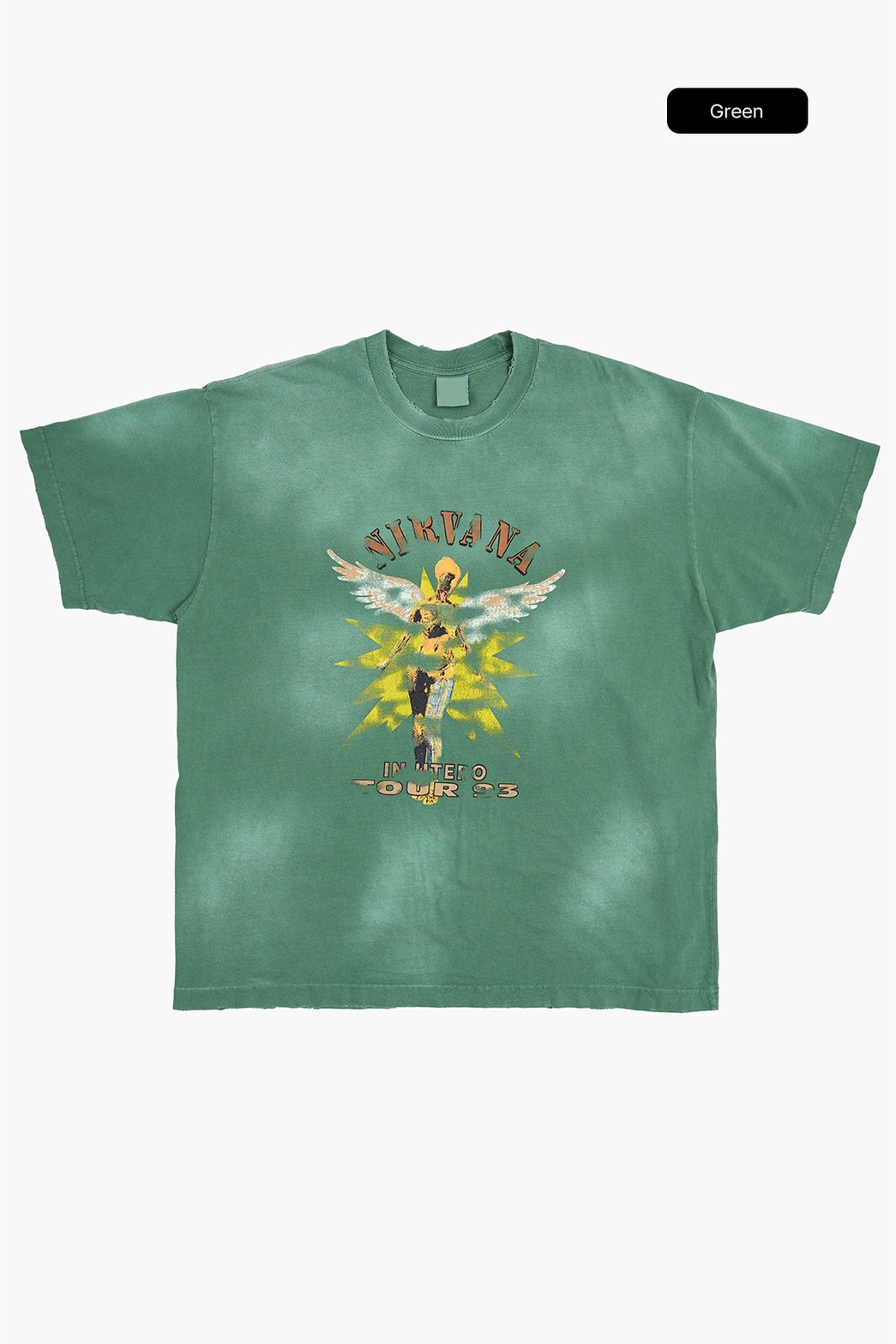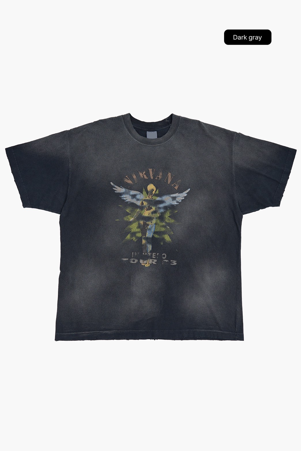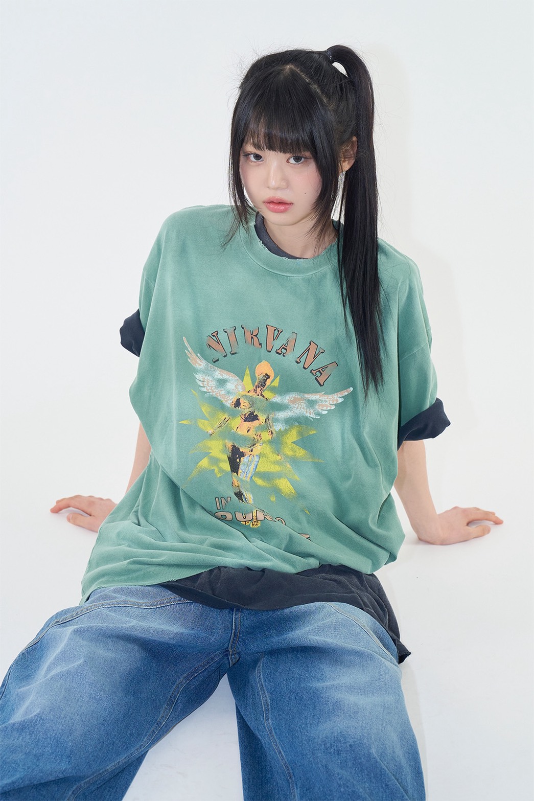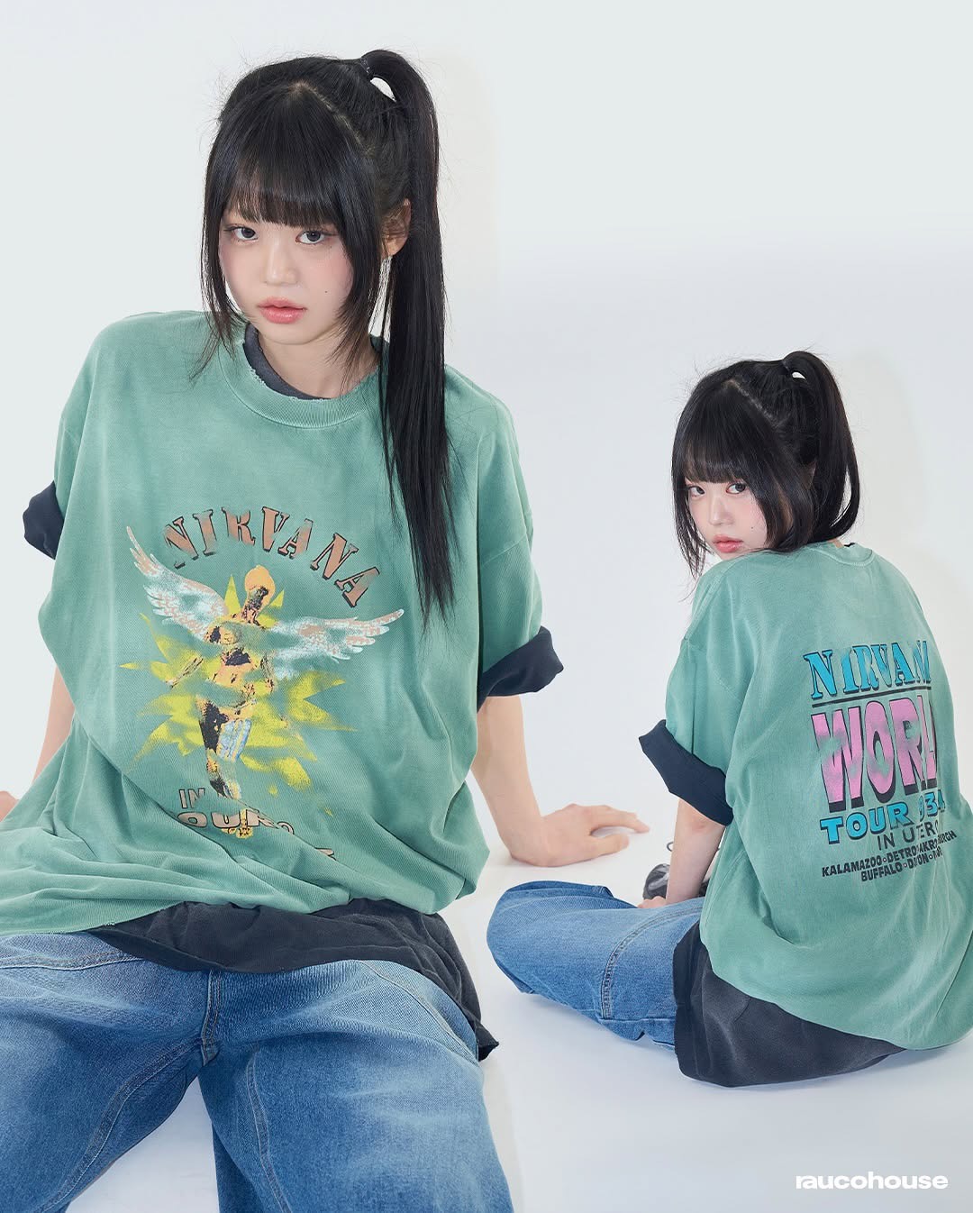 Rauco house NIRVANA WORLD TOUR 斑駁 天使 水洗 做舊感 短T (2color)
