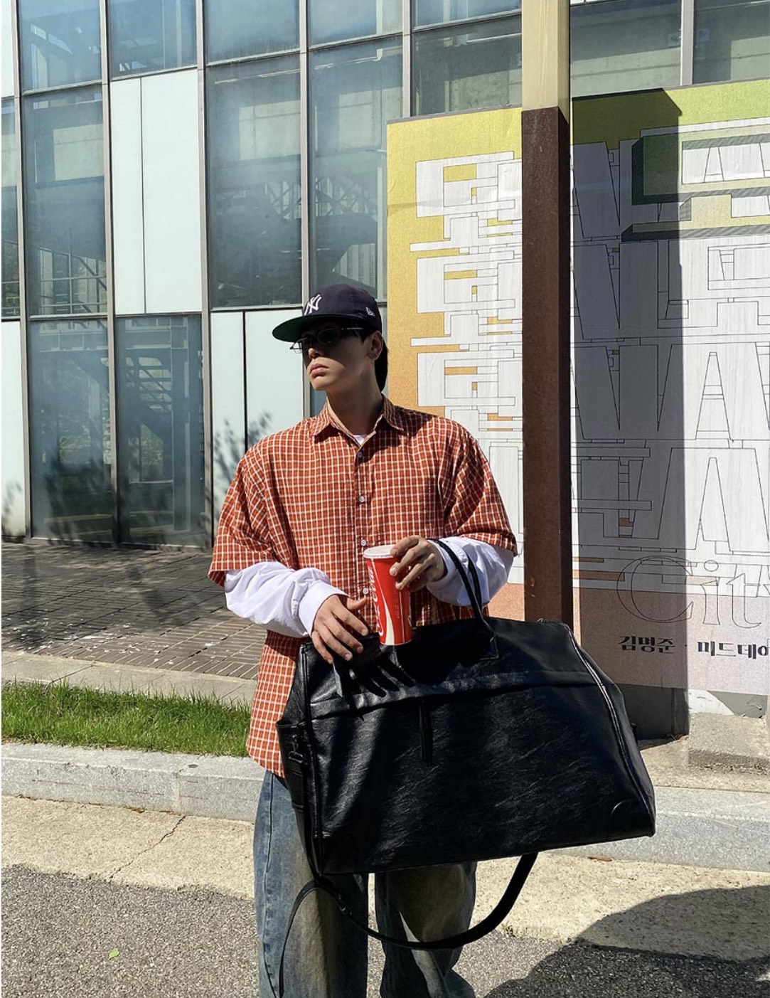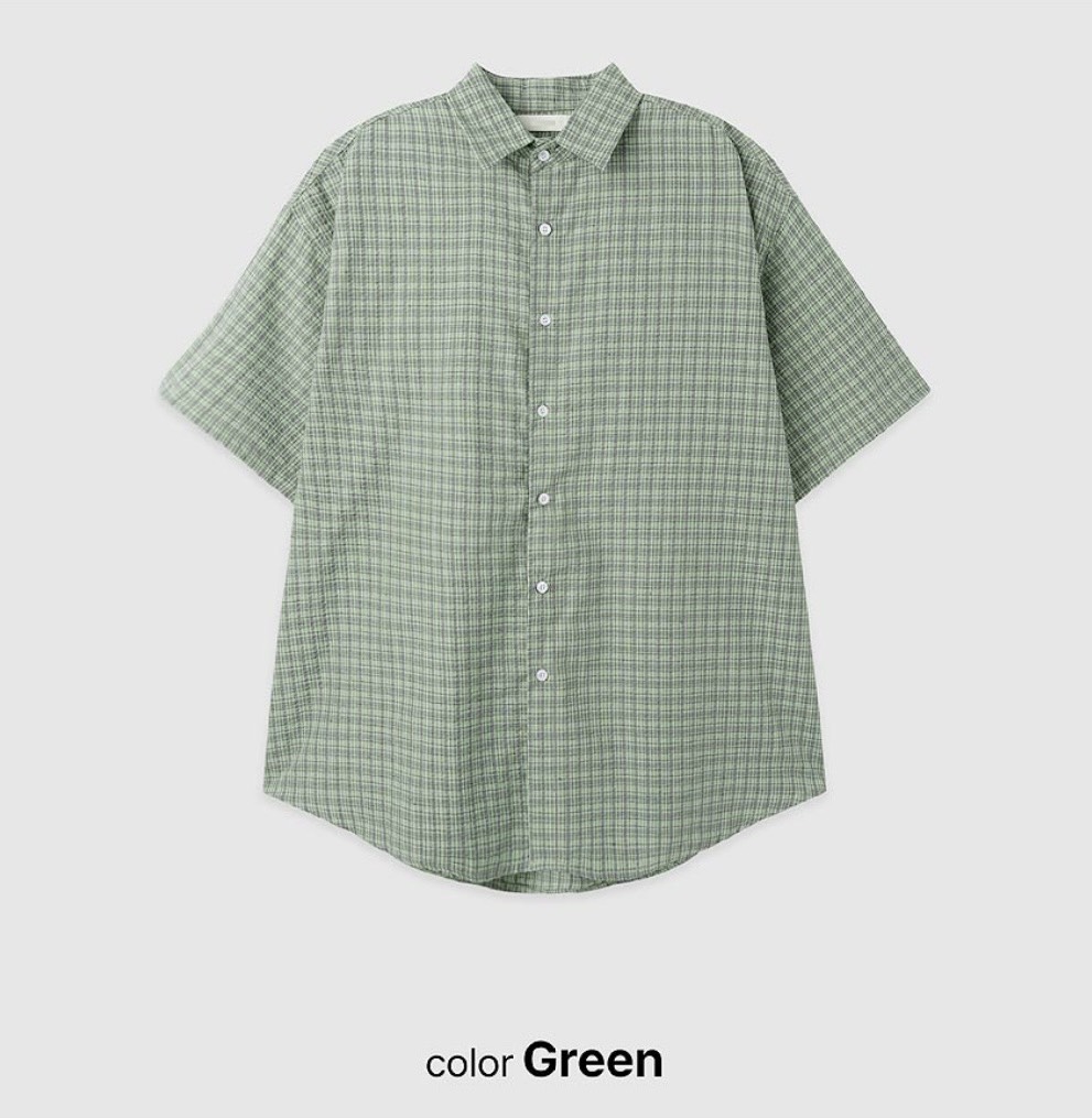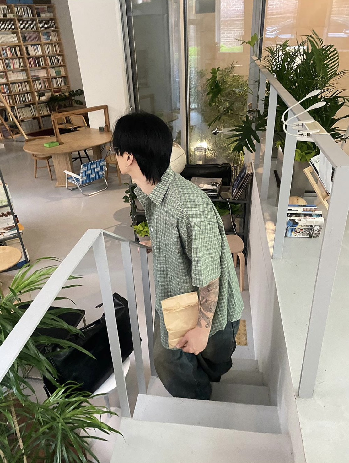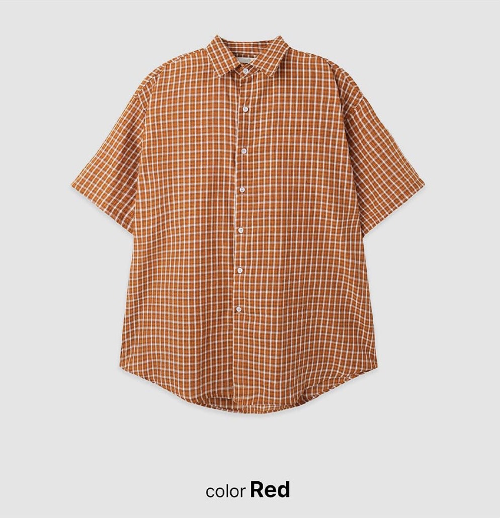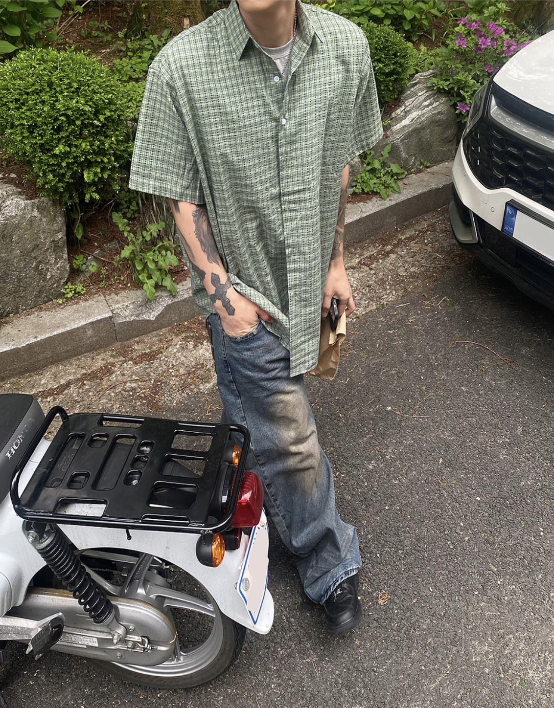 HOLY IN CODE 美式 復古 格紋 圓弧下擺 短袖襯衫 (3color)