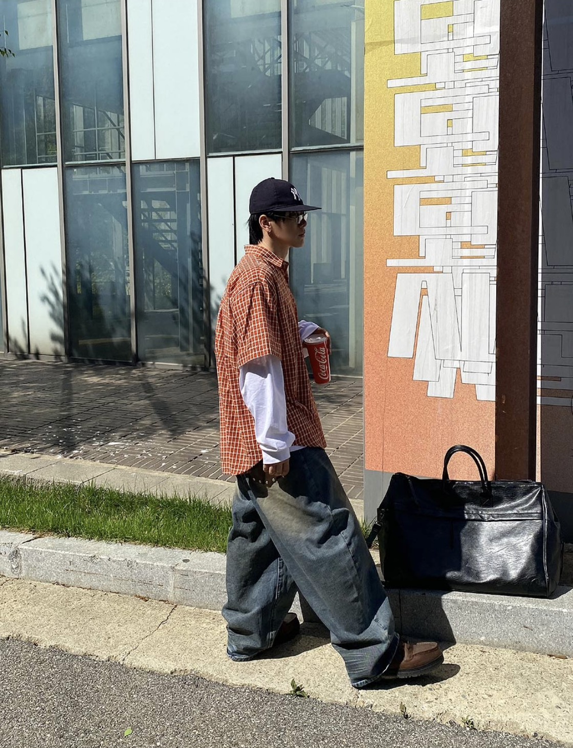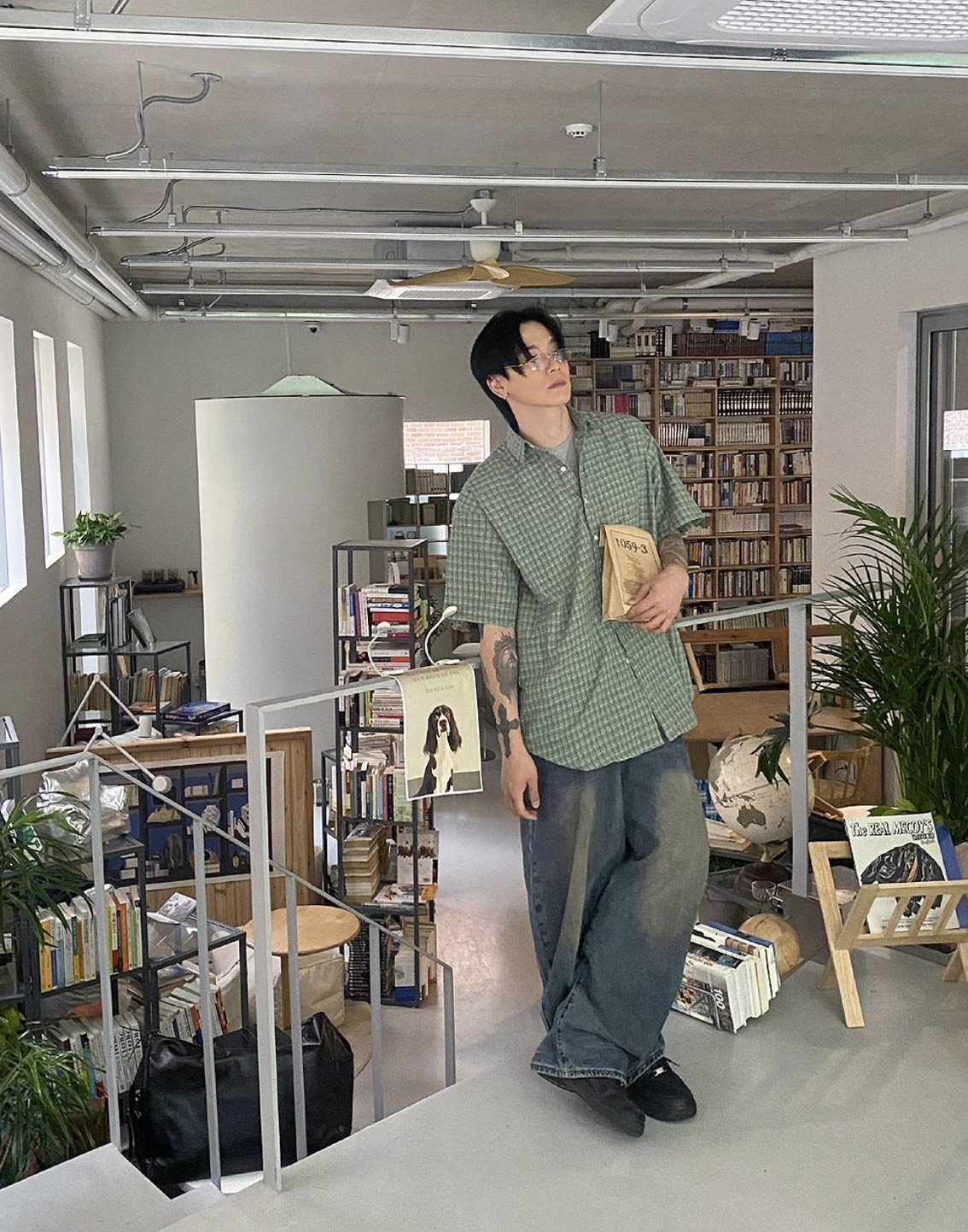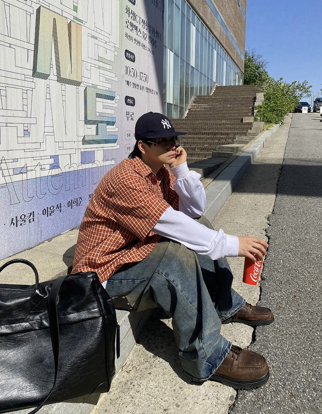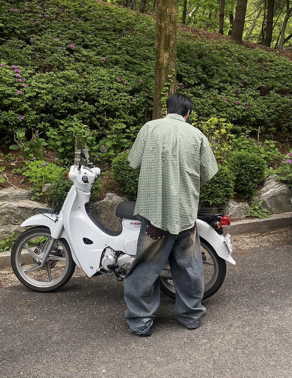 HOLY IN CODE 美式 復古 格紋 圓弧下擺 短袖襯衫 (3color)