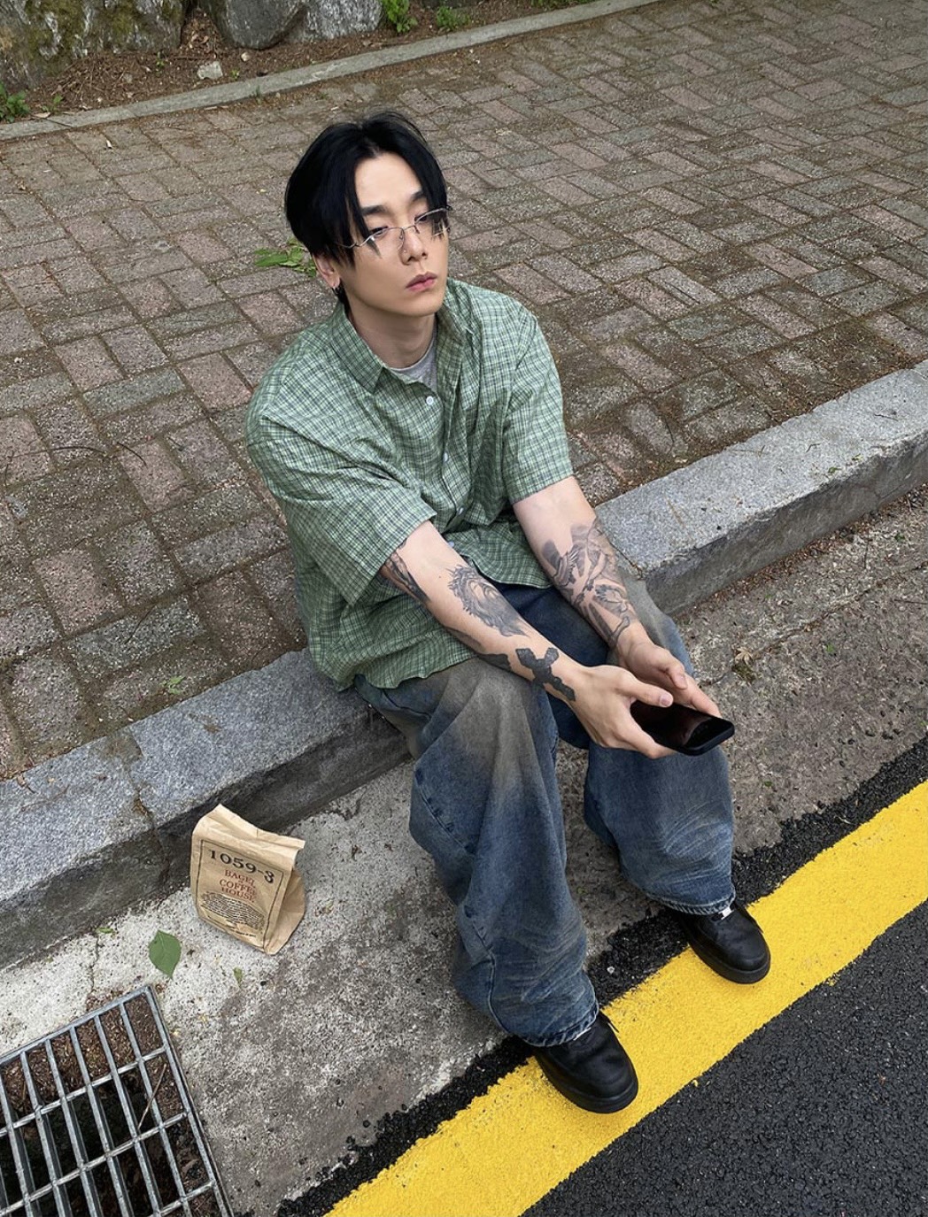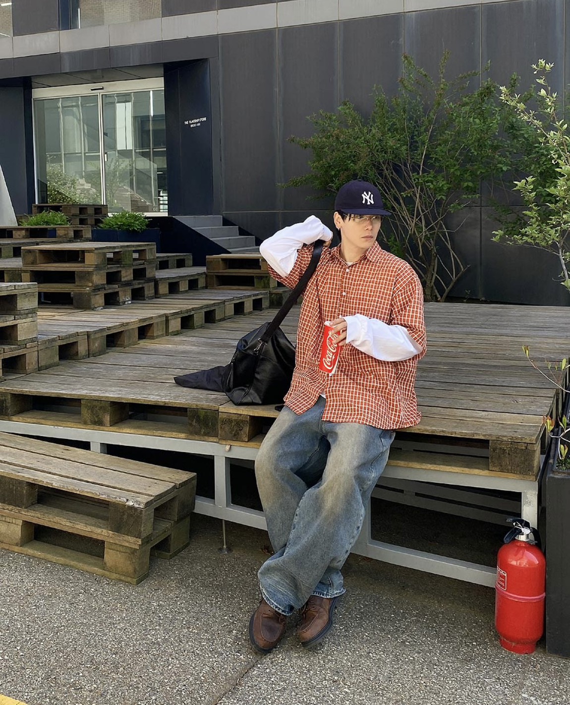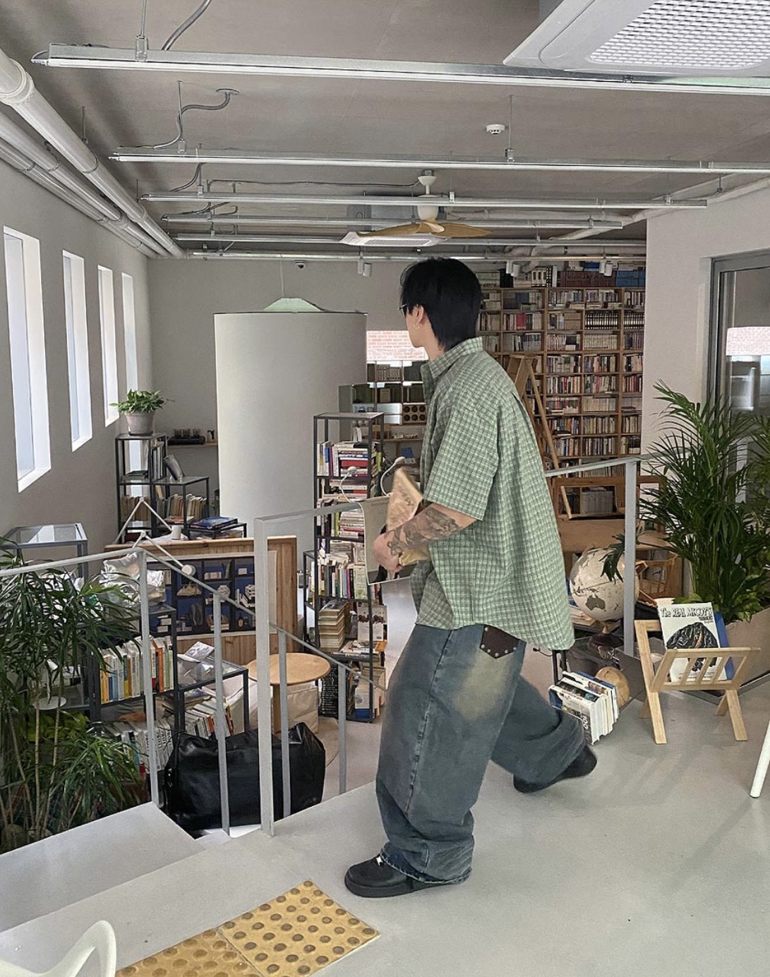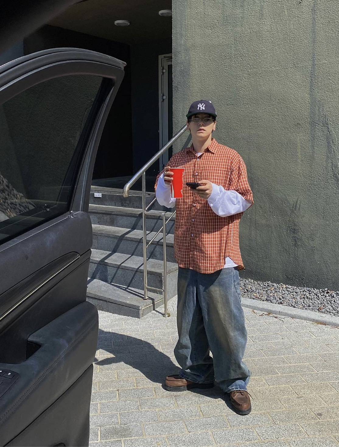 HOLY IN CODE 美式 復古 格紋 圓弧下擺 短袖襯衫 (3color)