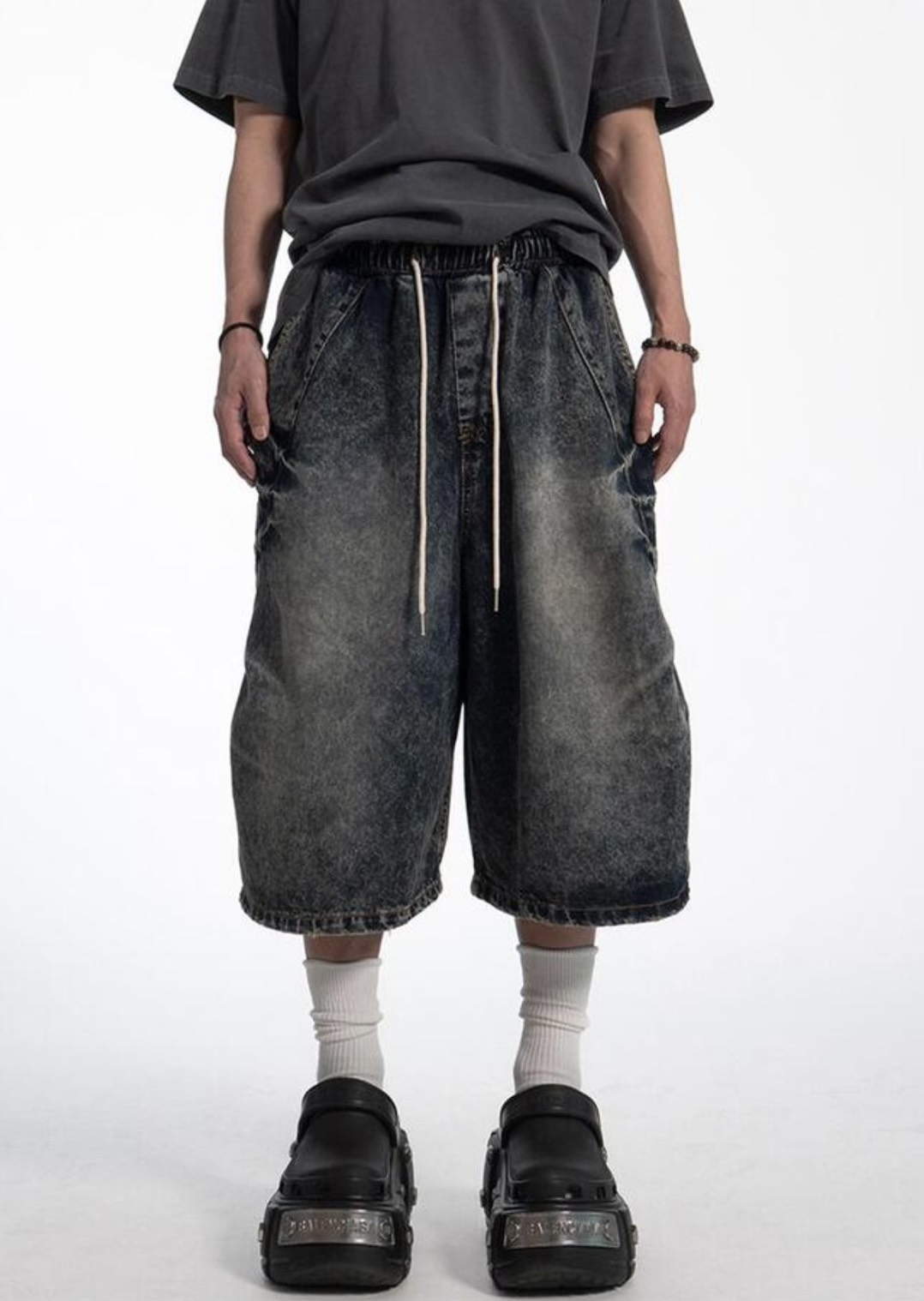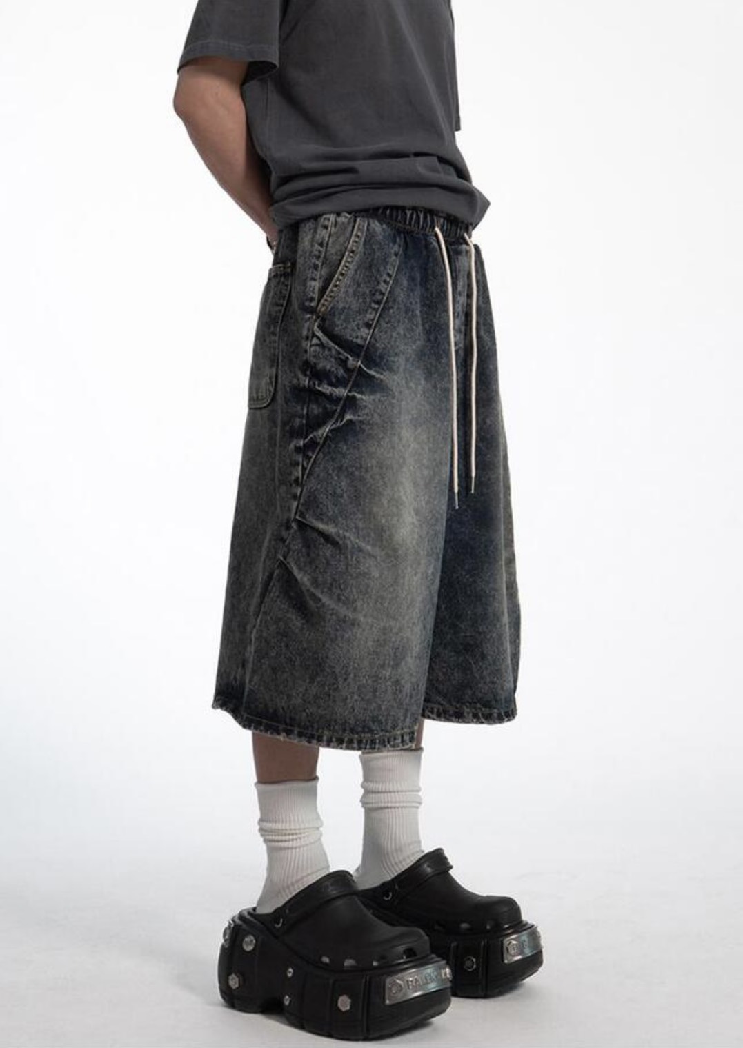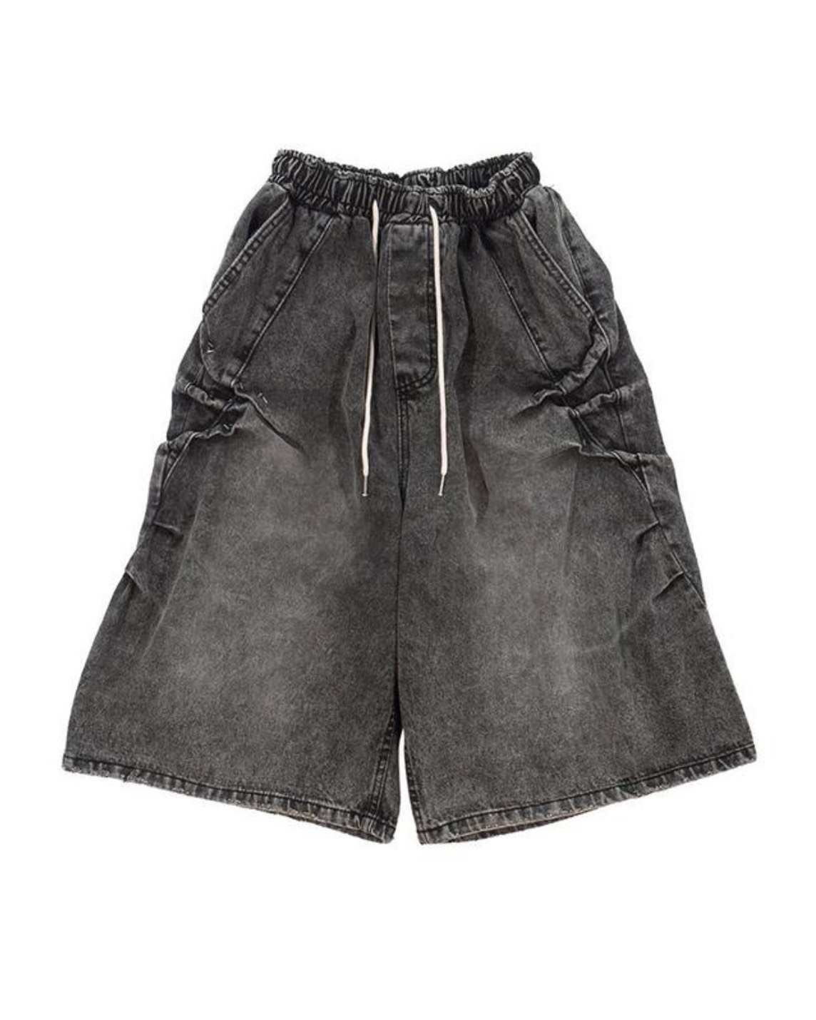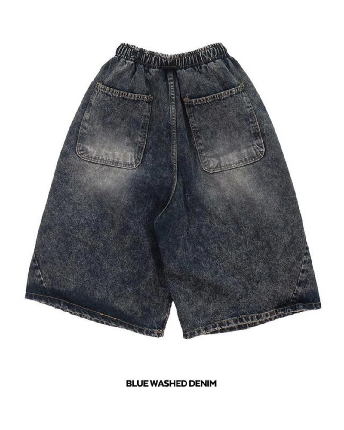 (新款短褲版本!) 韓國 煙燻感 重磅 水洗 抽繩 膝下 牛仔短褲 (2color)