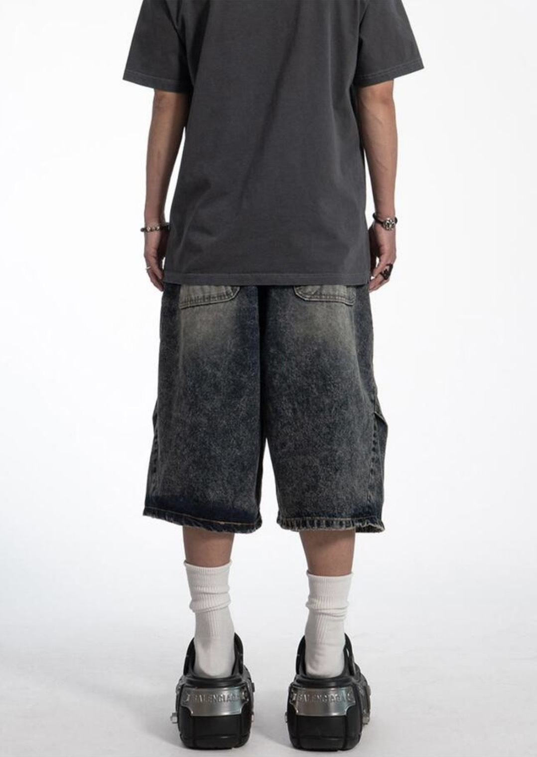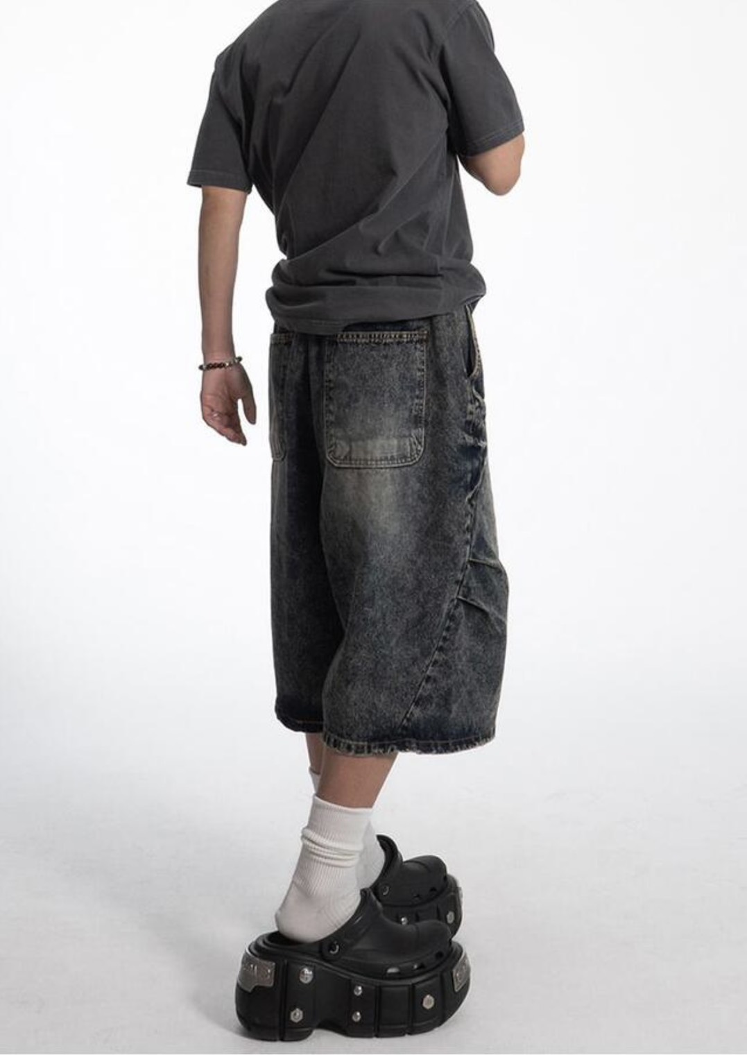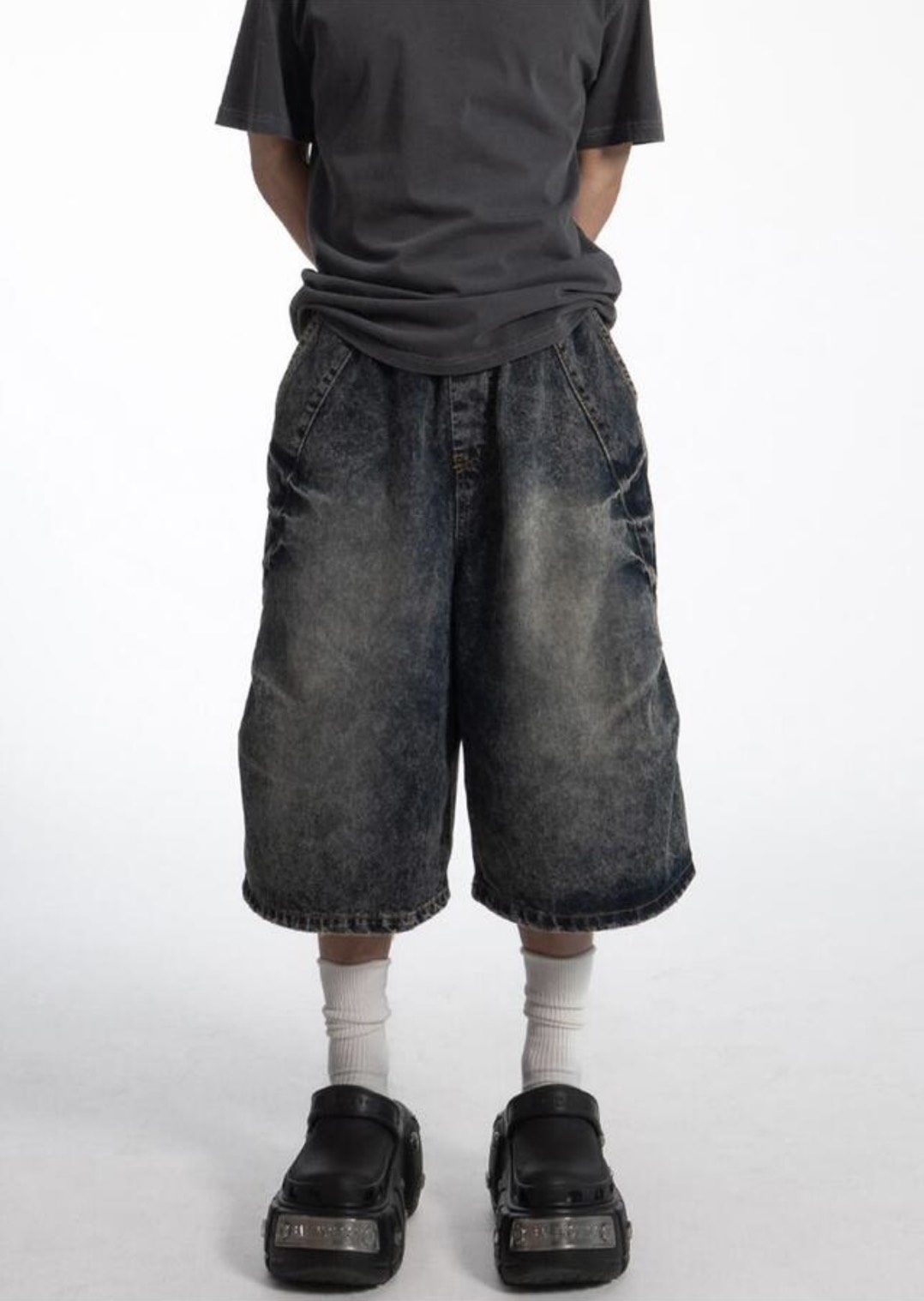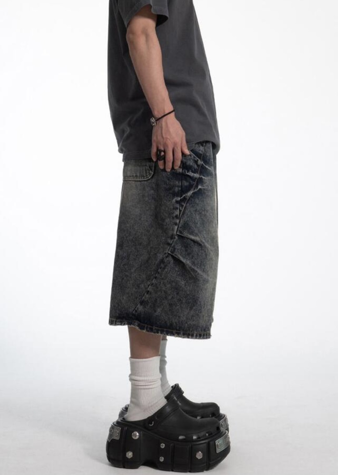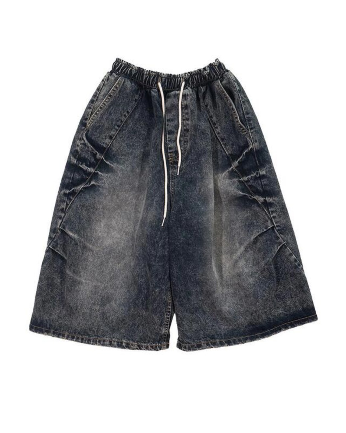 (新款短褲版本!) 韓國 煙燻感 重磅 水洗 抽繩 膝下 牛仔短褲 (2color)