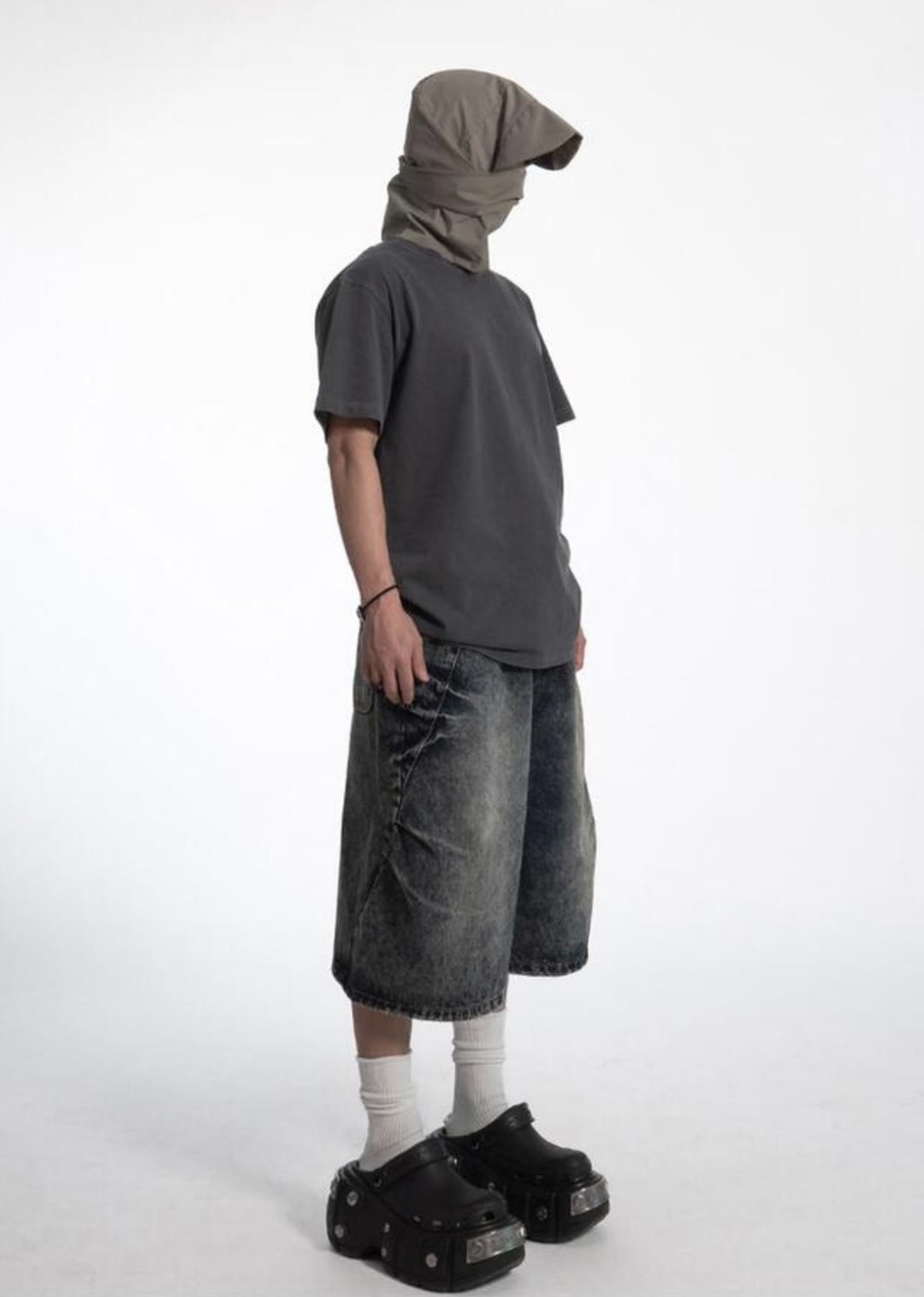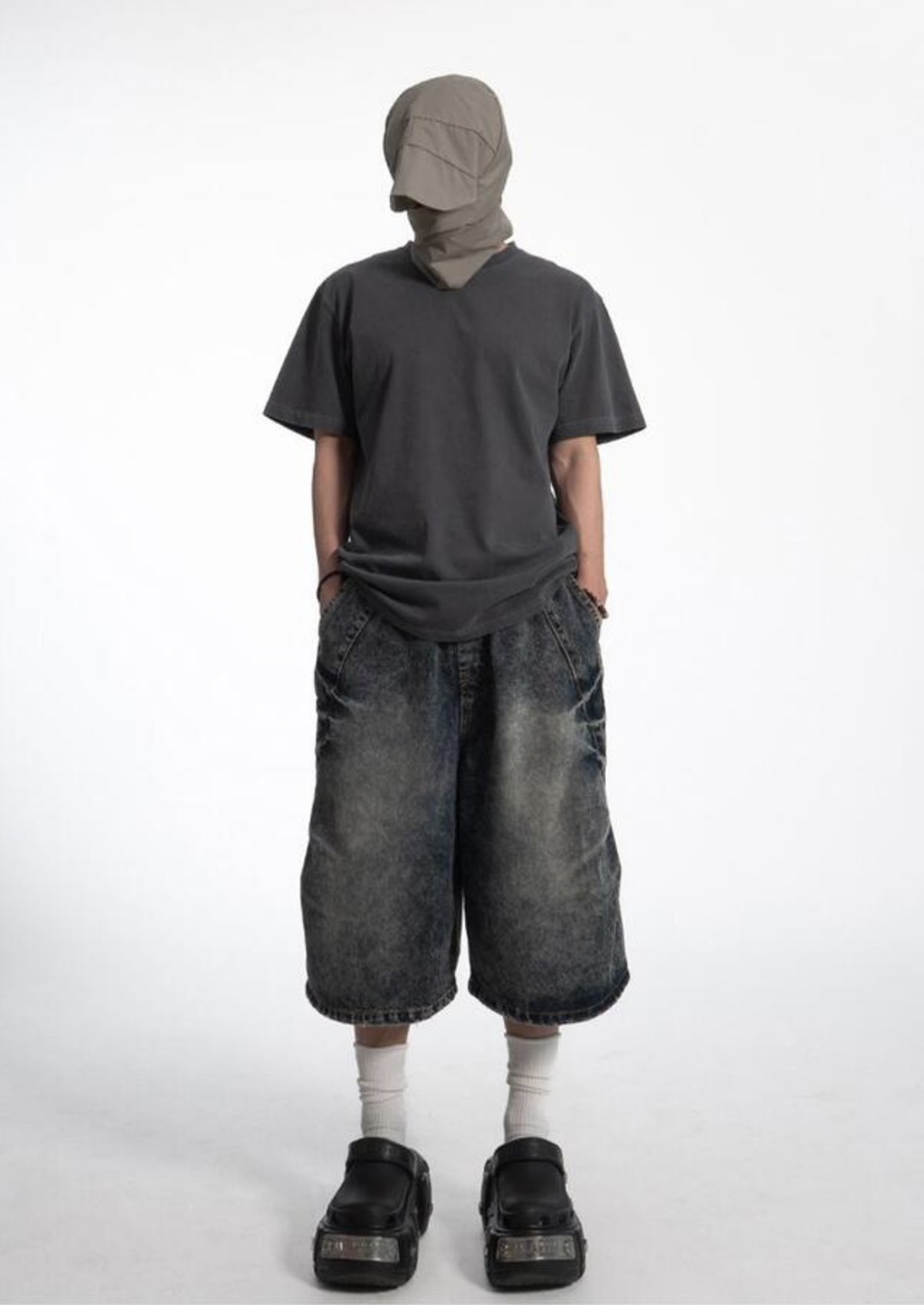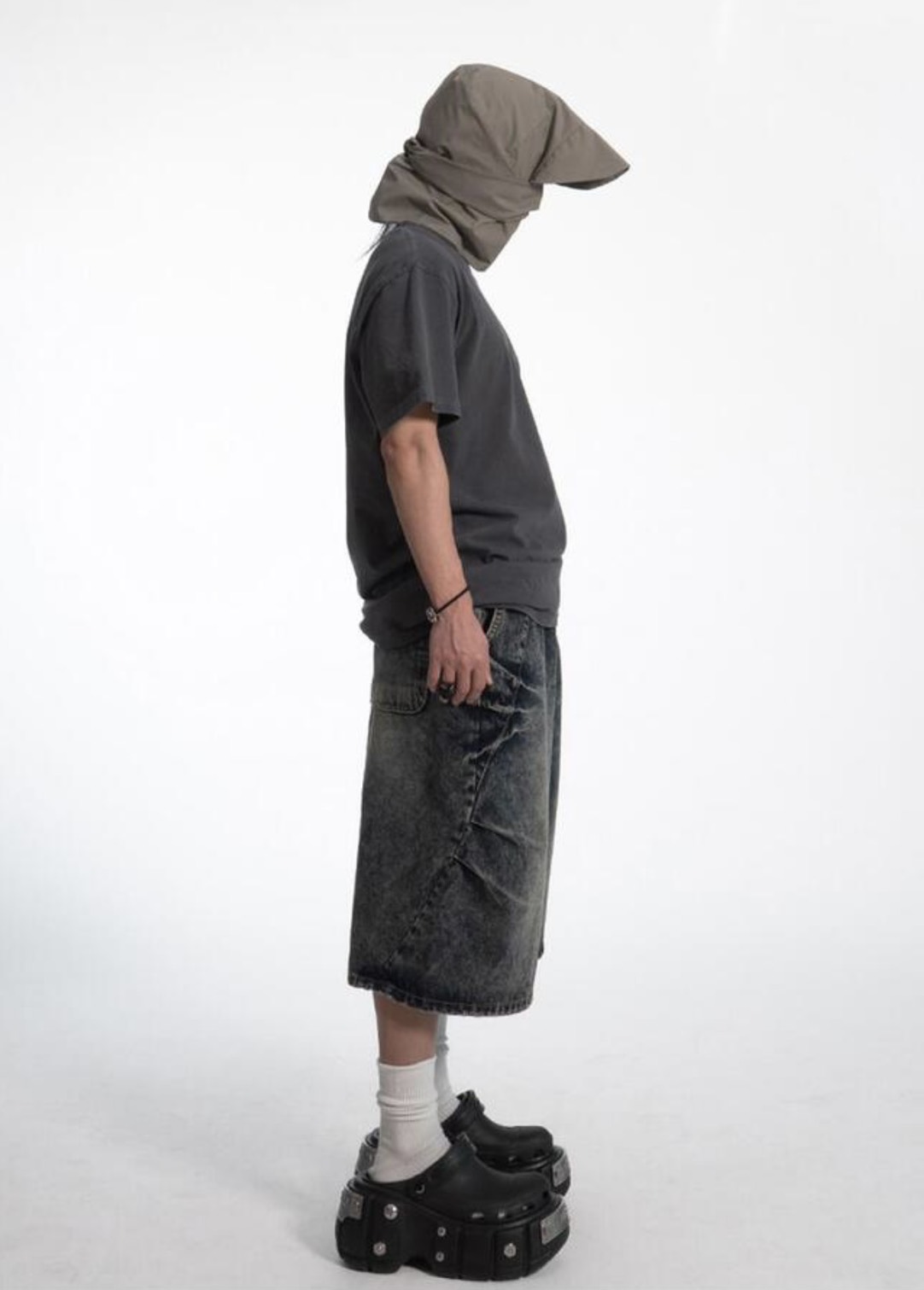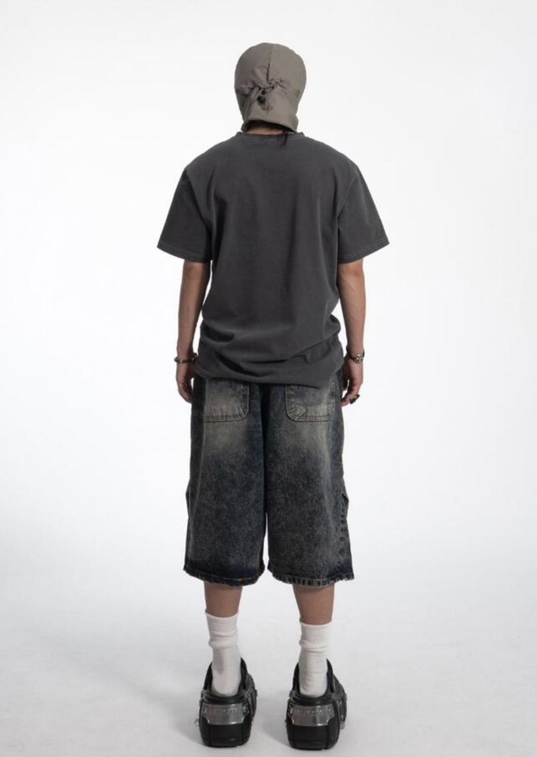 (新款短褲版本!) 韓國 煙燻感 重磅 水洗 抽繩 膝下 牛仔短褲 (2color)