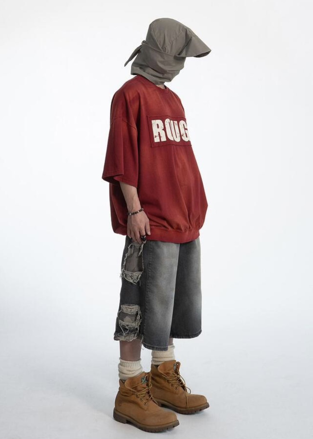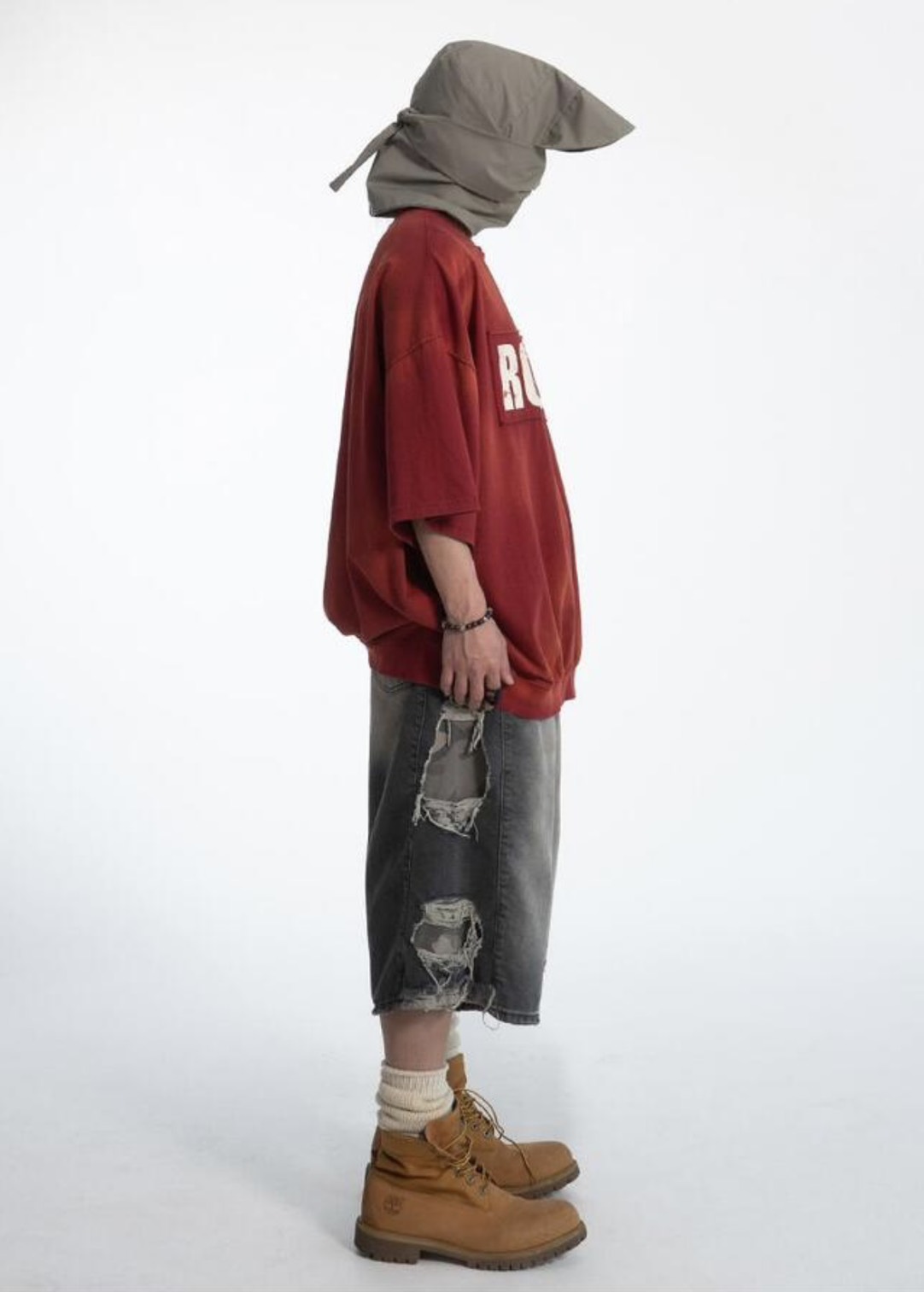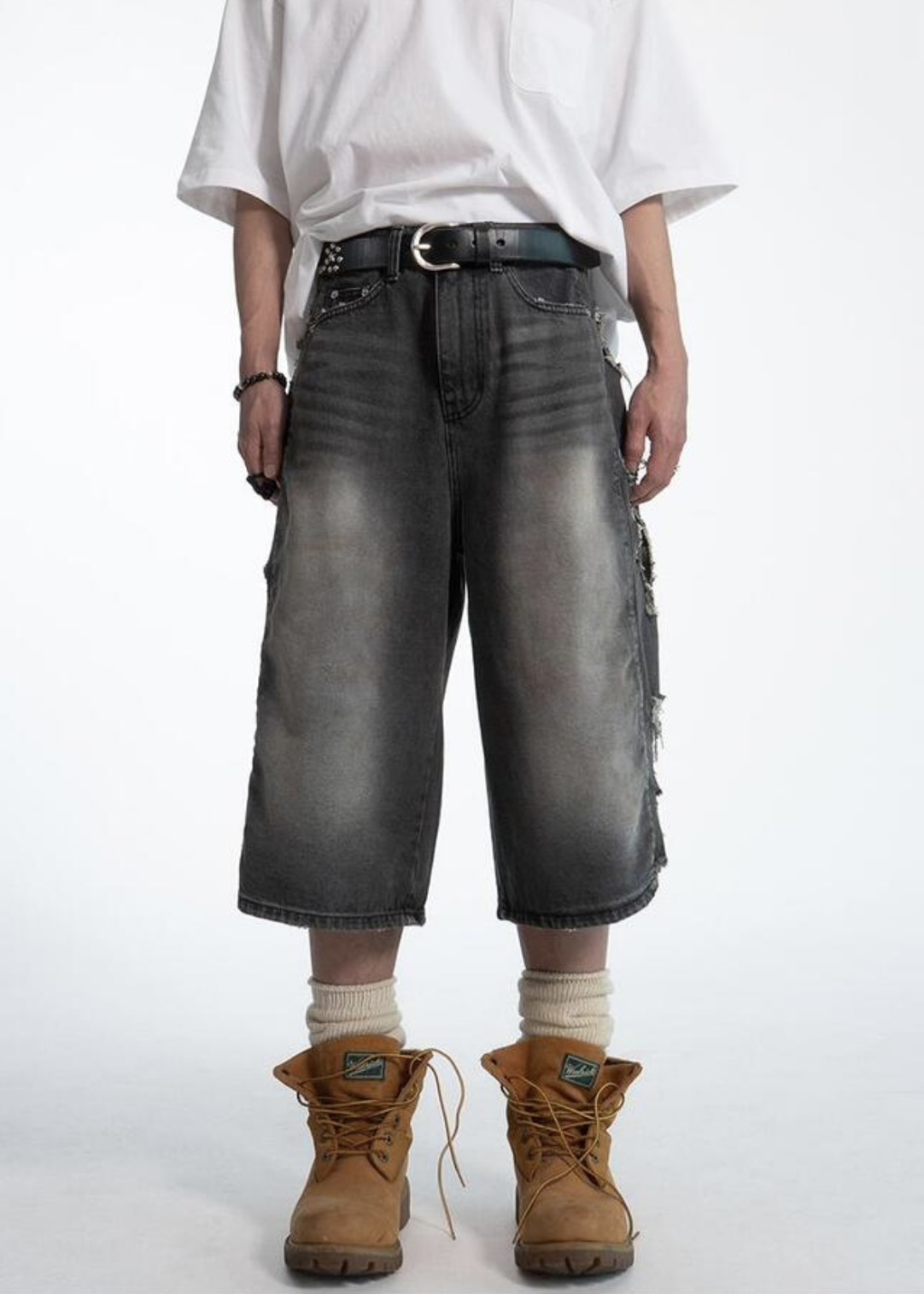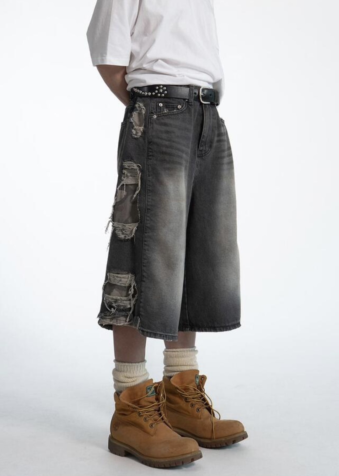 (新款短褲版本!) 韓國 迷彩 側破壞 復古 水洗 膝下 牛仔短褲 (2color)