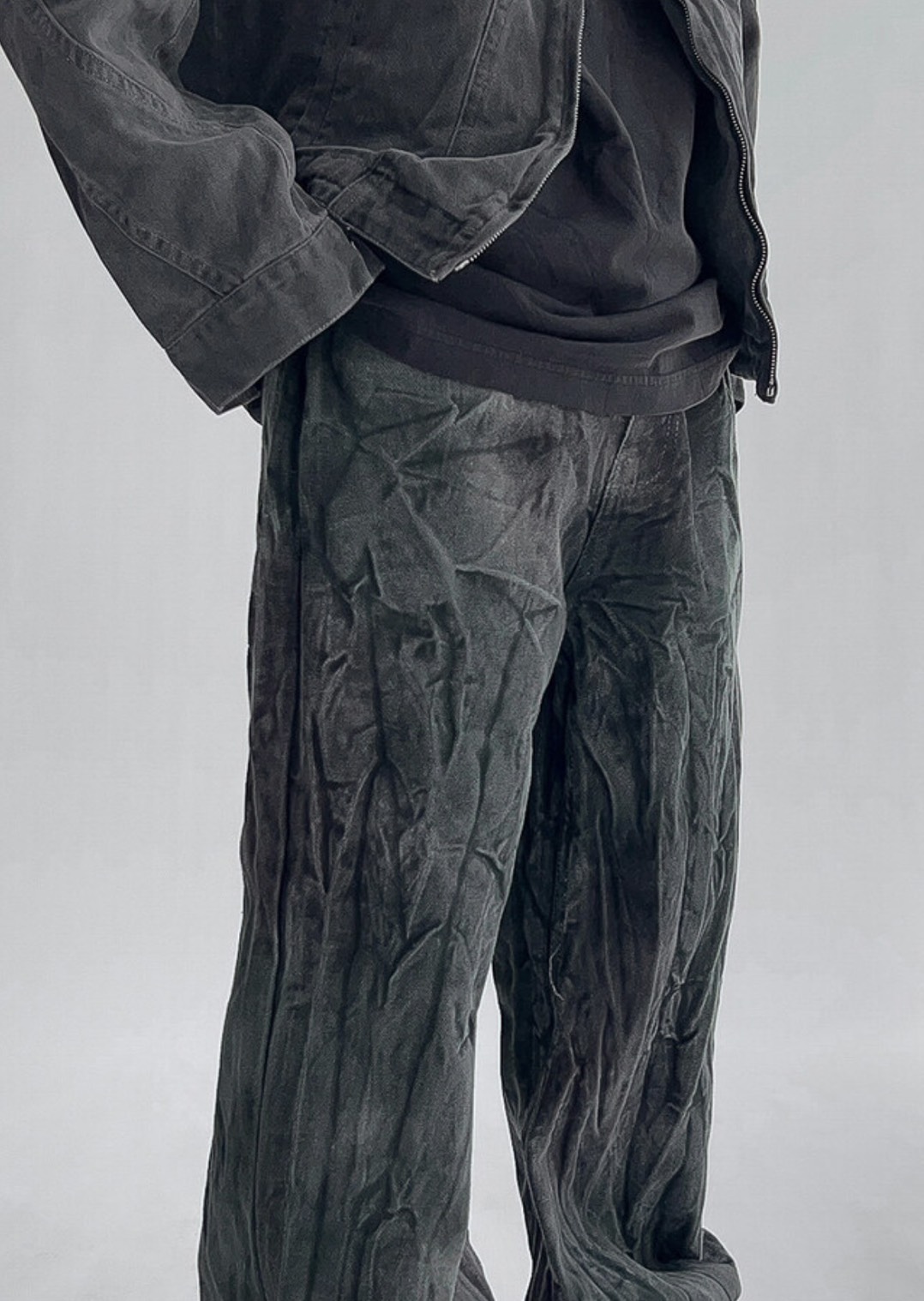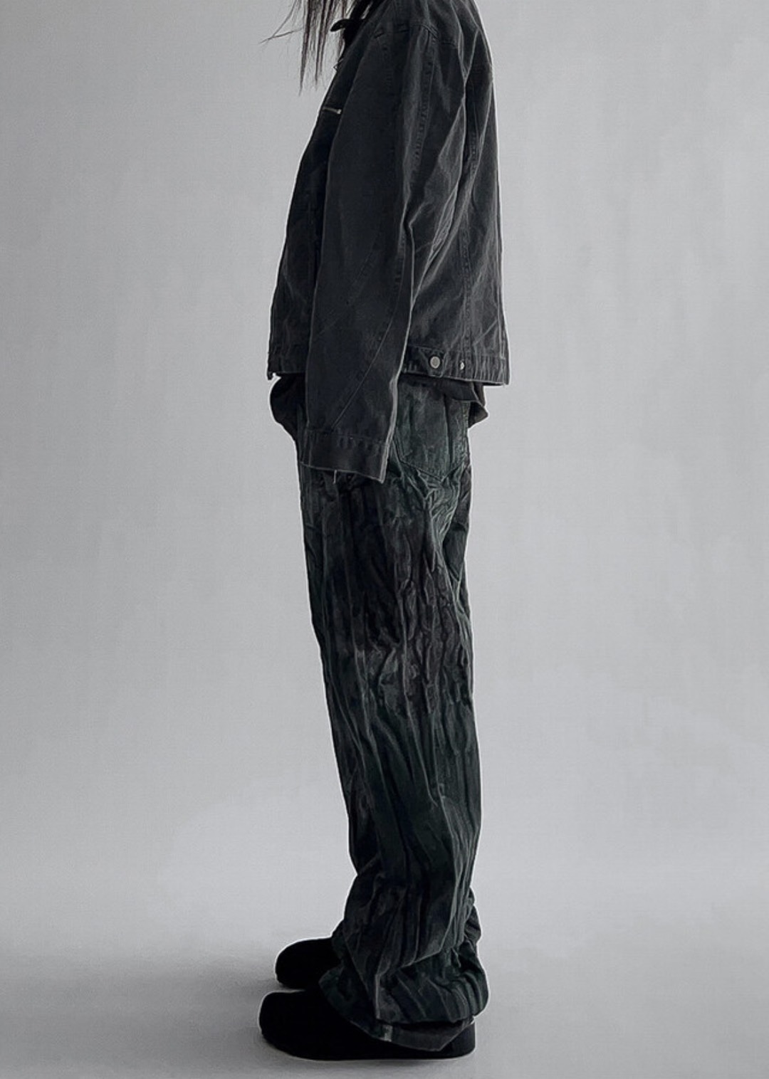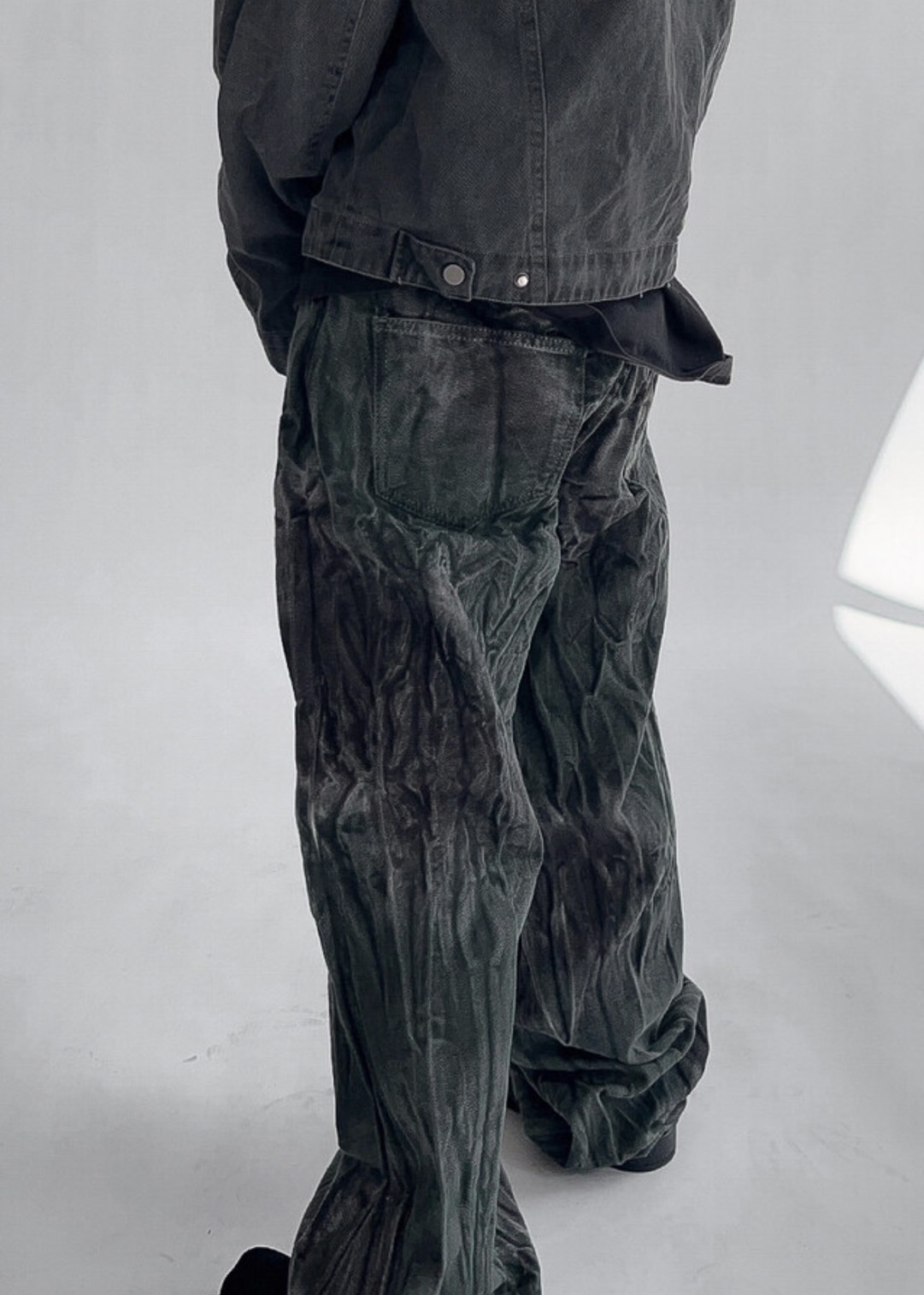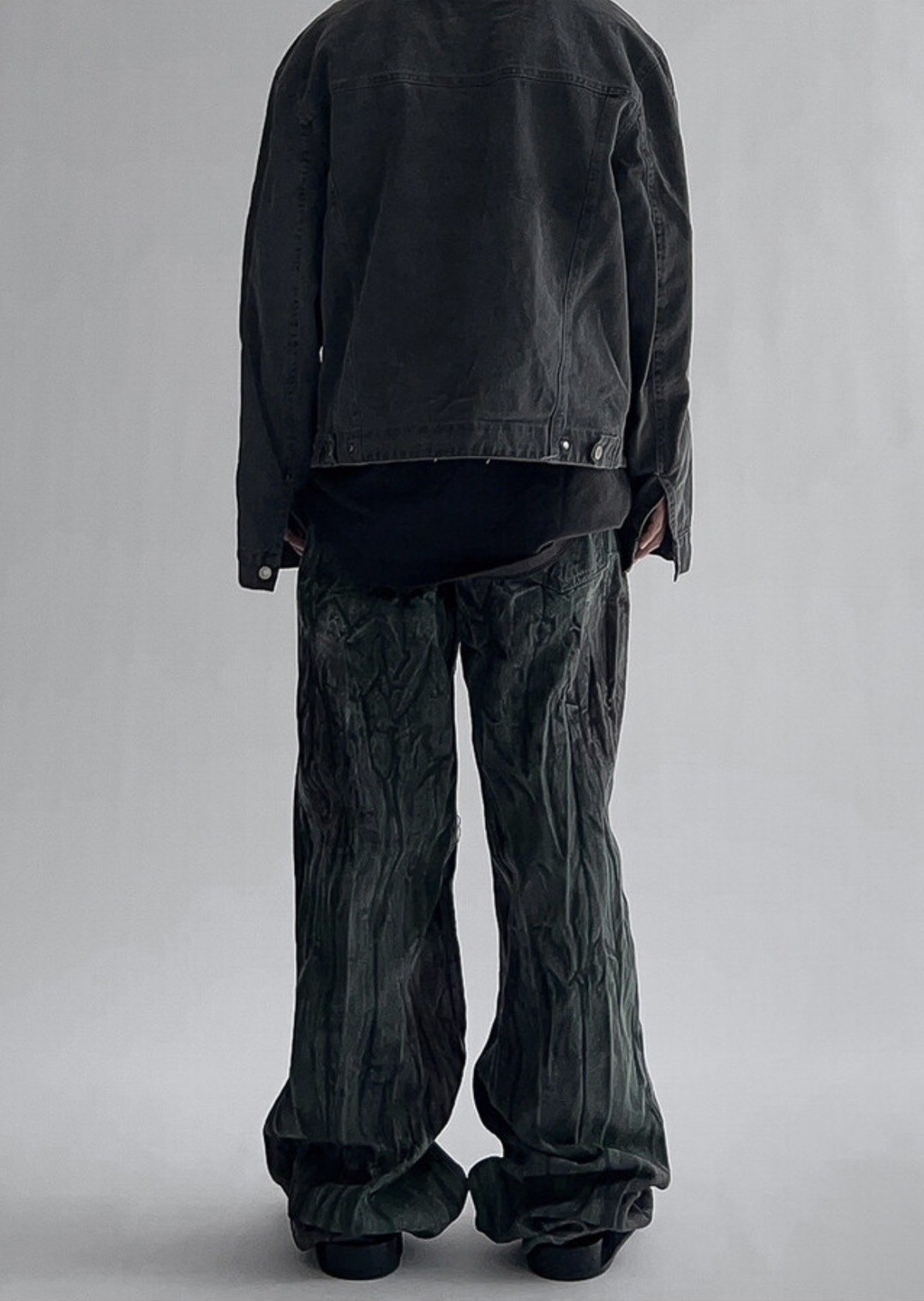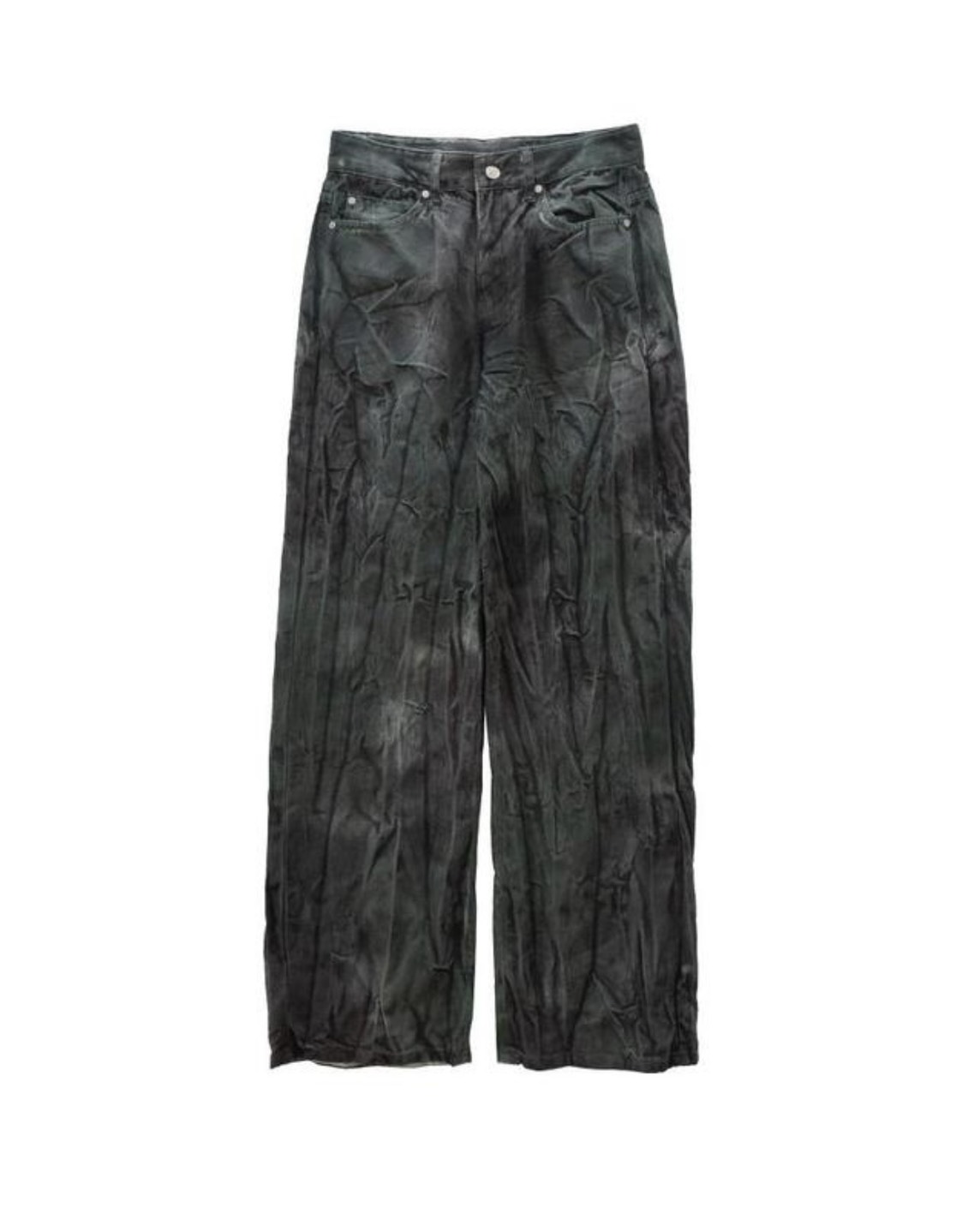 韓國 菸斗 煙燻 做舊感 紋路 水洗 寬版 黑牛仔褲