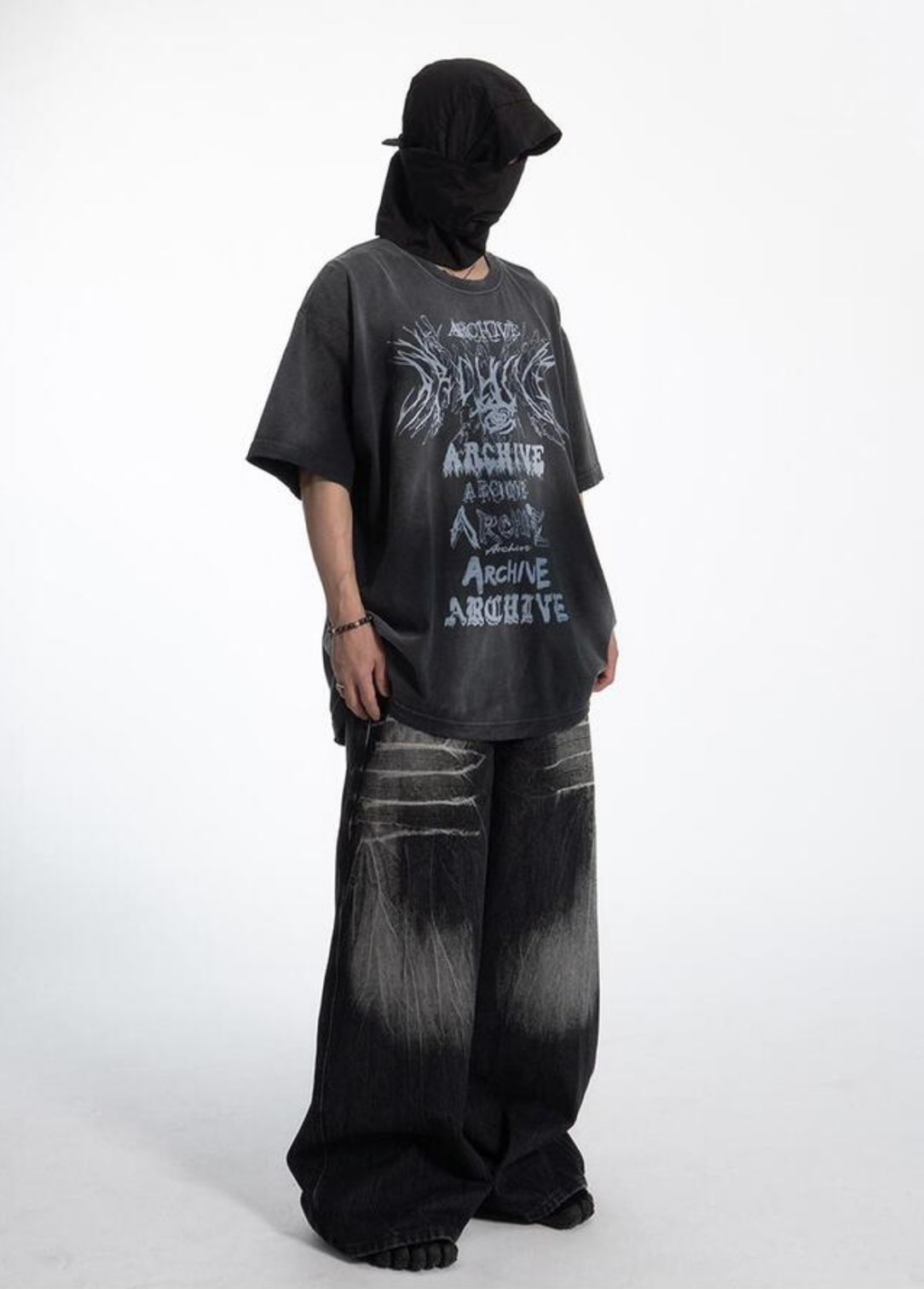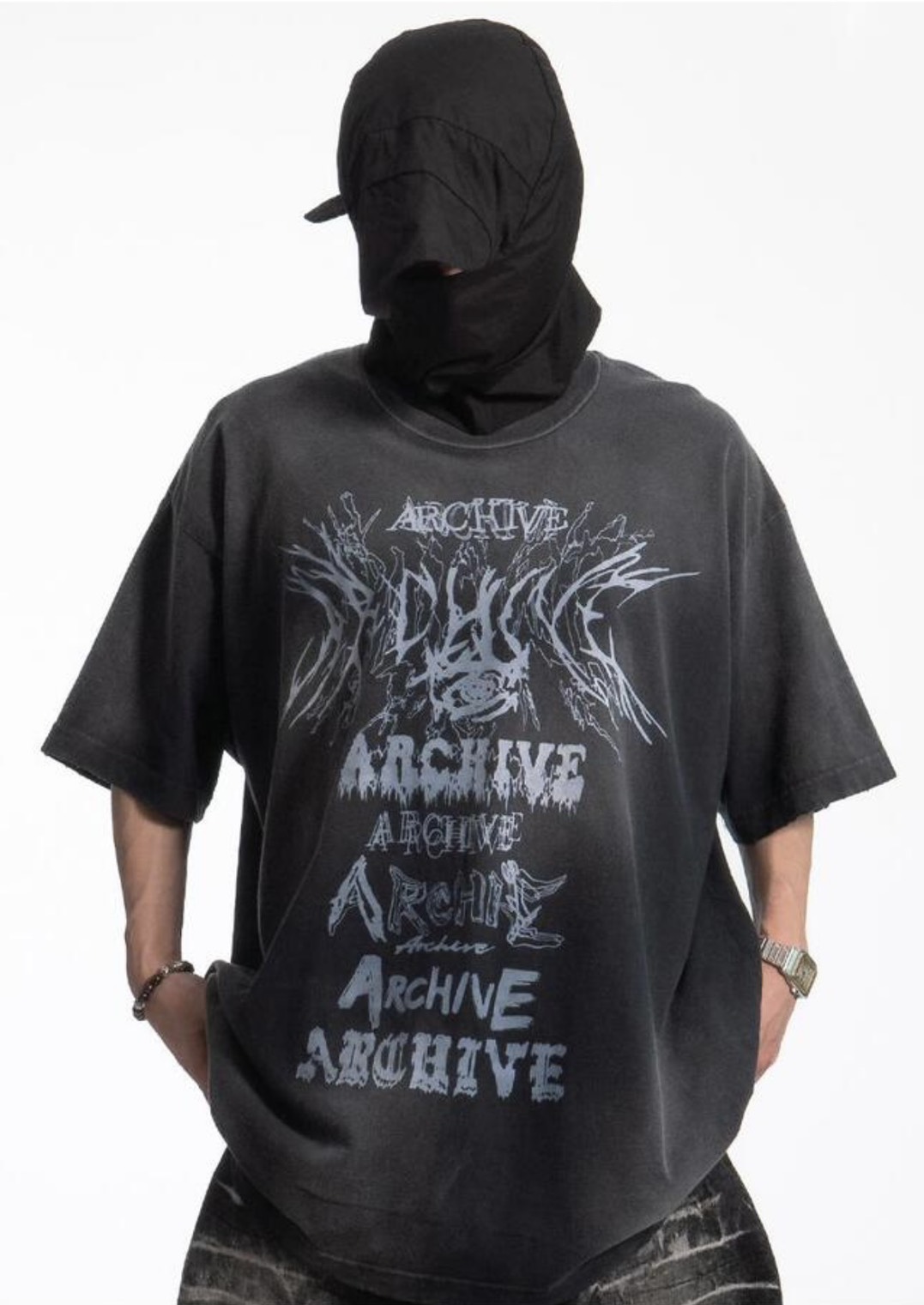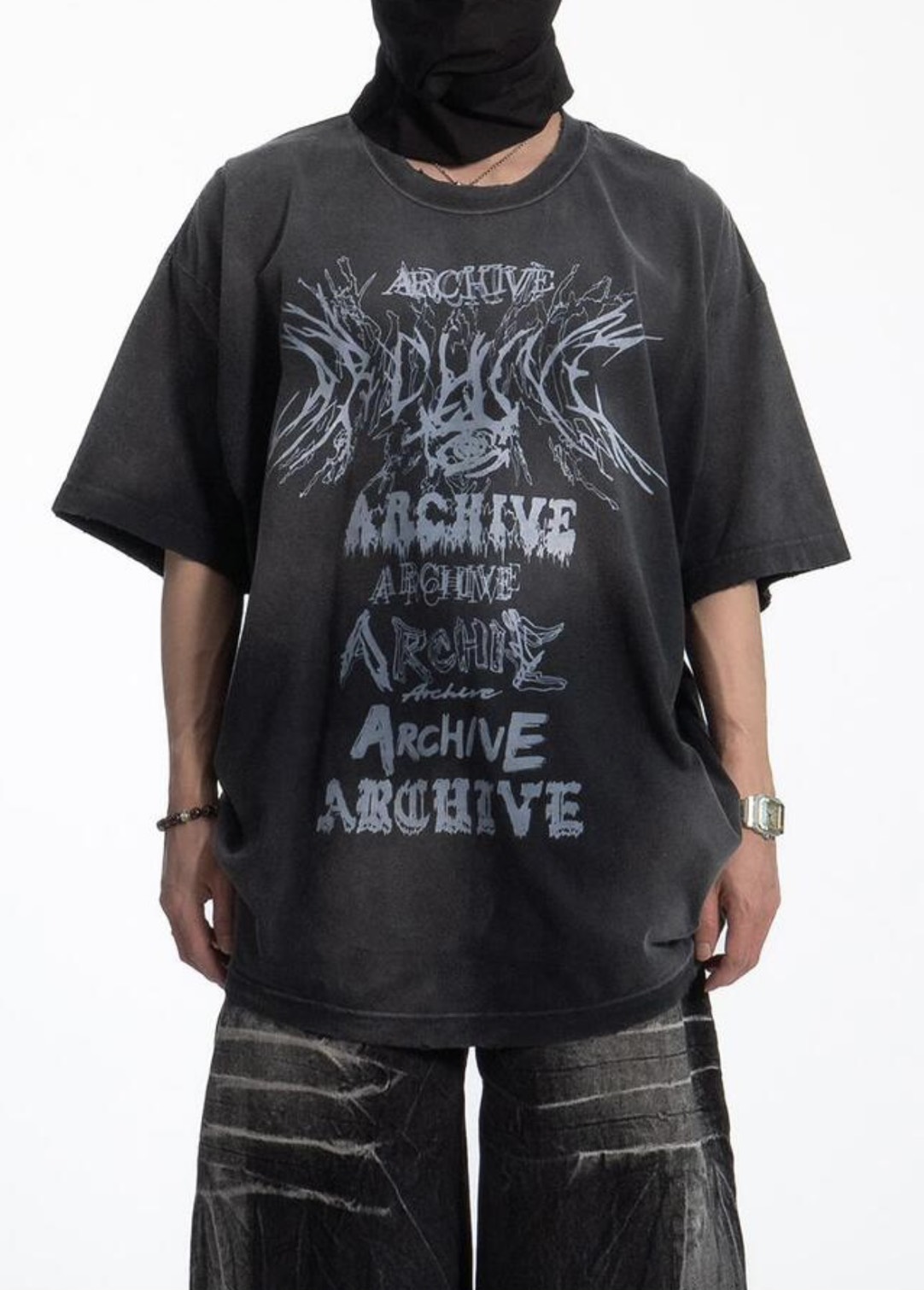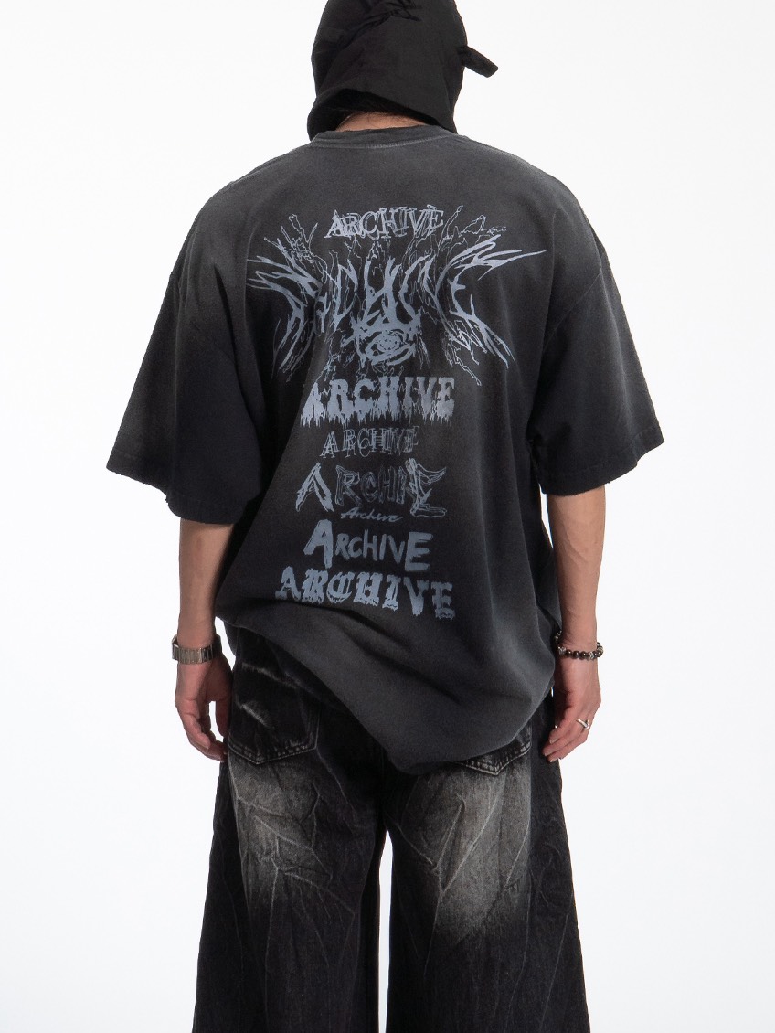 韓國 ARCHIVE 排列 LOGO 視覺感 水洗 做舊感 短T (3color)