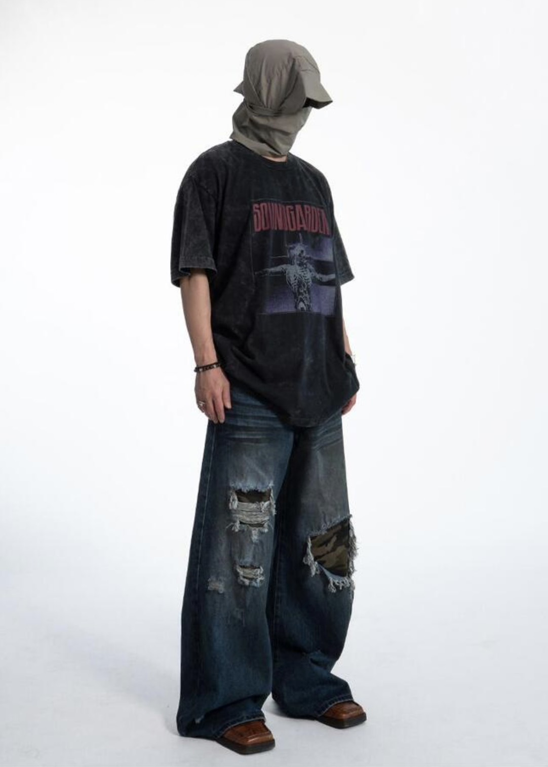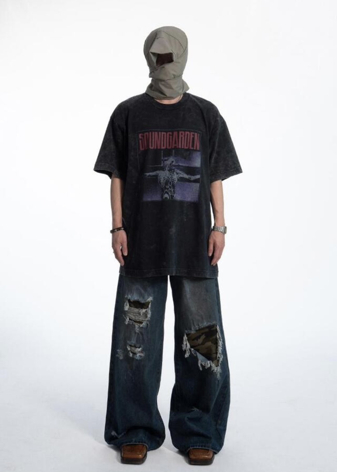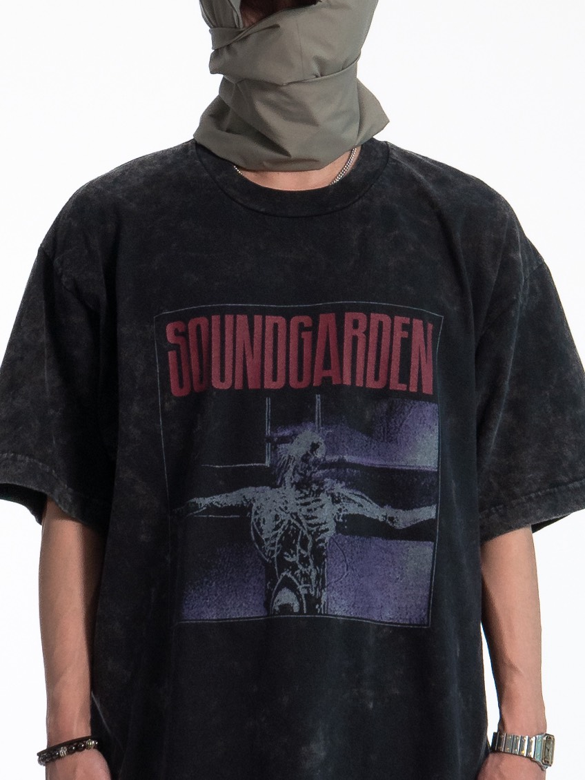 韓國 SOUNDGARDEN 電擊 骷髏 雪花 水洗 做舊感 短T