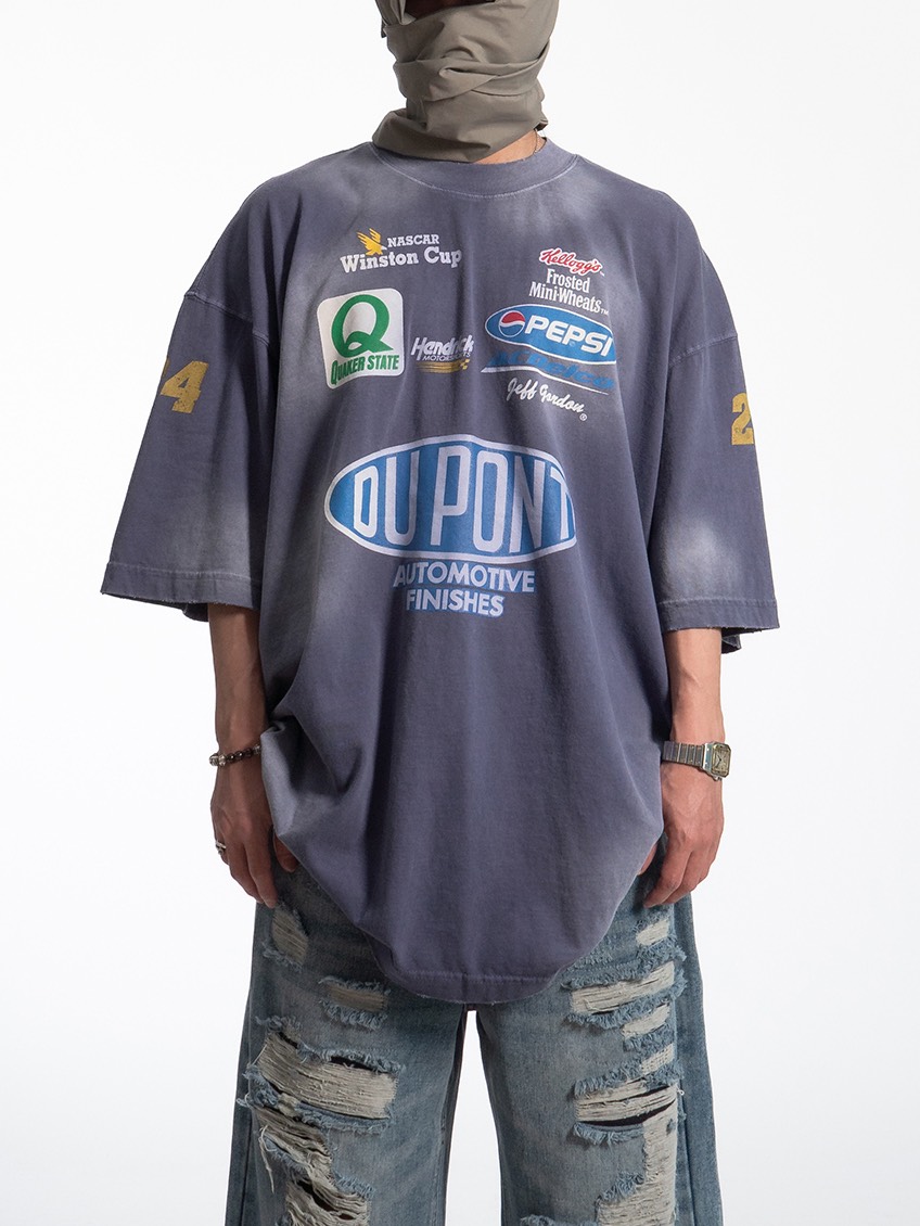韓國 DU PONT 贊助標 廣告 LOGO 水洗 做舊感 短T (2color)