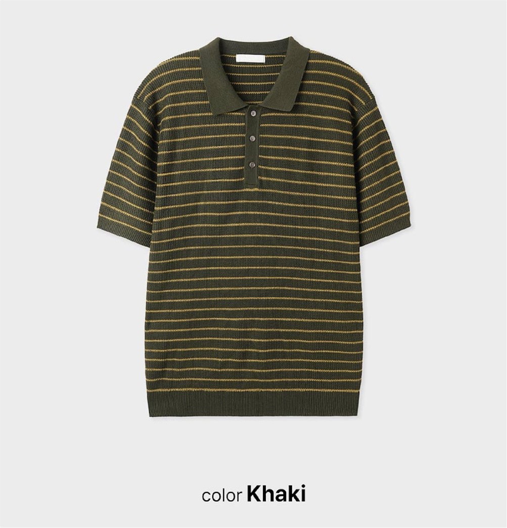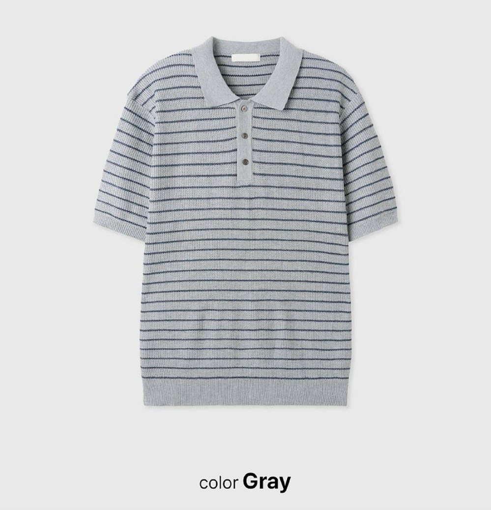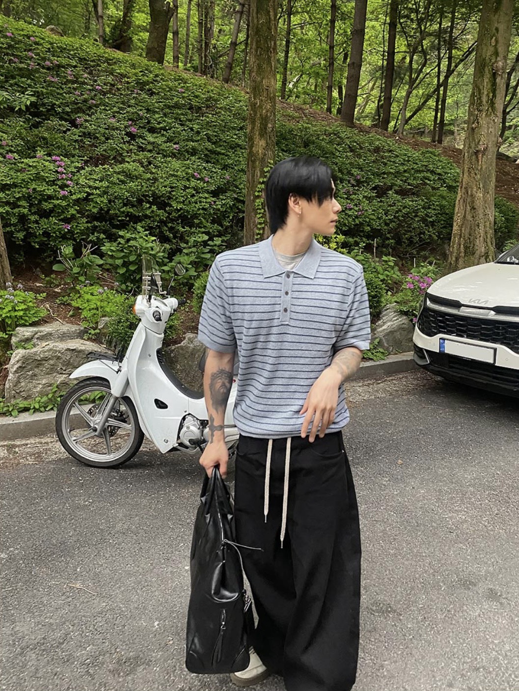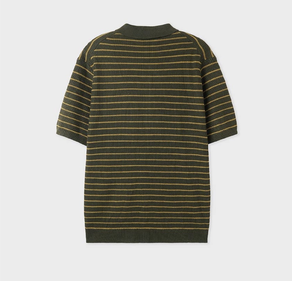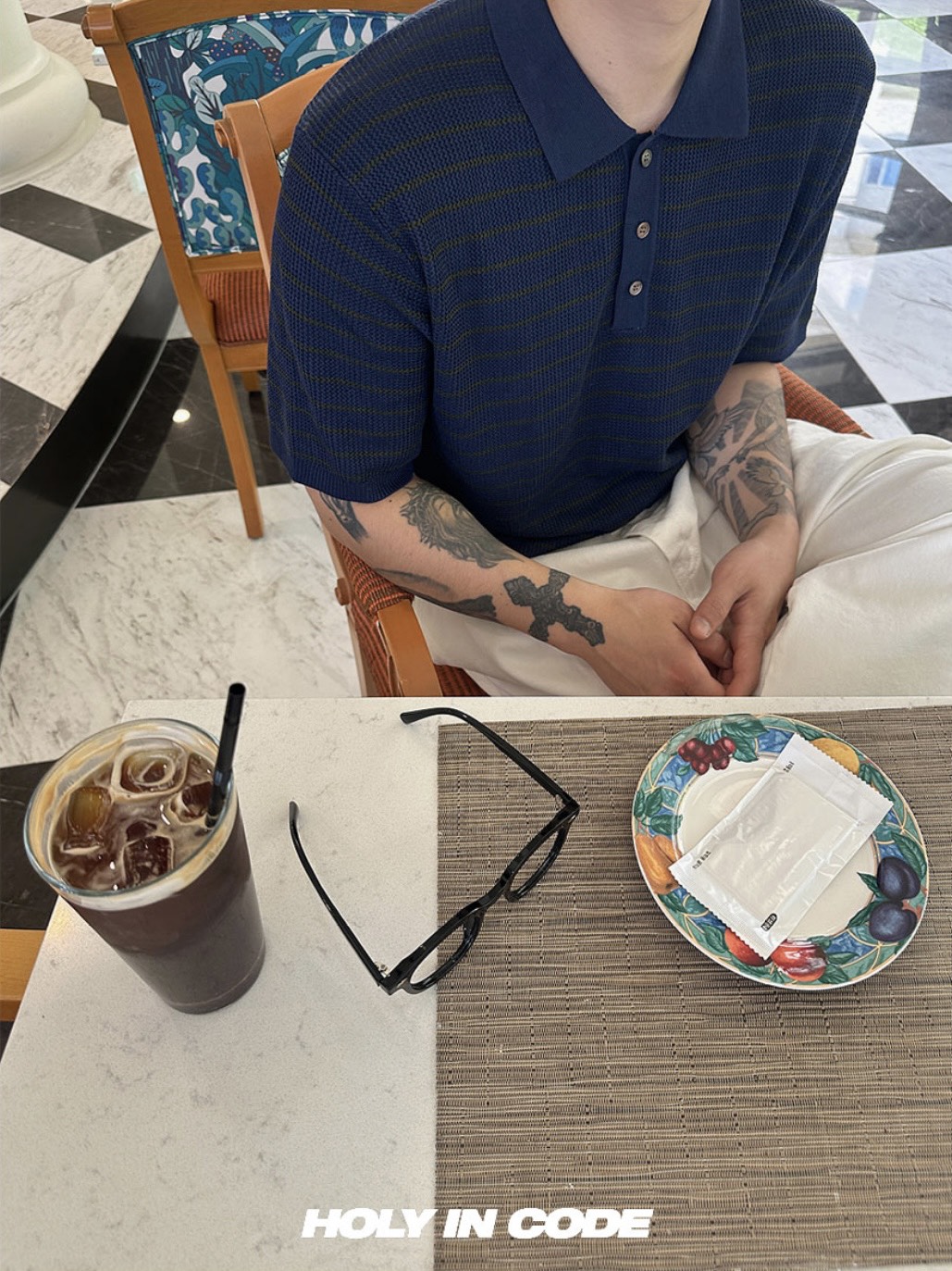 HOLY IN CODE 復古 細條紋 針織 POLO 短袖 上衣 (3color)