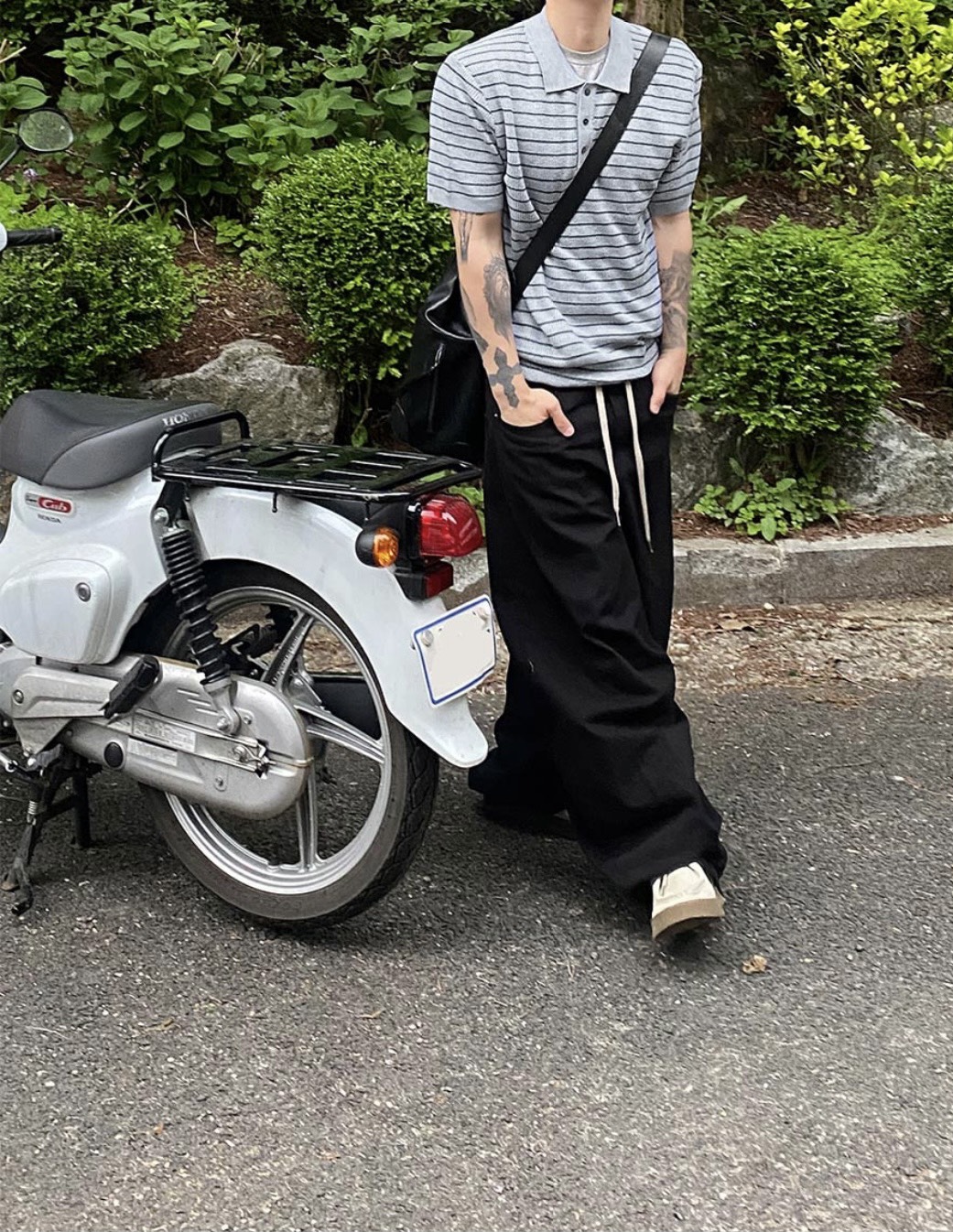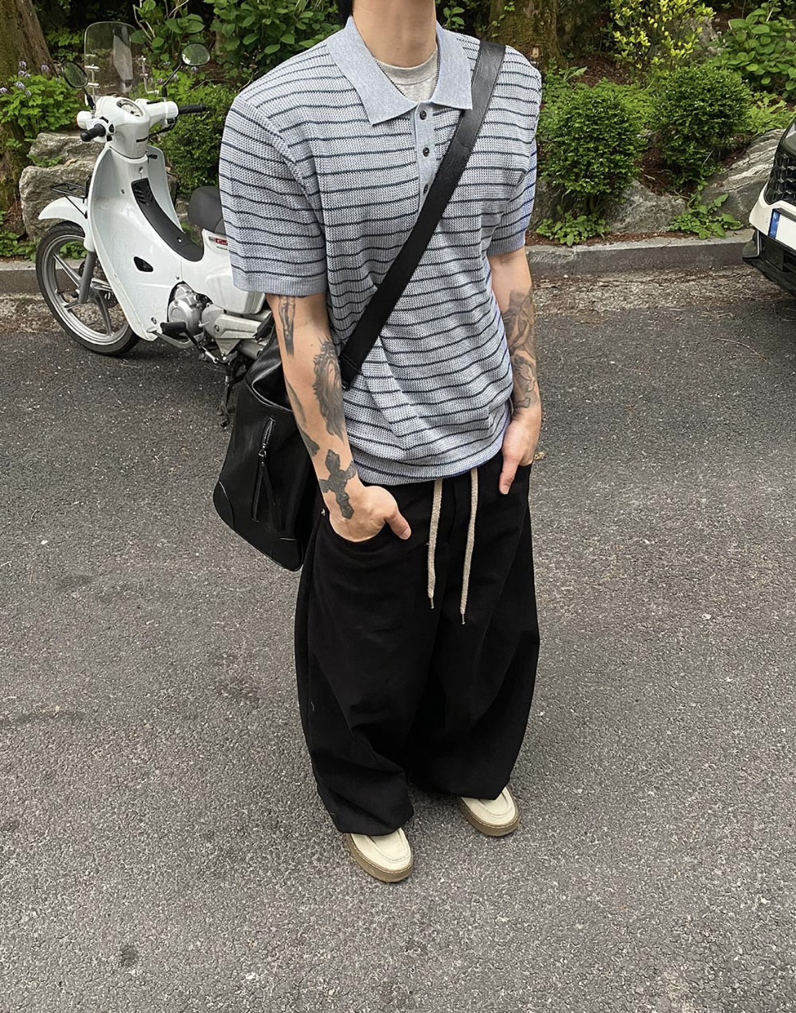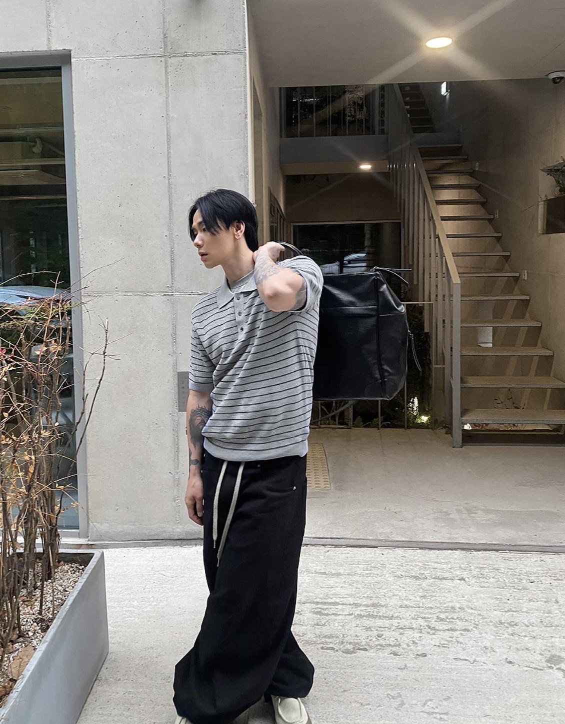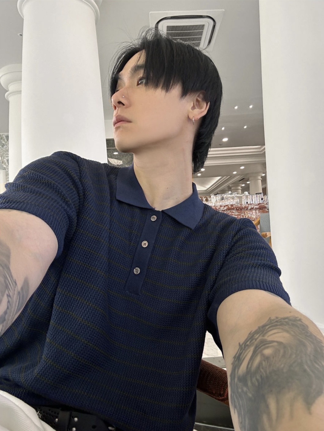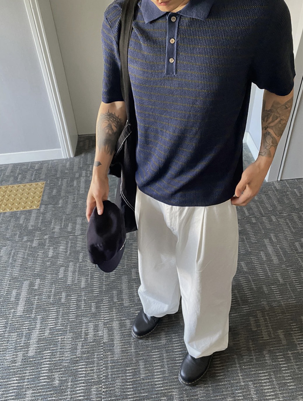 HOLY IN CODE 復古 細條紋 針織 POLO 短袖 上衣 (3color)