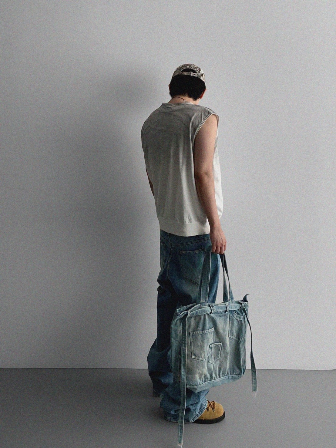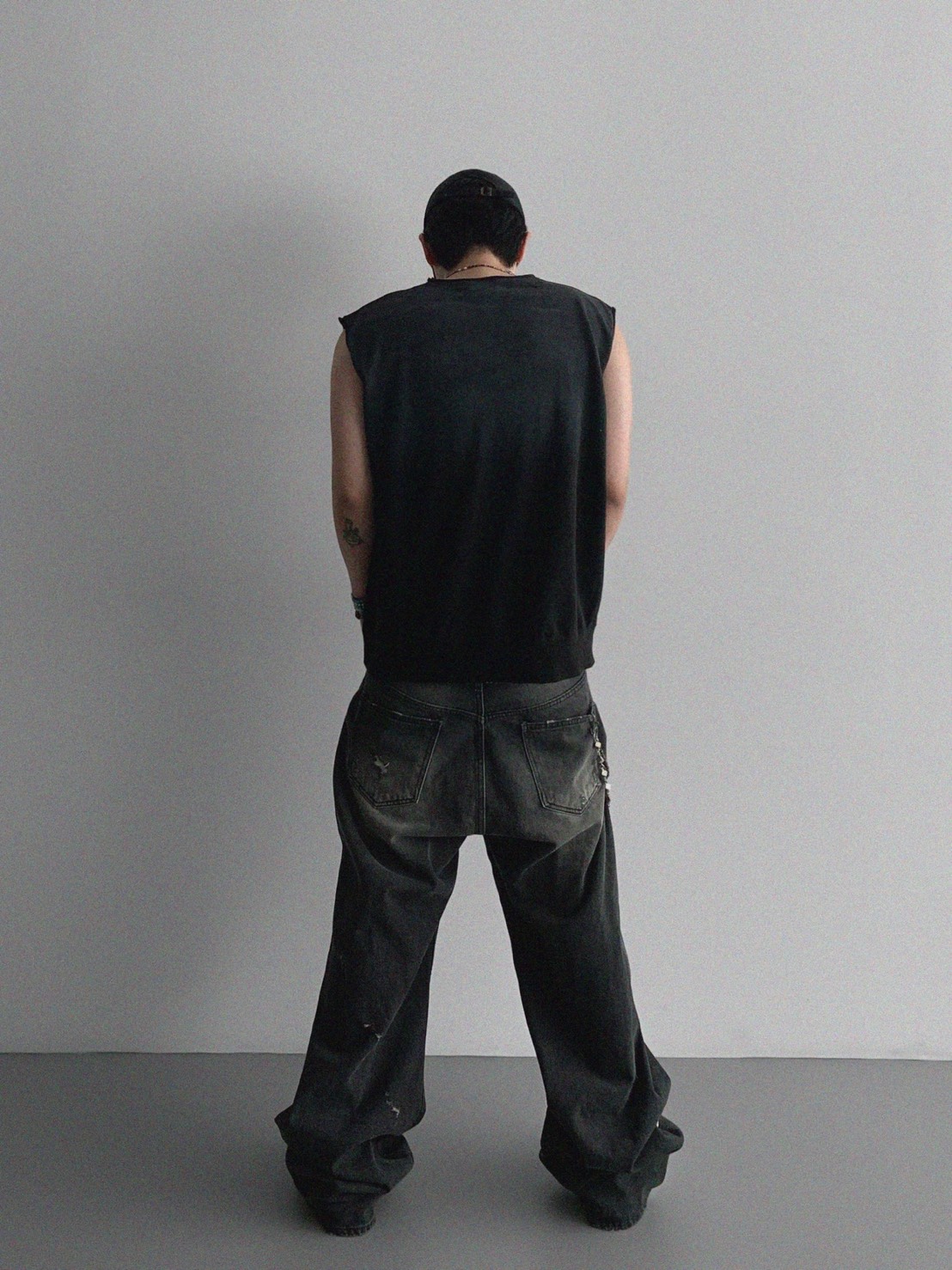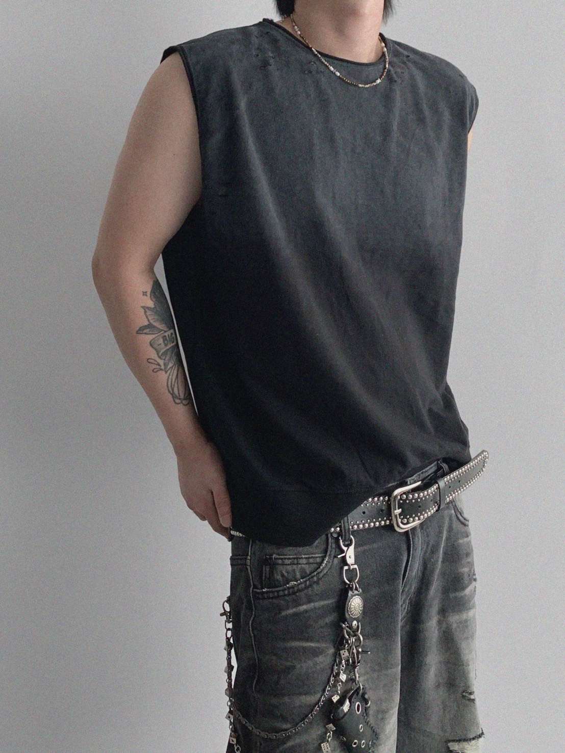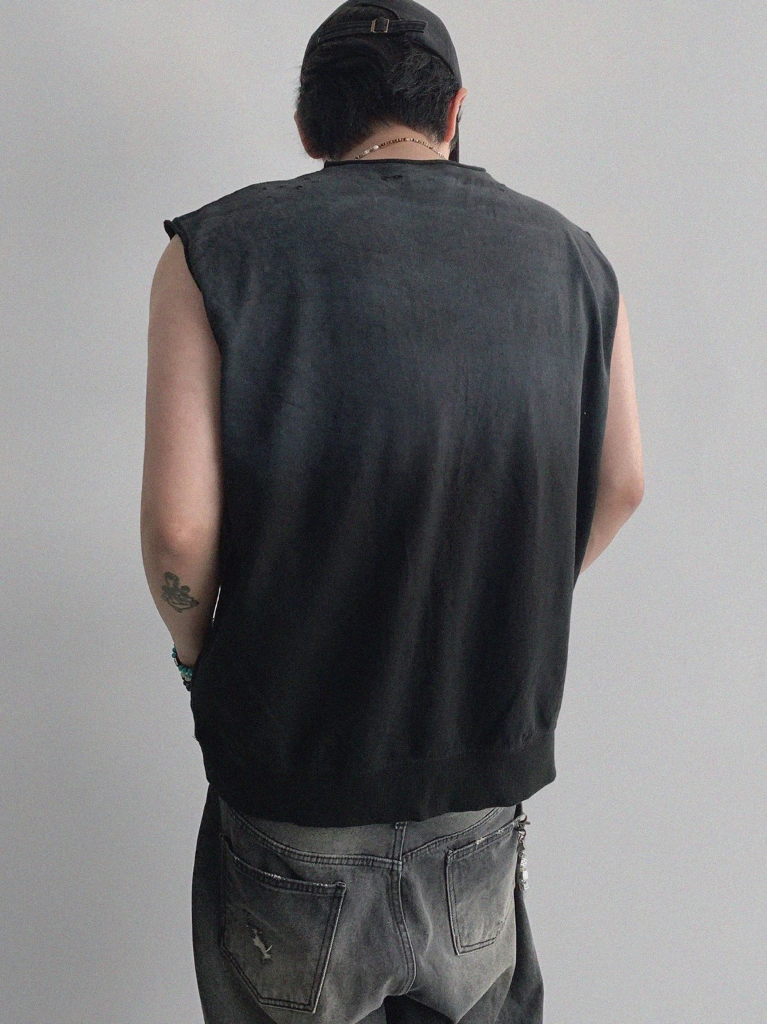 韓國 水洗 做舊 褪色感 寬肩 無袖 背心 上衣 (2color)