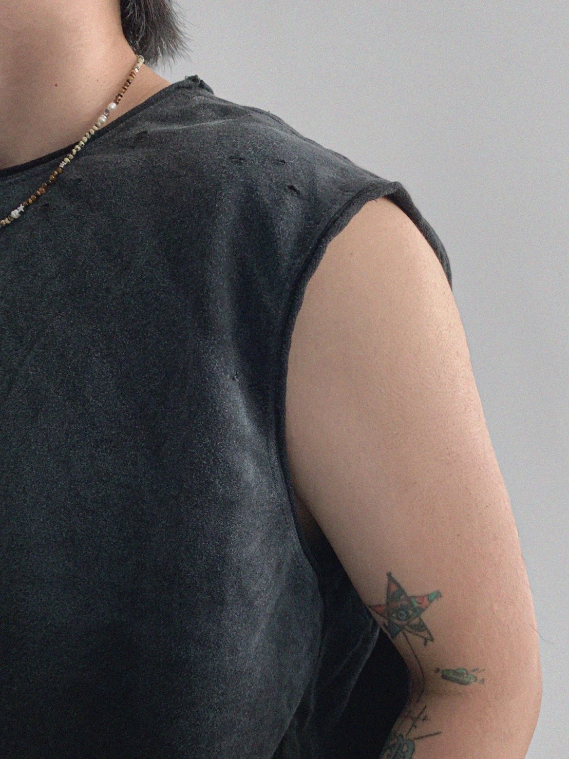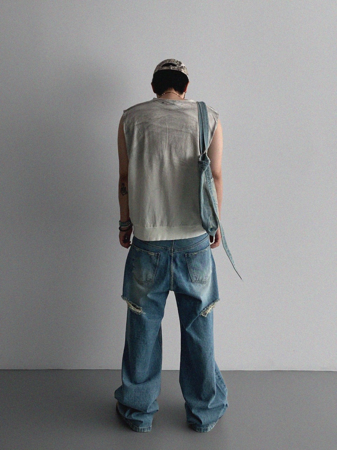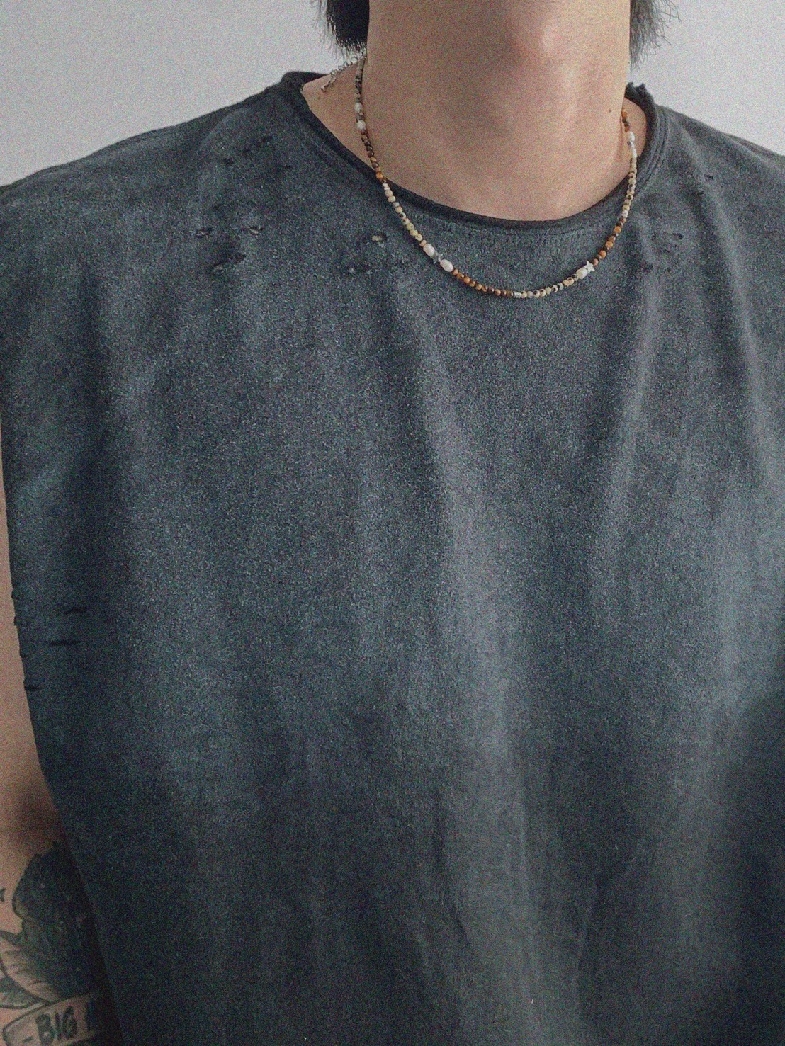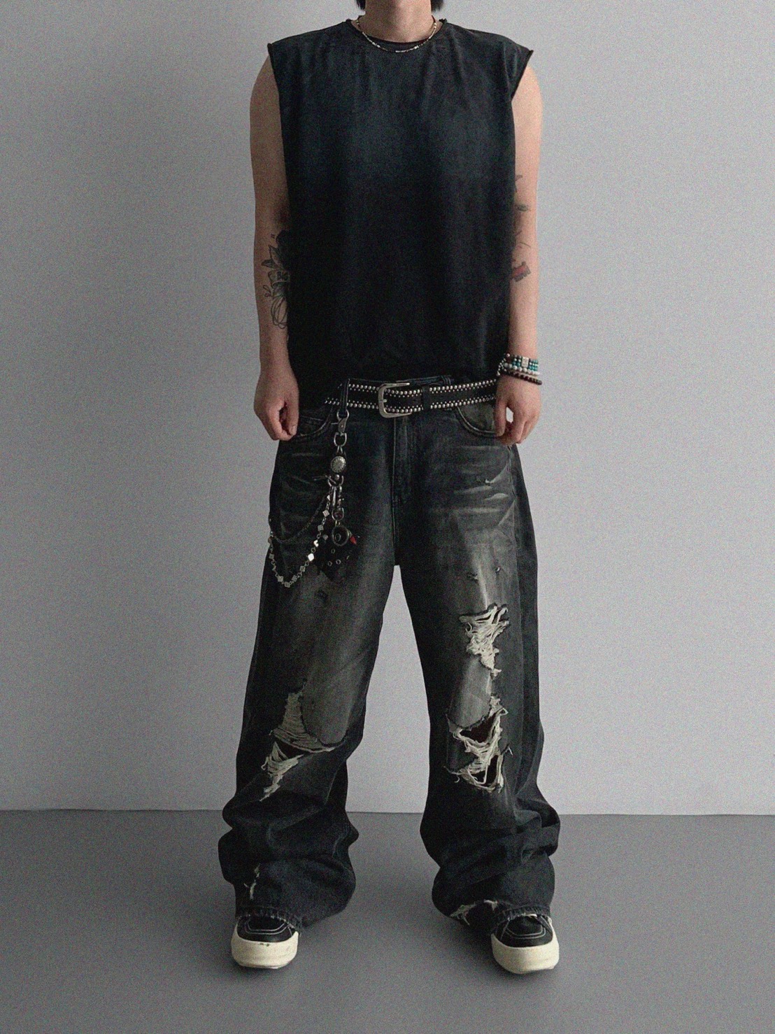 韓國 水洗 做舊 褪色感 寬肩 無袖 背心 上衣 (2color)