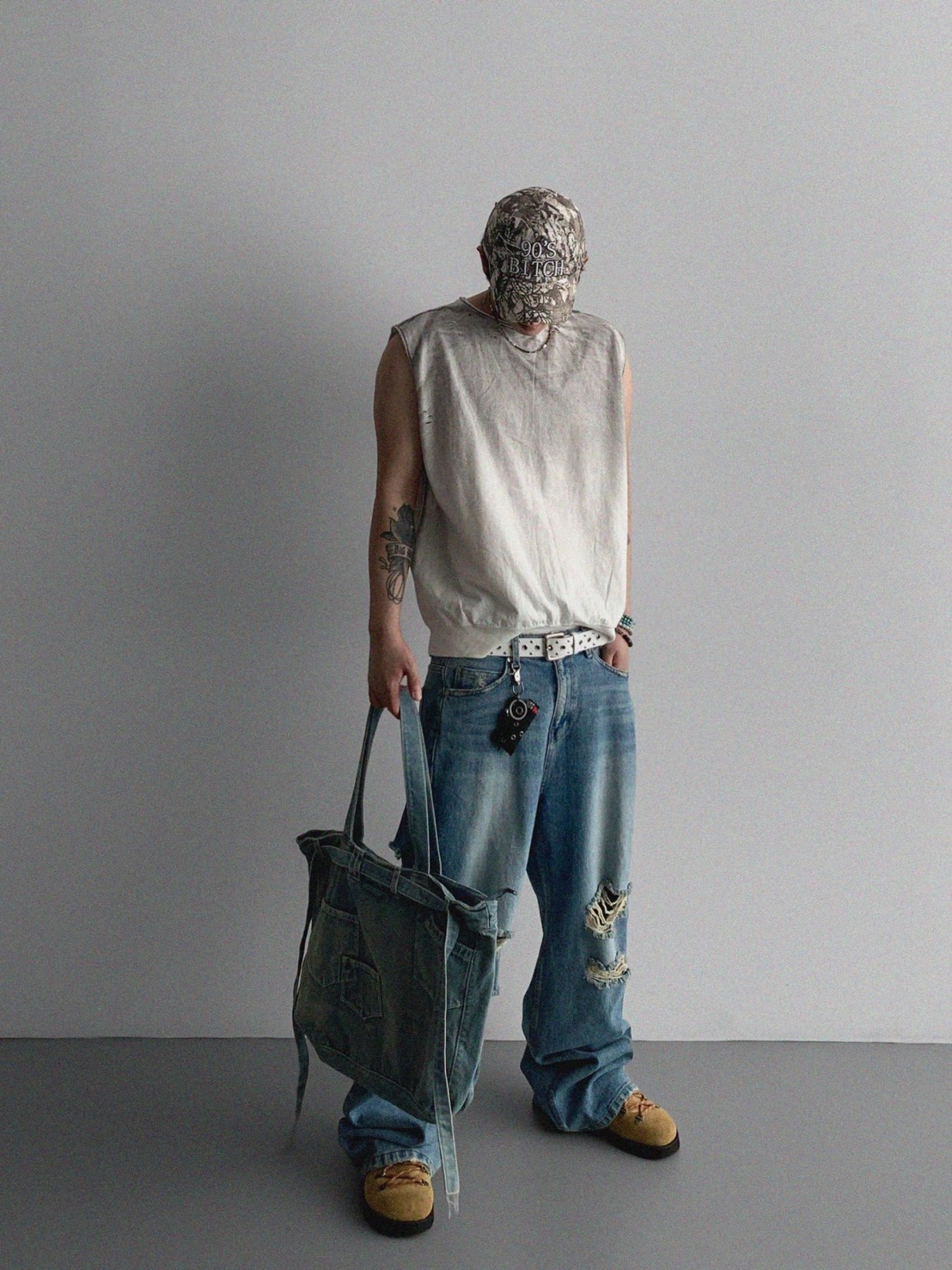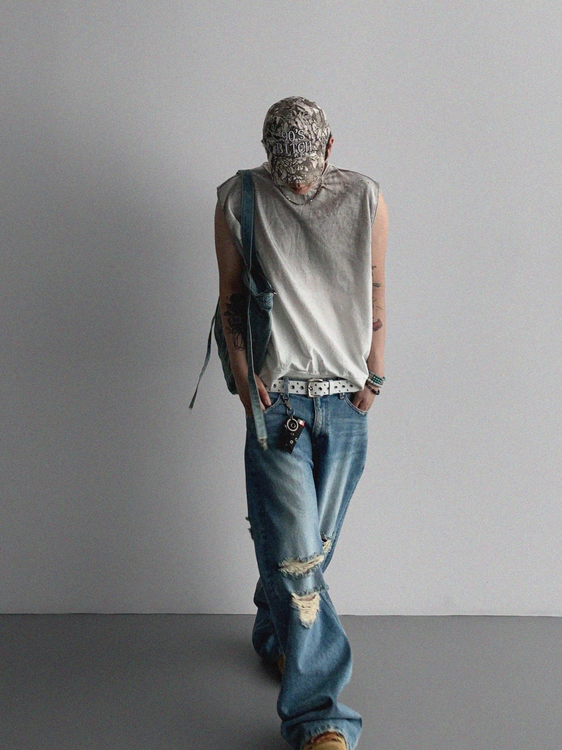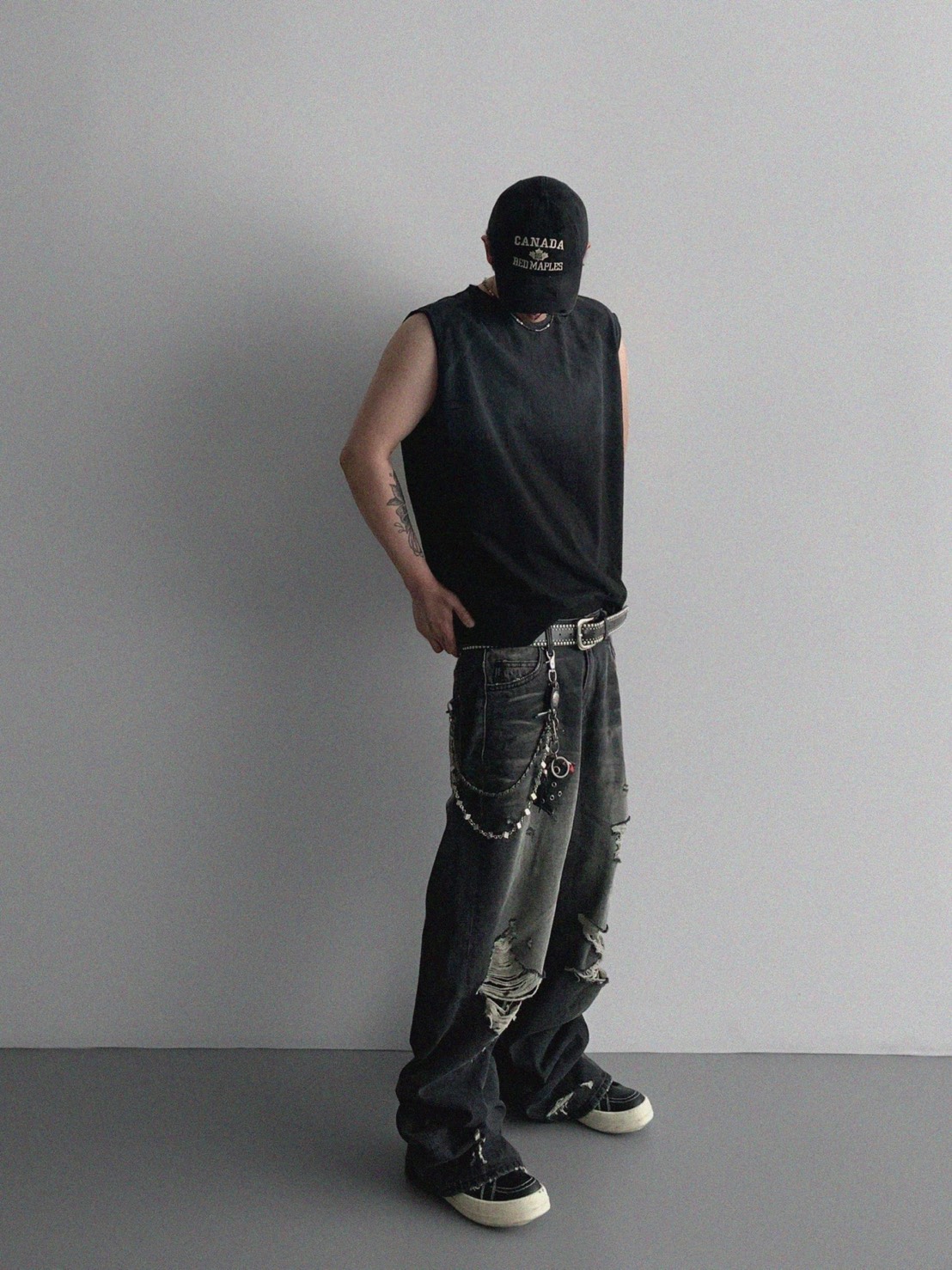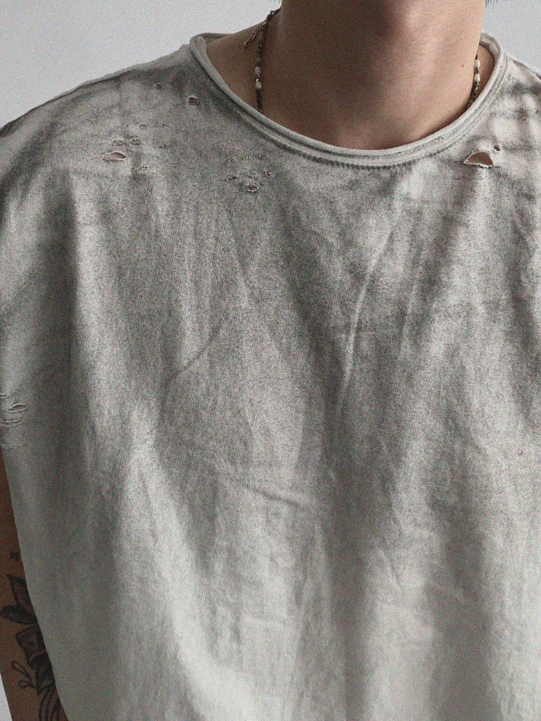 韓國 水洗 做舊 褪色感 寬肩 無袖 背心 上衣 (2color)