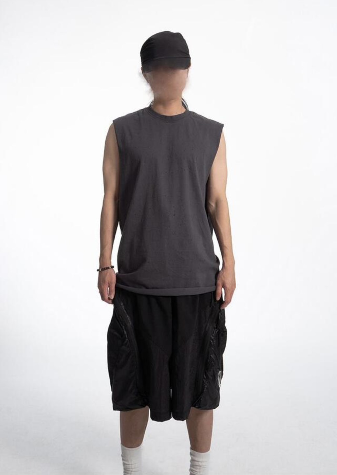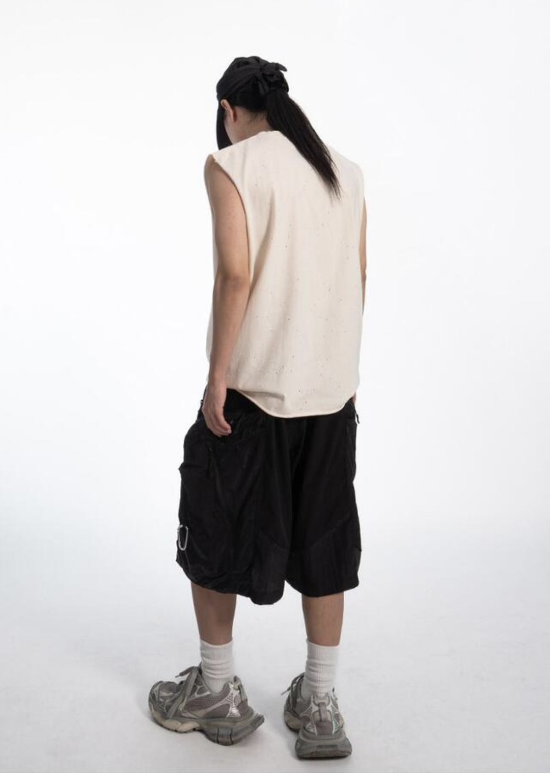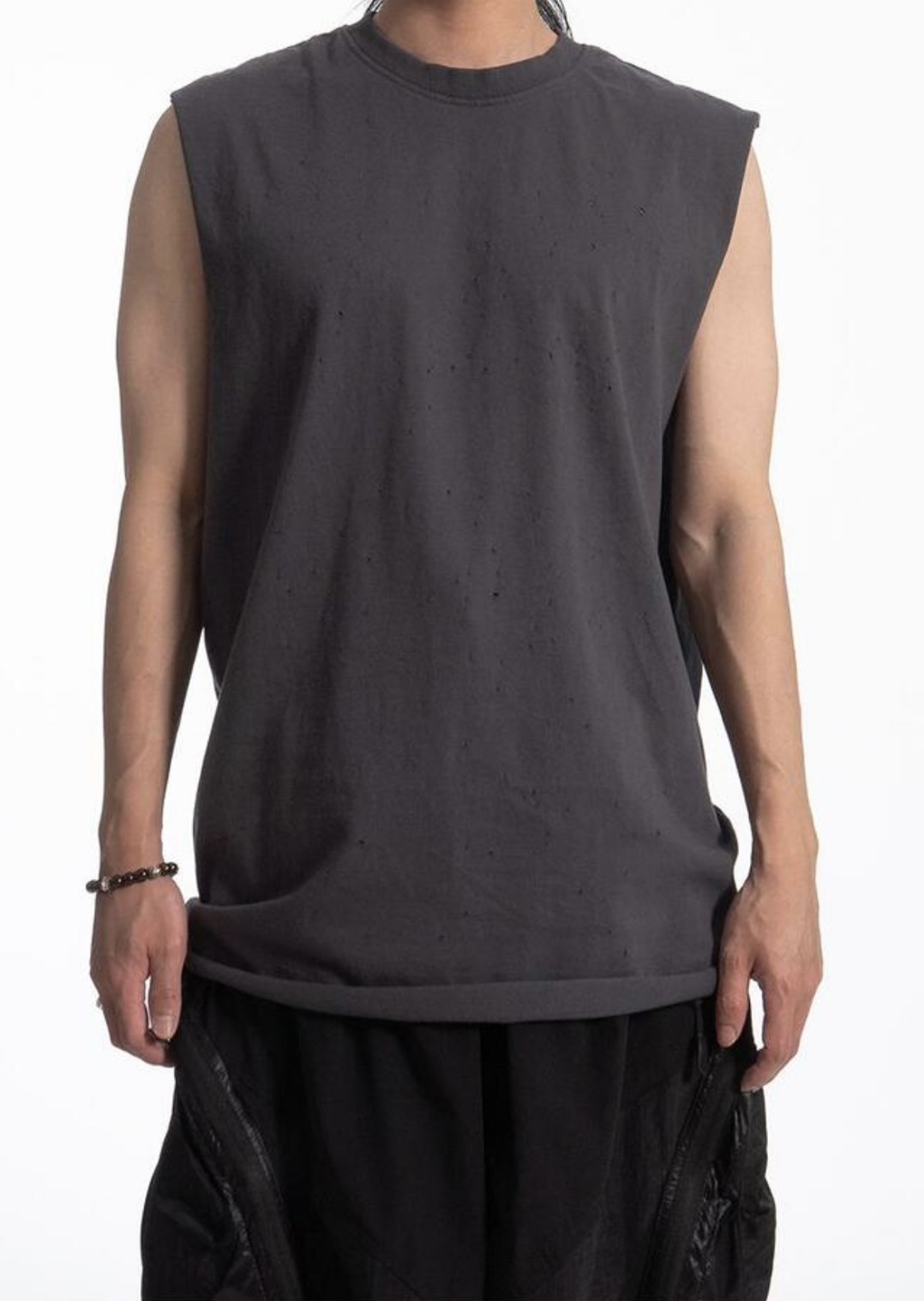 韓國 CLEAN FIT 針洞 小破壞 寬肩 無袖 背心 上衣 (2color)