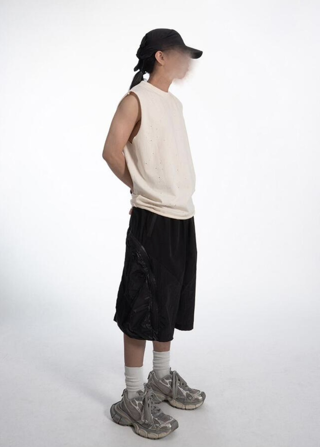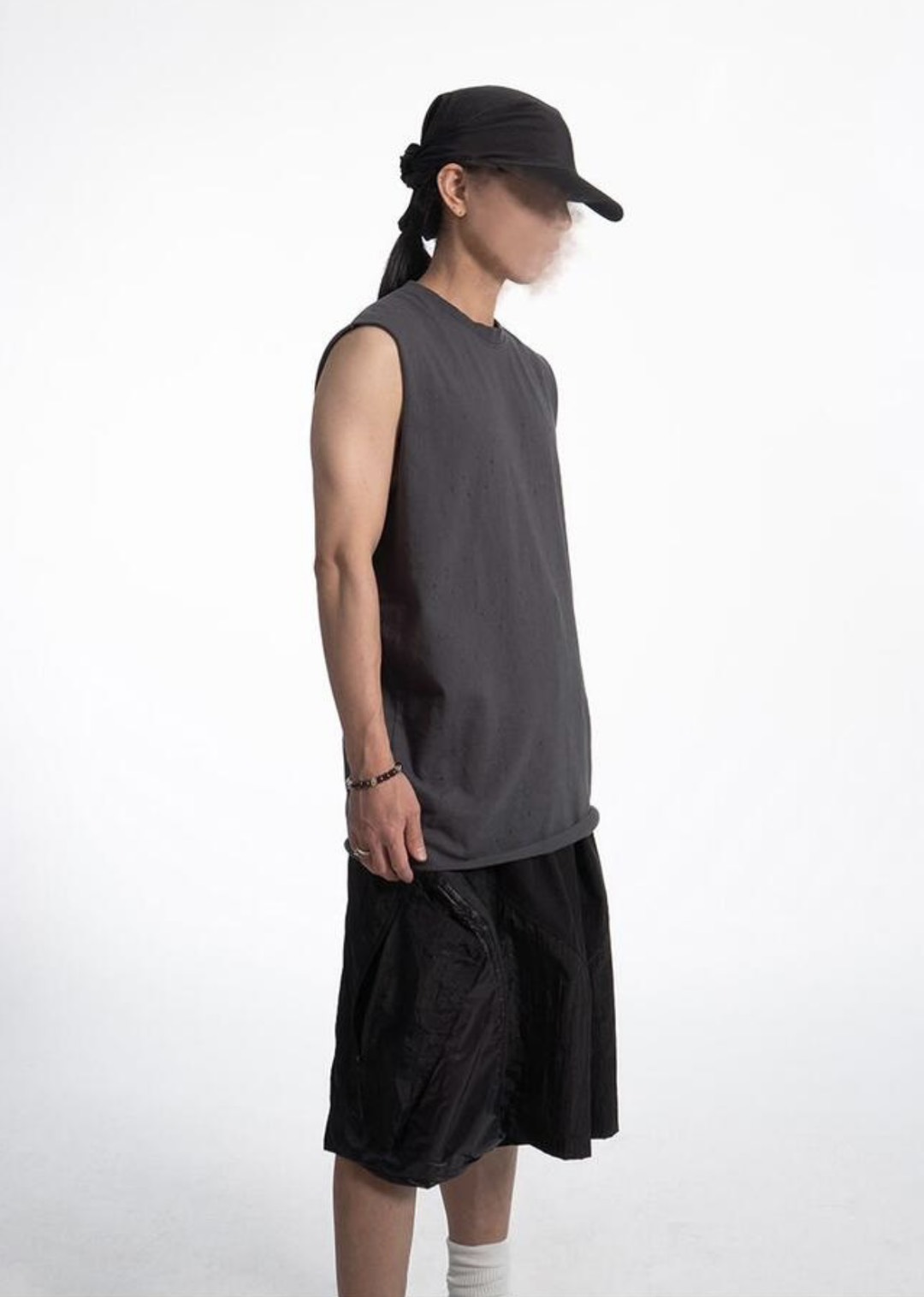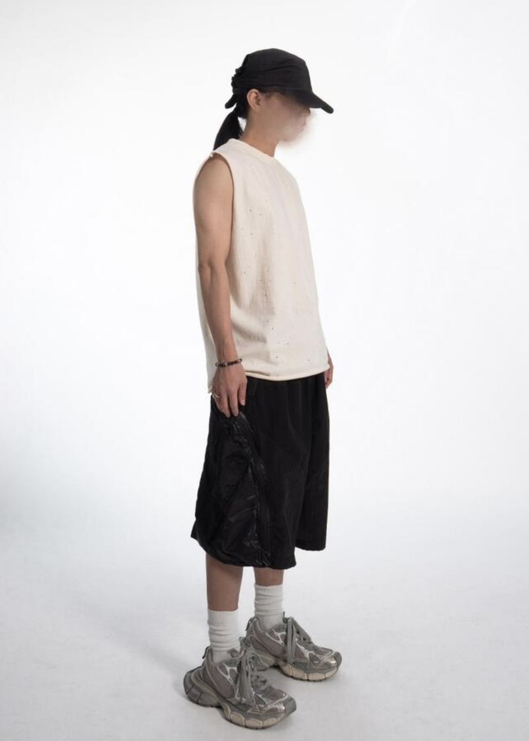 韓國 CLEAN FIT 針洞 小破壞 寬肩 無袖 背心 上衣 (2color)