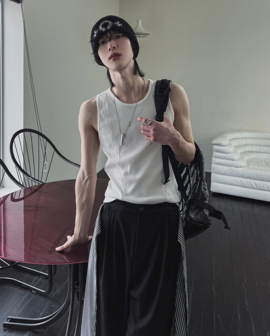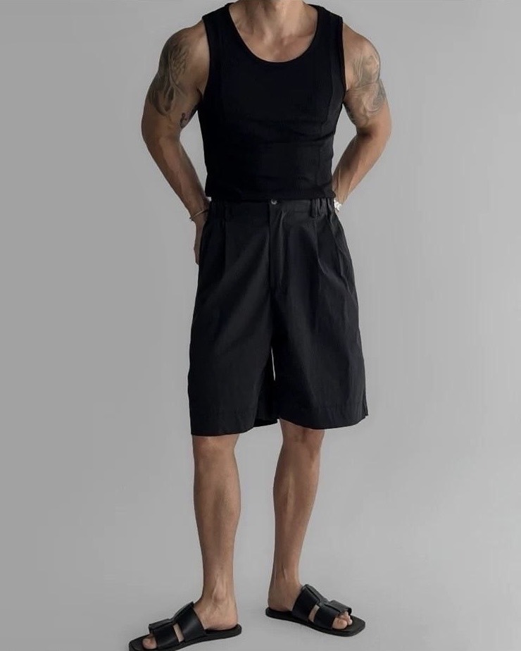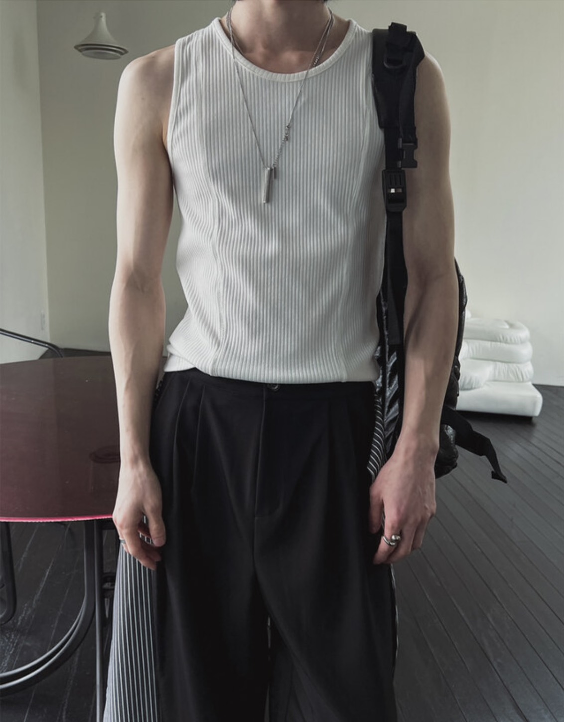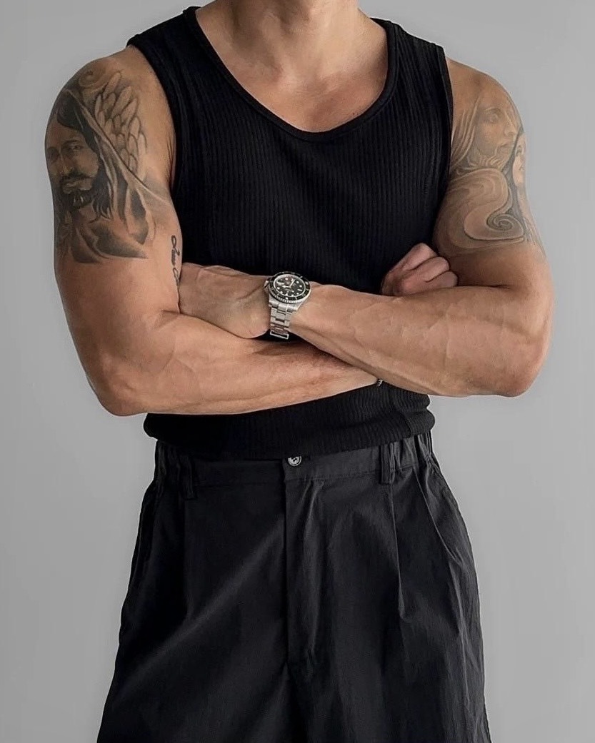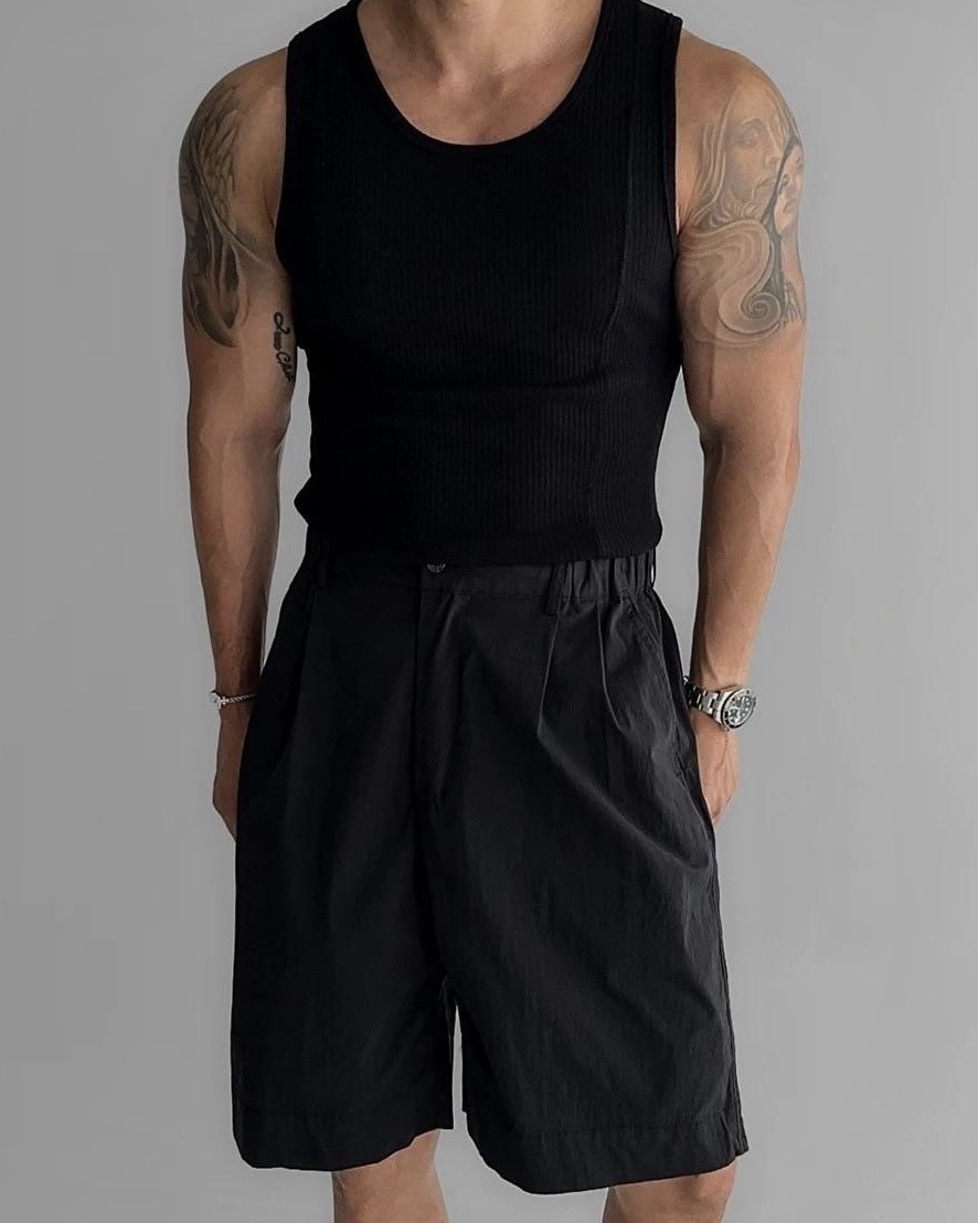 韓國 雙弧線 螺紋 拼接 坑條 剪裁 貼身 背心 (2color)