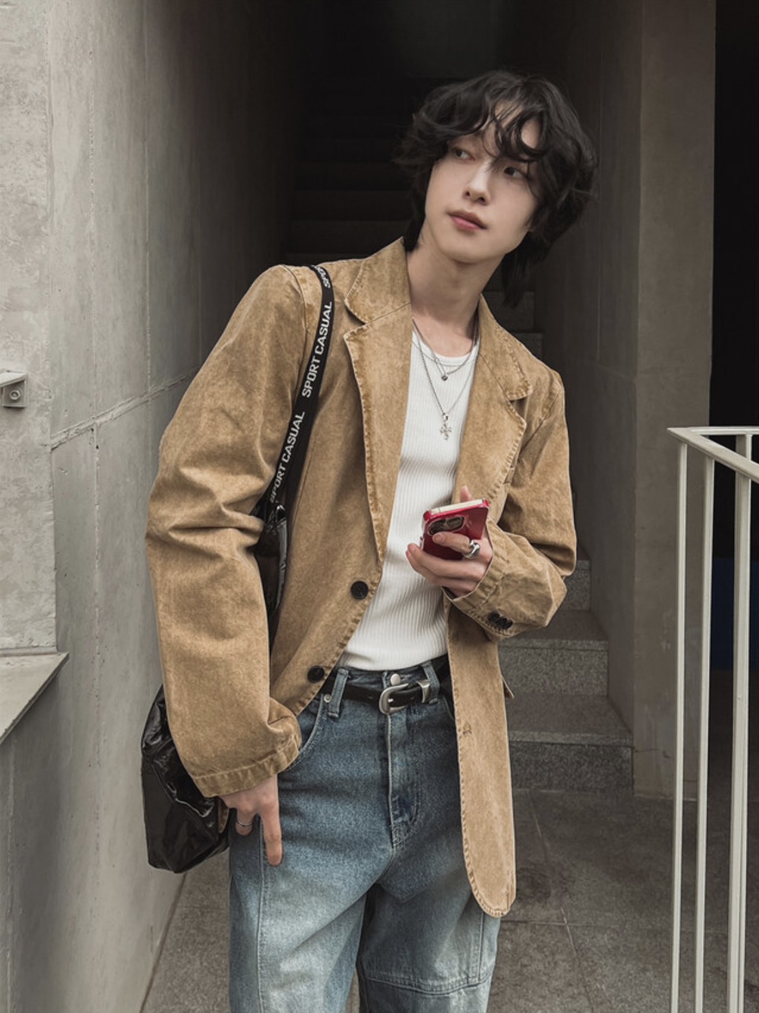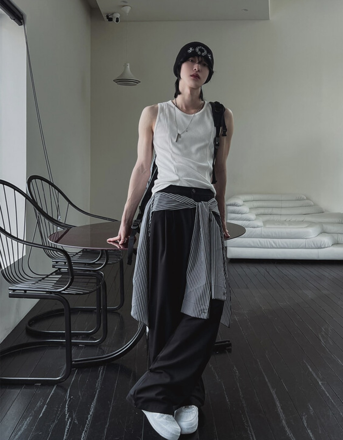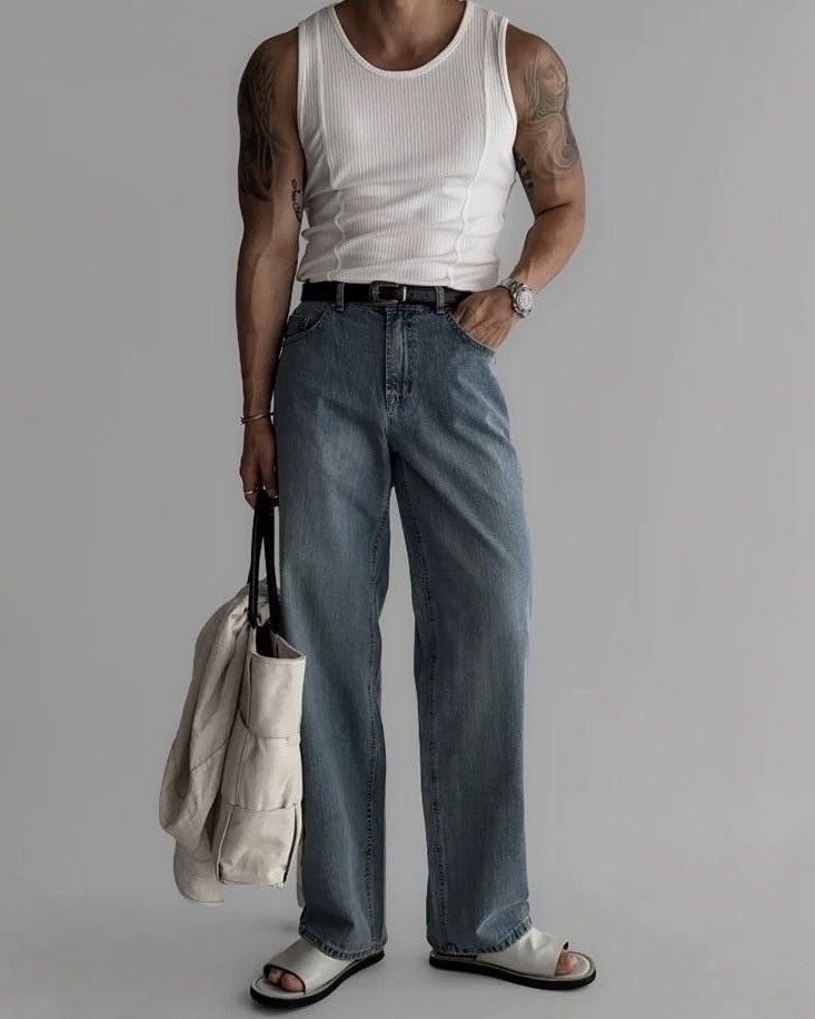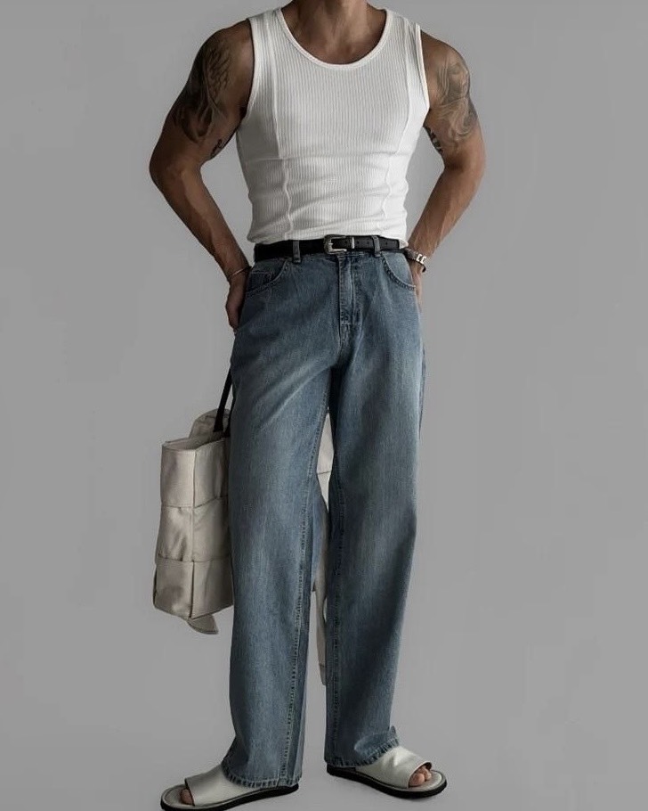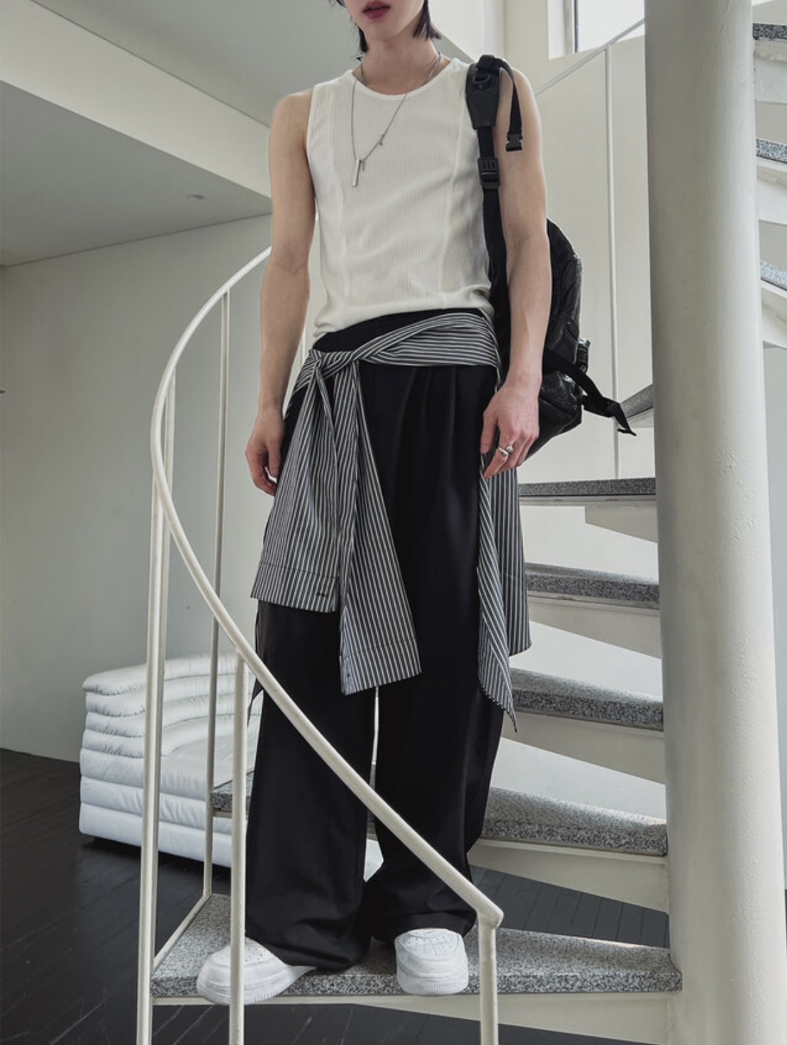 韓國 雙弧線 螺紋 拼接 坑條 剪裁 貼身 背心 (2color)