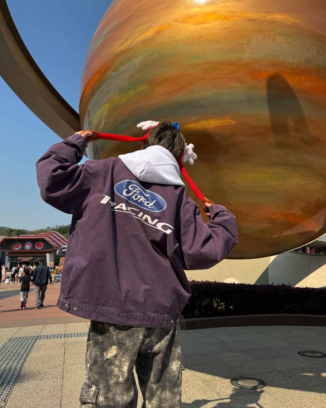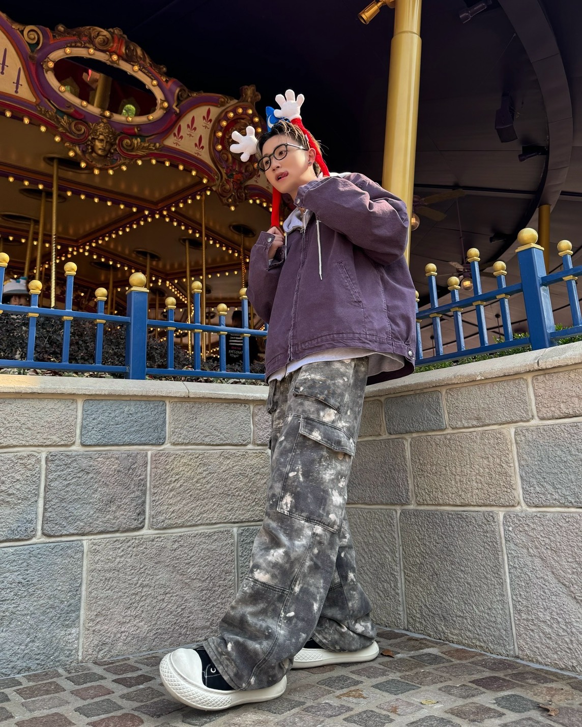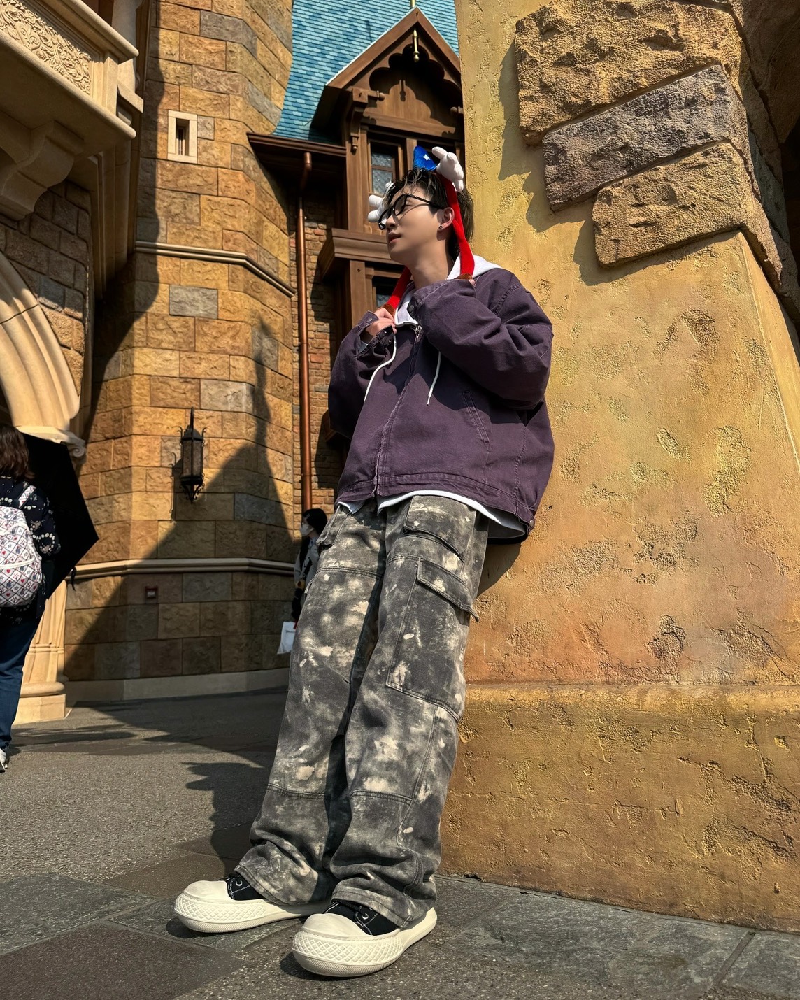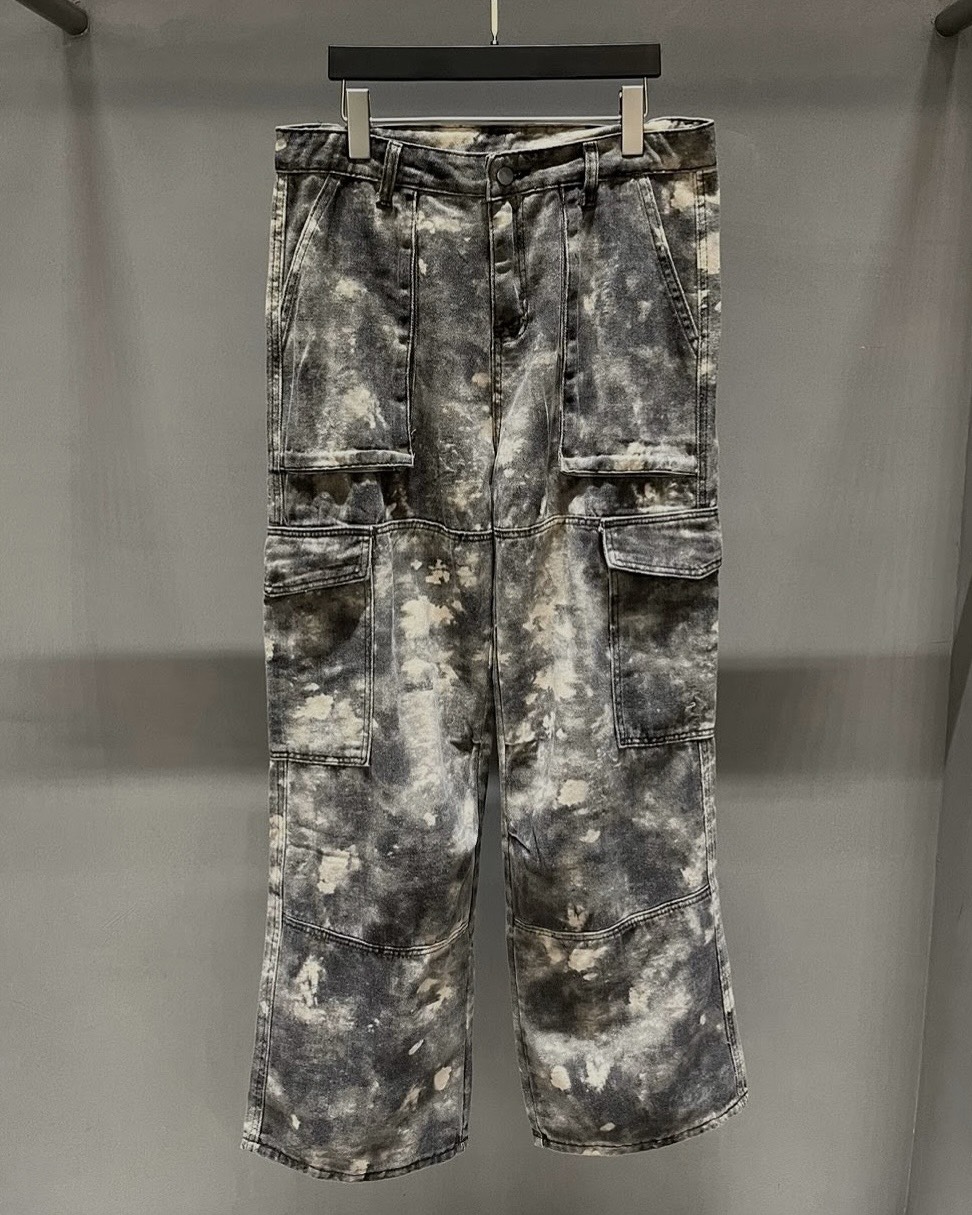 韓國 迪士尼 雪花 潑墨 渲染 多口袋 小直筒 工作褲 Cargo Pants