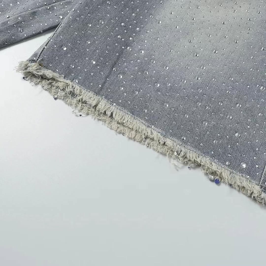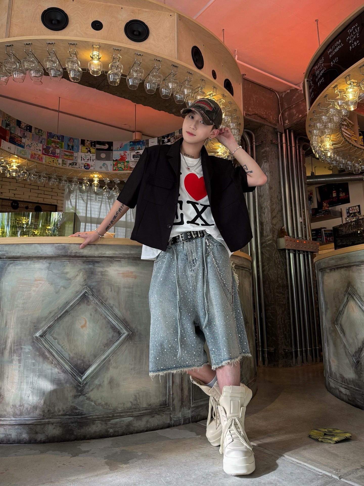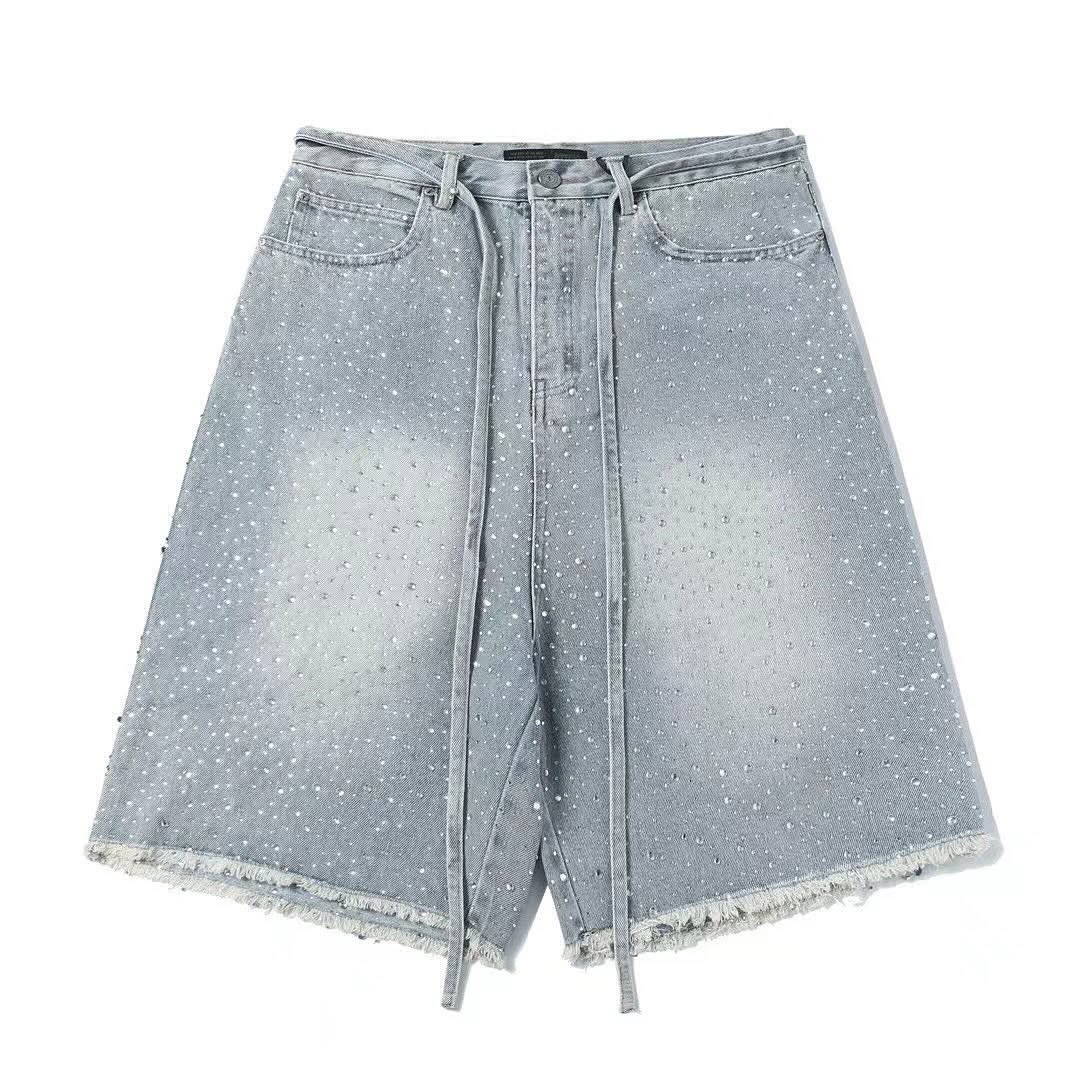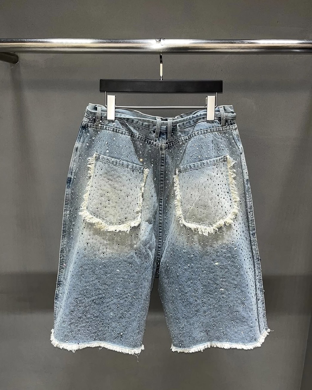 B.I 金韓彬 音樂節同款 韓國 DIAMOND 滿鑽 破壞 不收邊 牛仔短褲