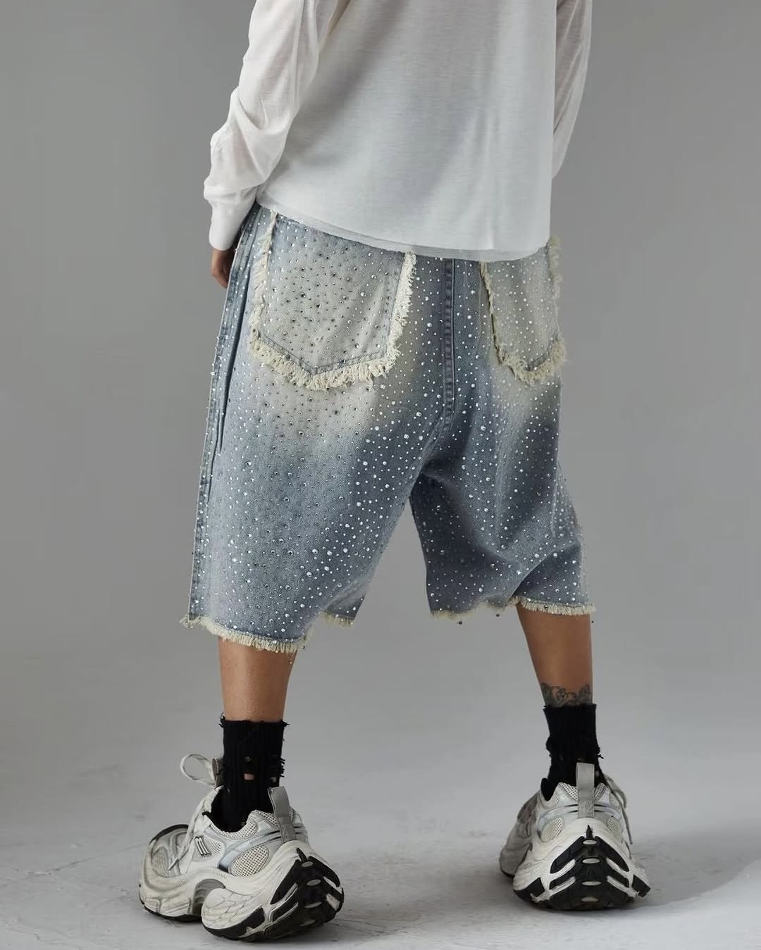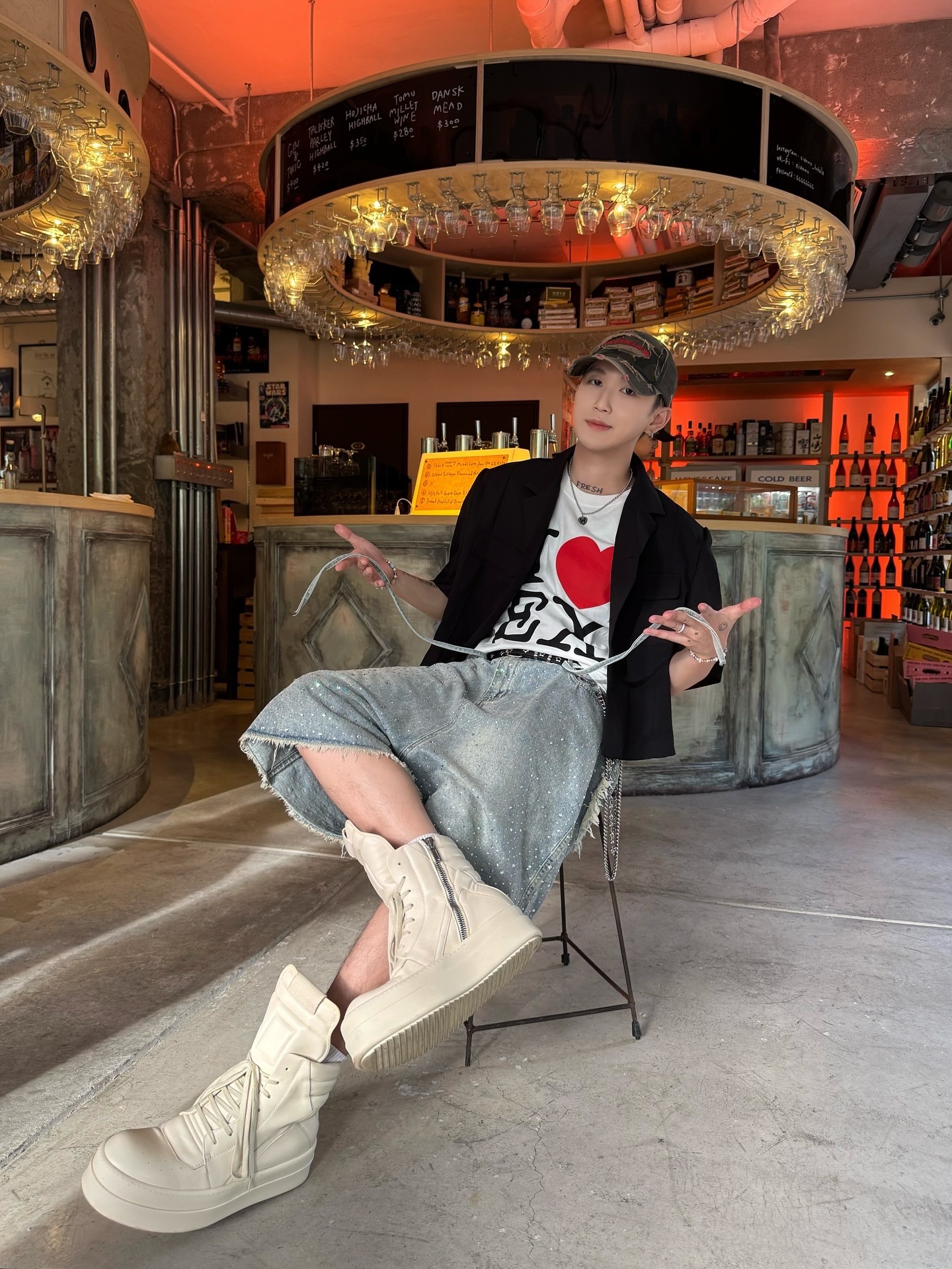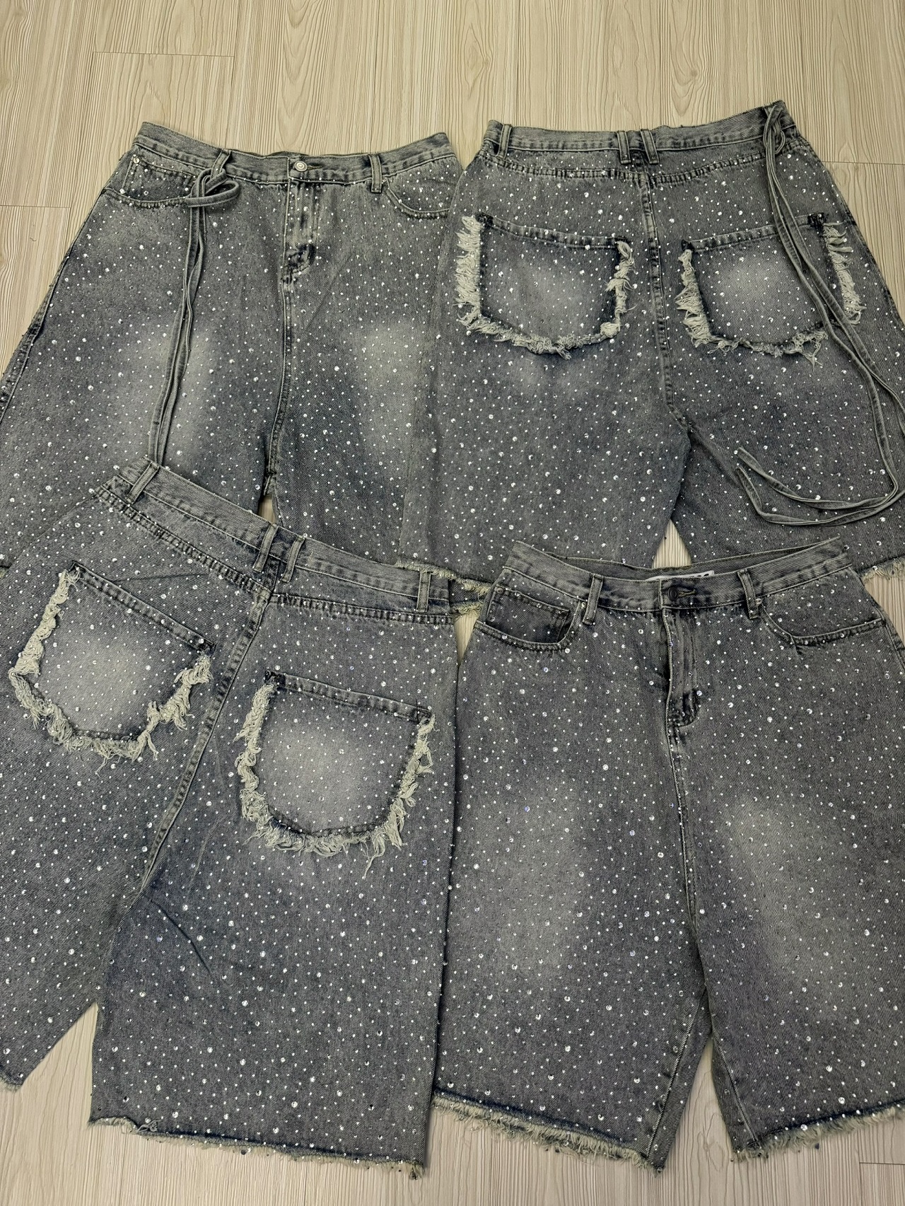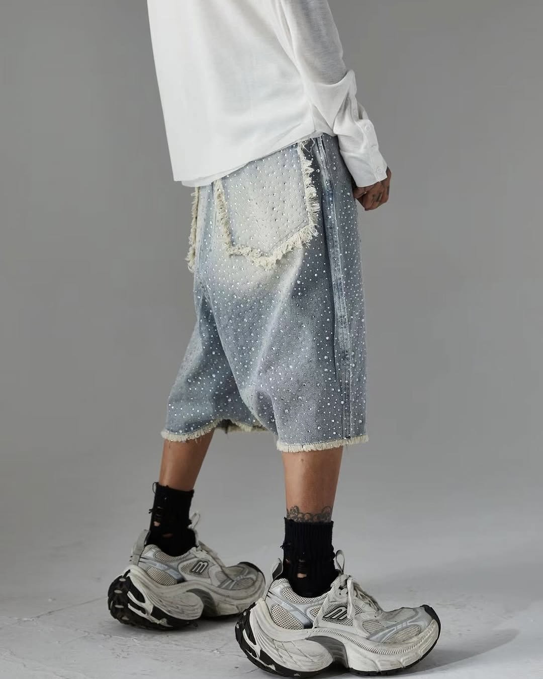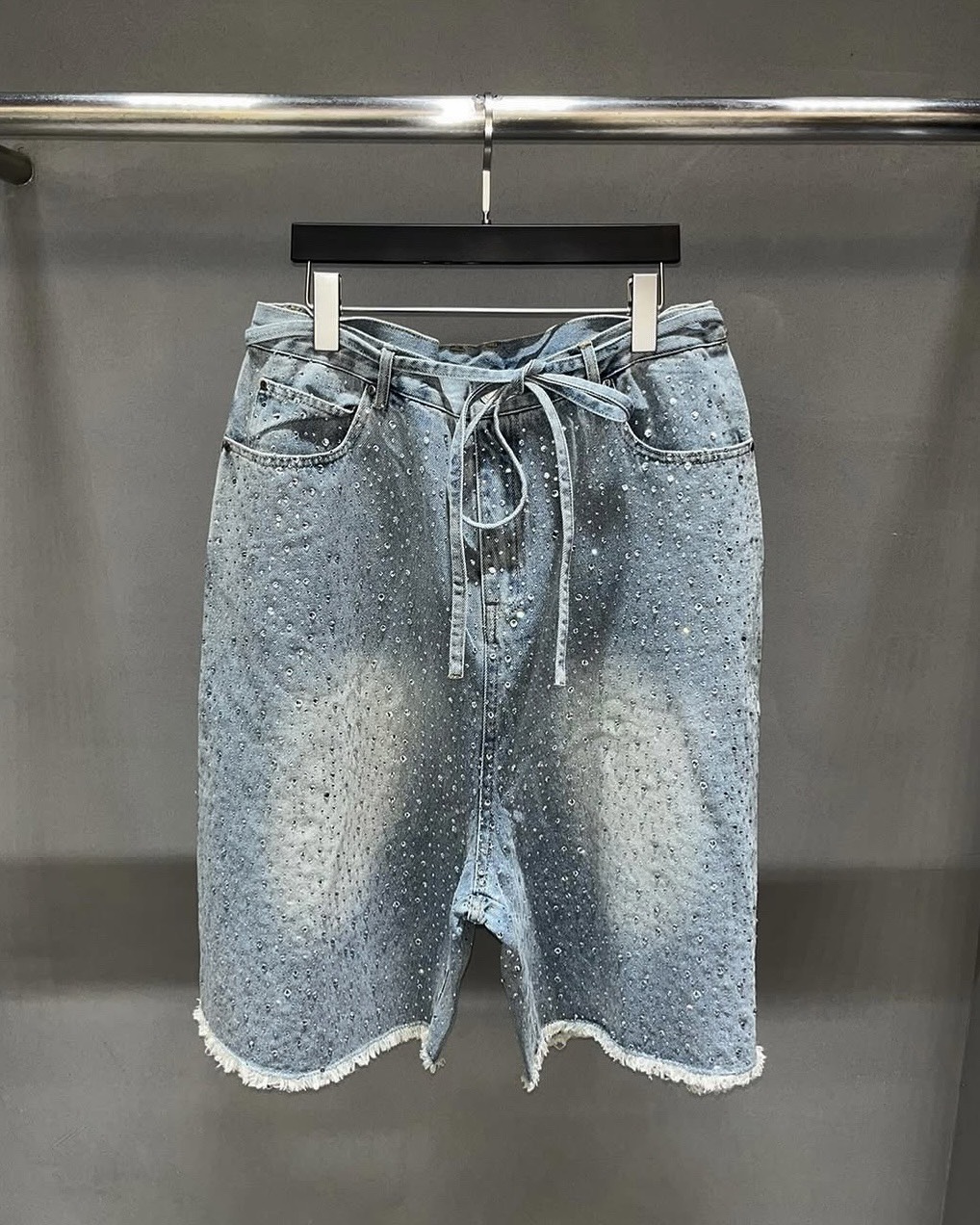 B.I 金韓彬 音樂節同款 韓國 DIAMOND 滿鑽 破壞 不收邊 牛仔短褲