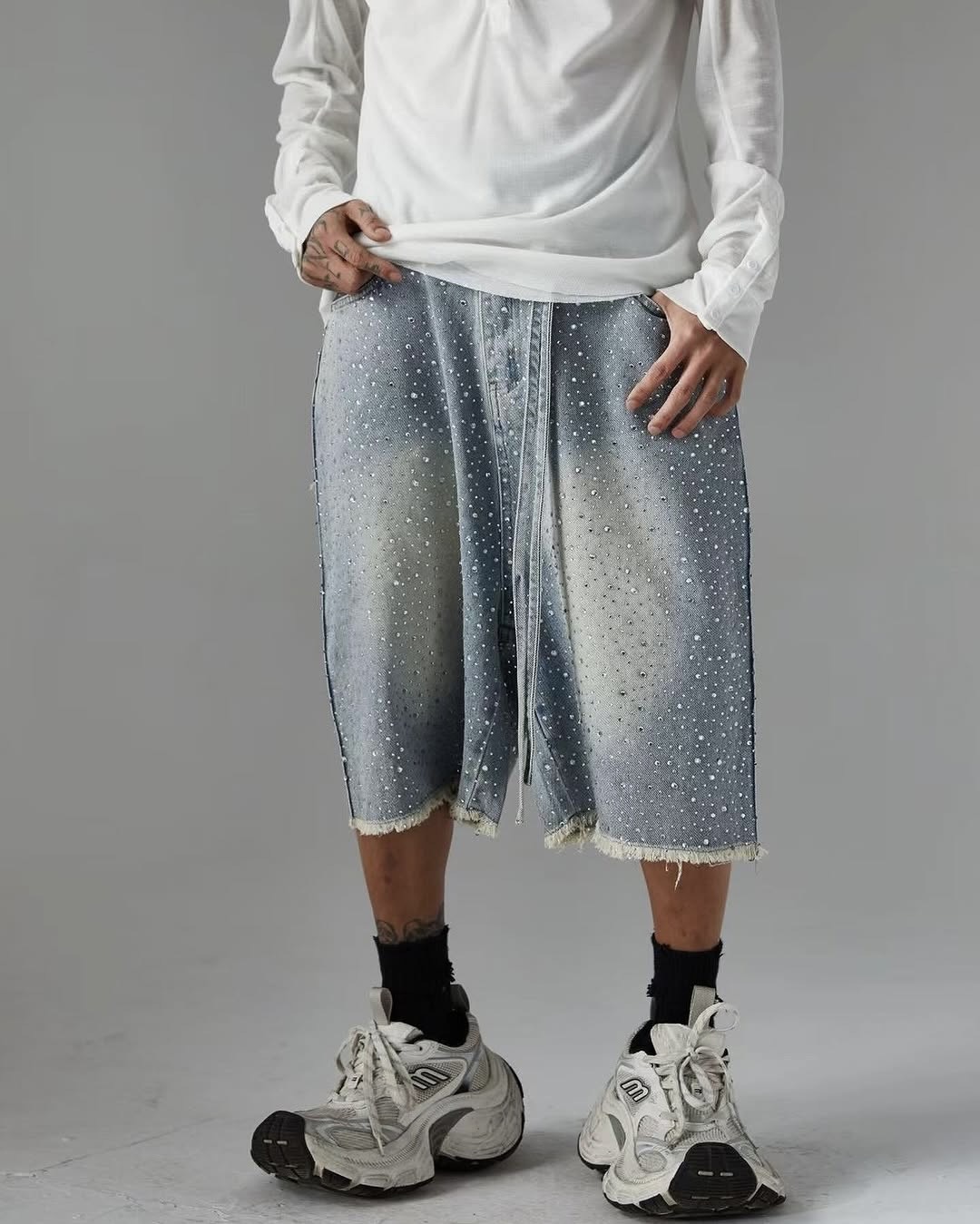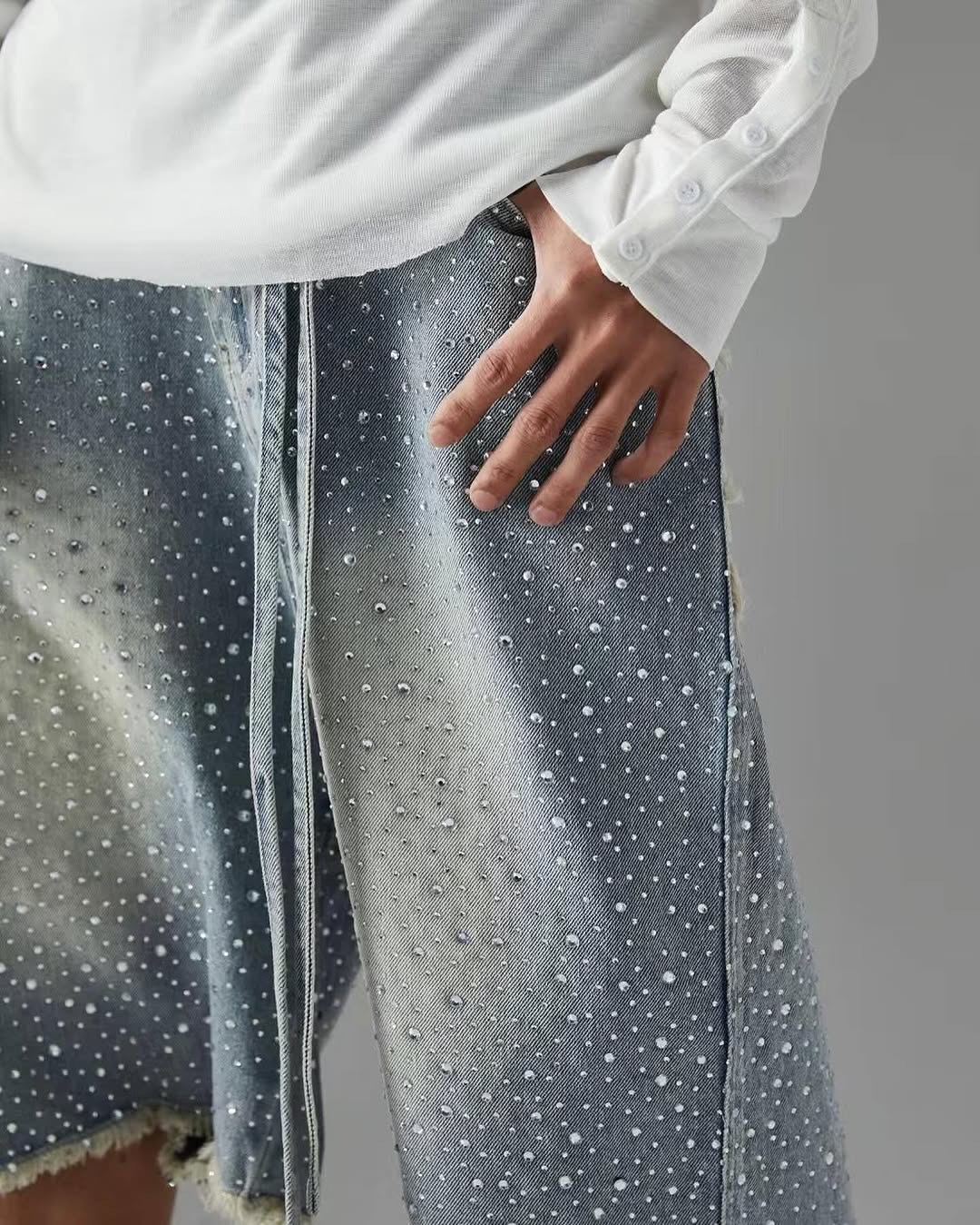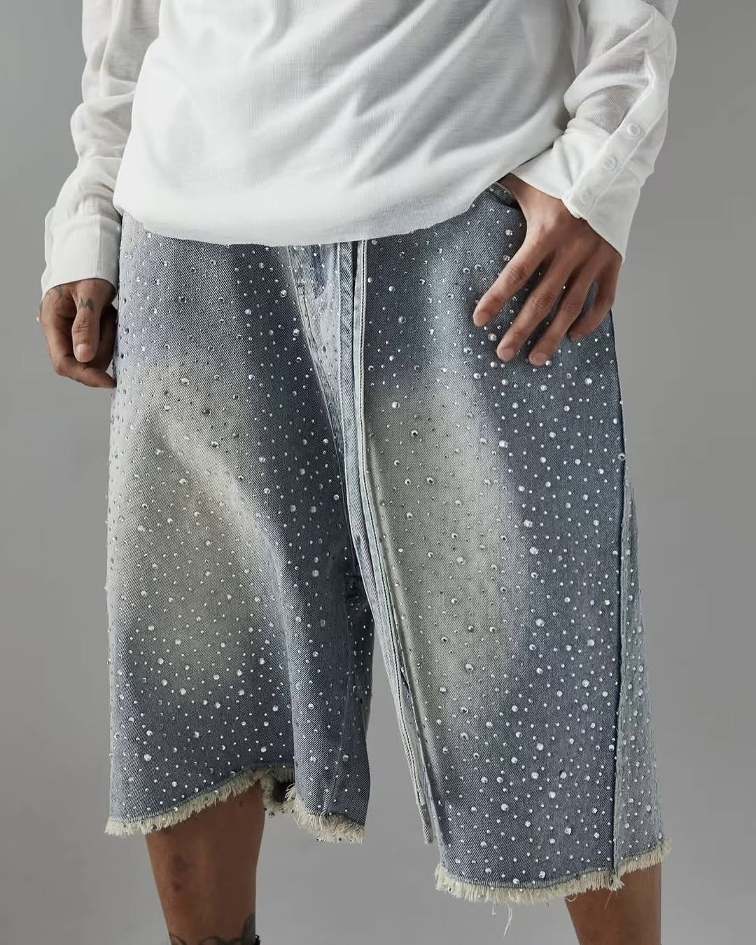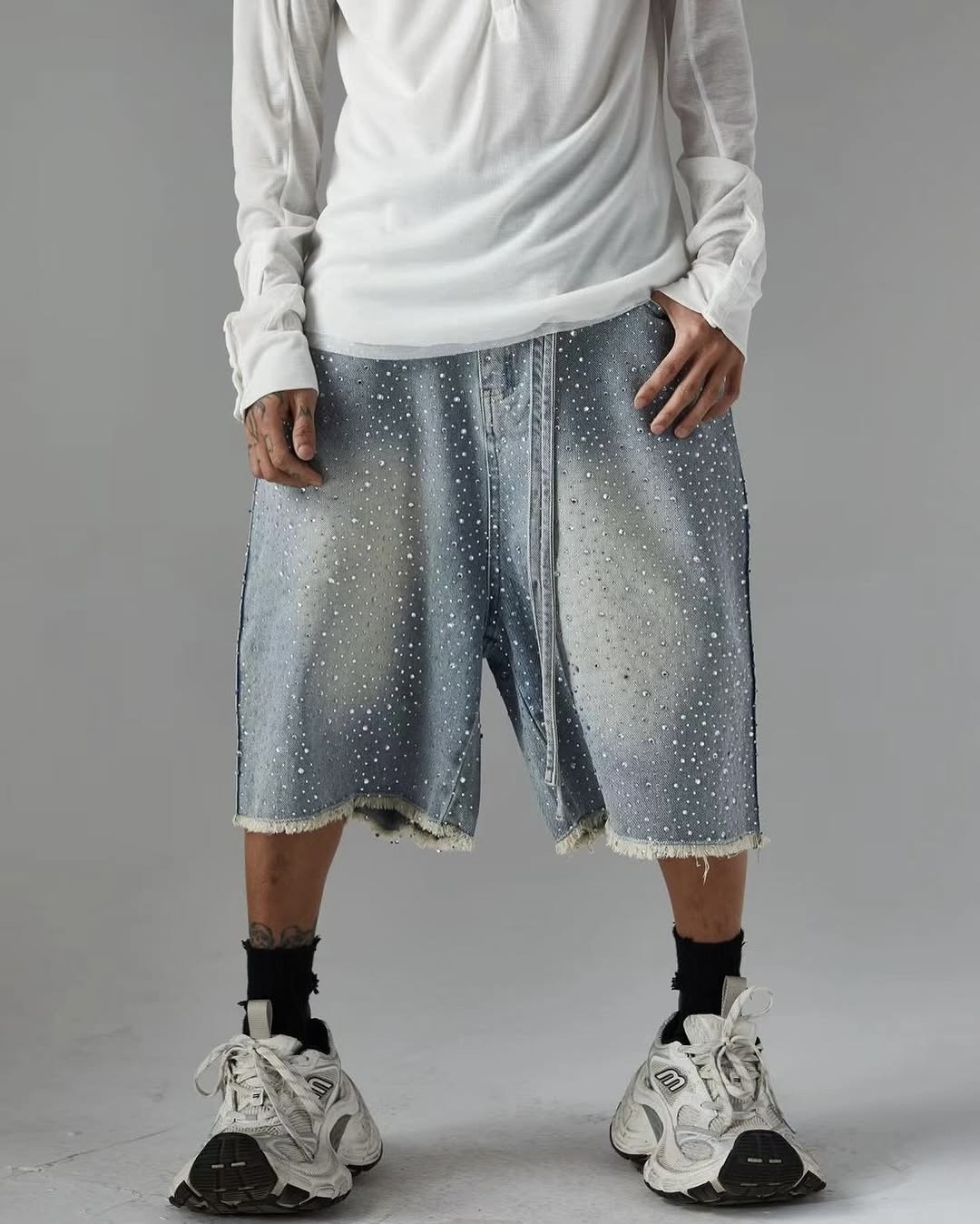B.I 金韓彬 音樂節同款 韓國 DIAMOND 滿鑽 破壞 不收邊 牛仔短褲