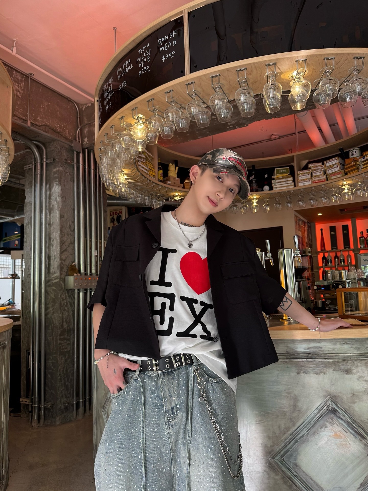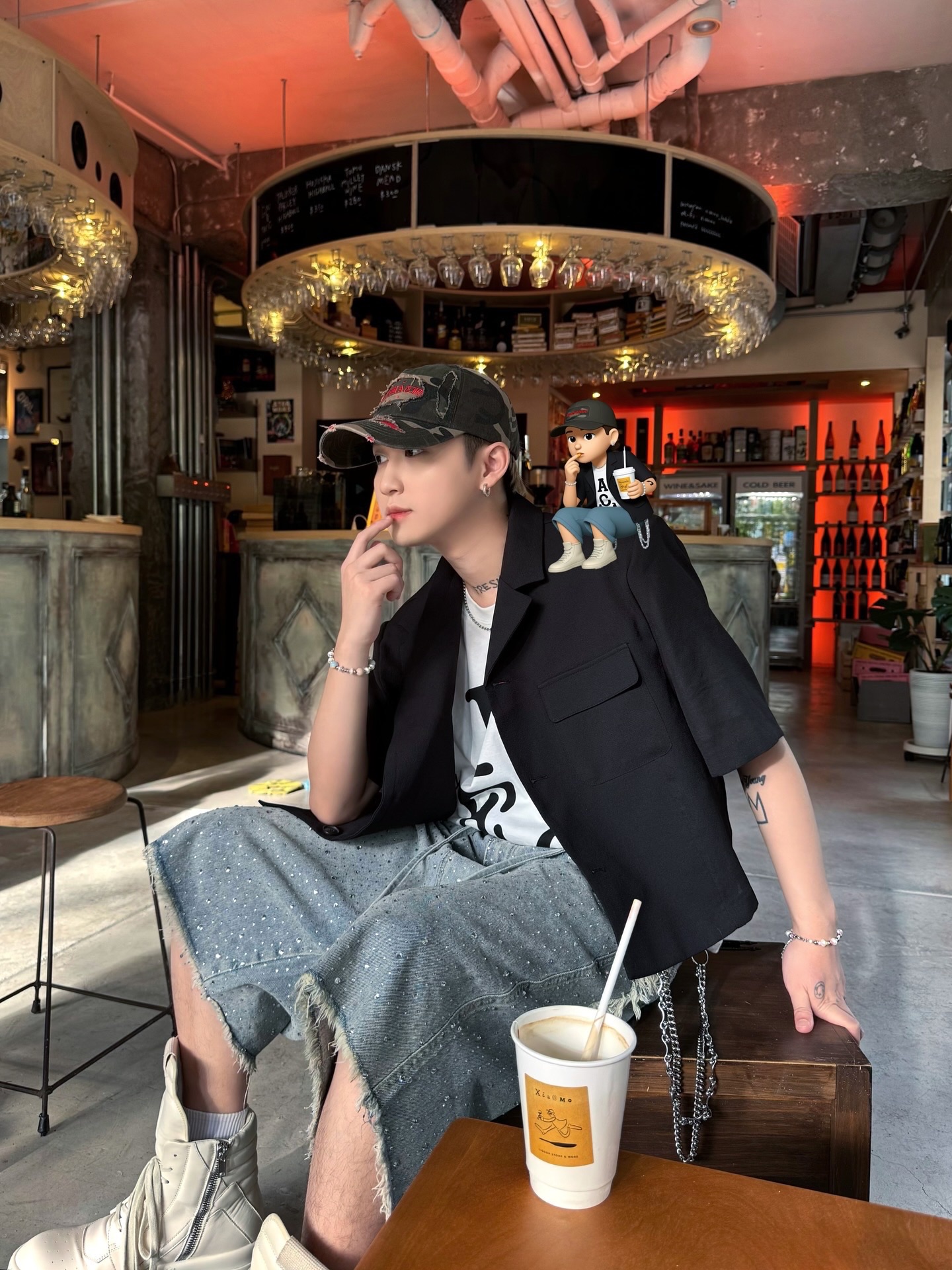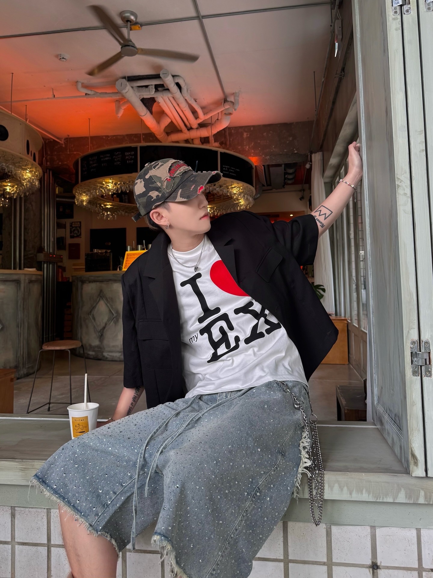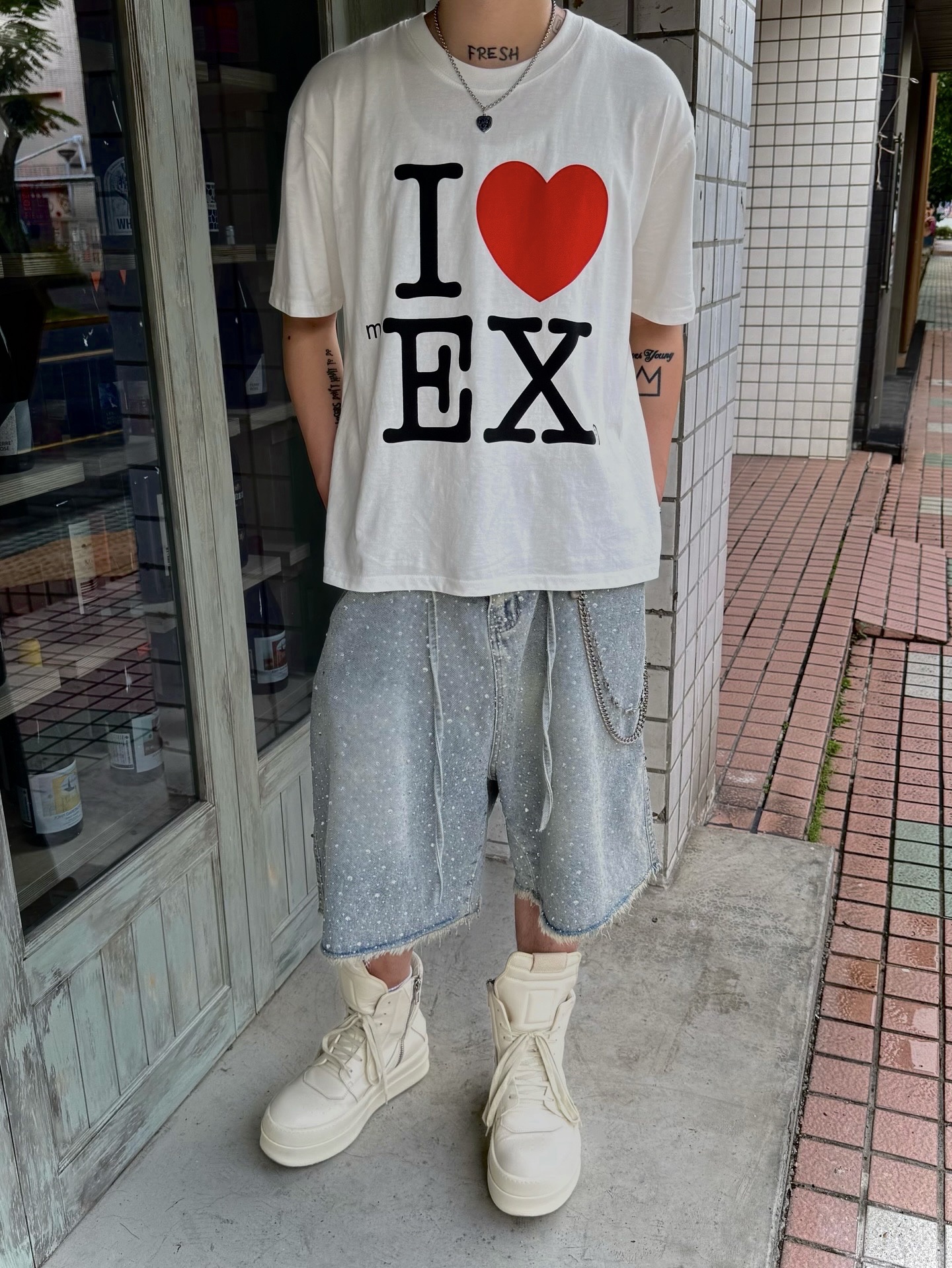 B.I 金韓彬 音樂節同款 韓國 DIAMOND 滿鑽 破壞 不收邊 牛仔短褲
