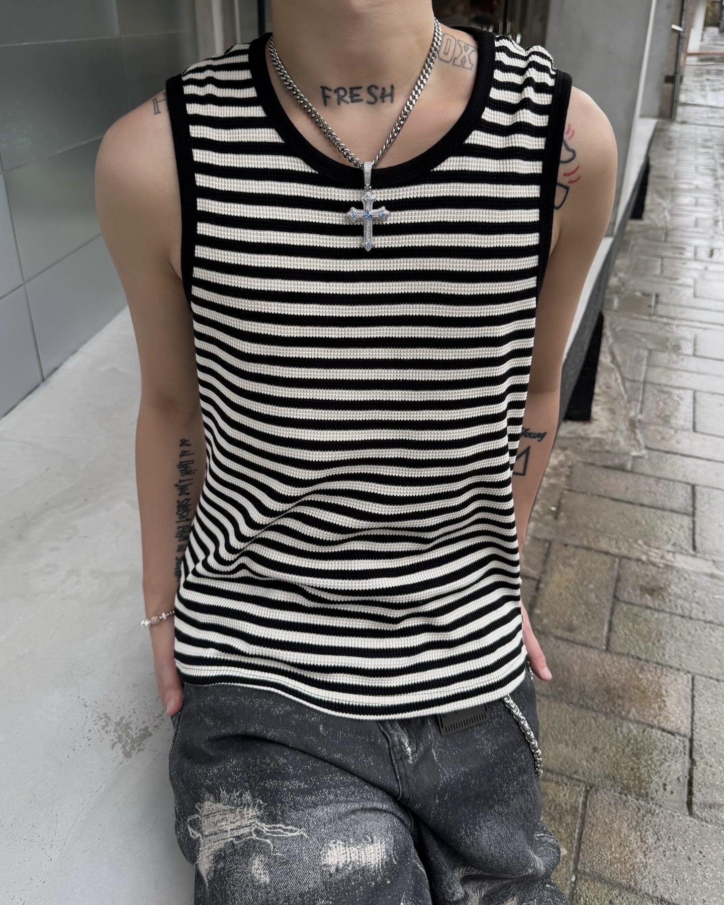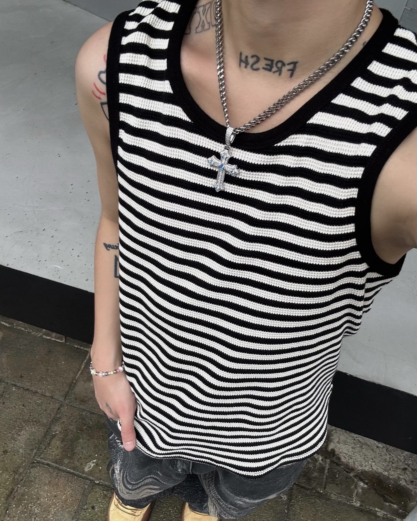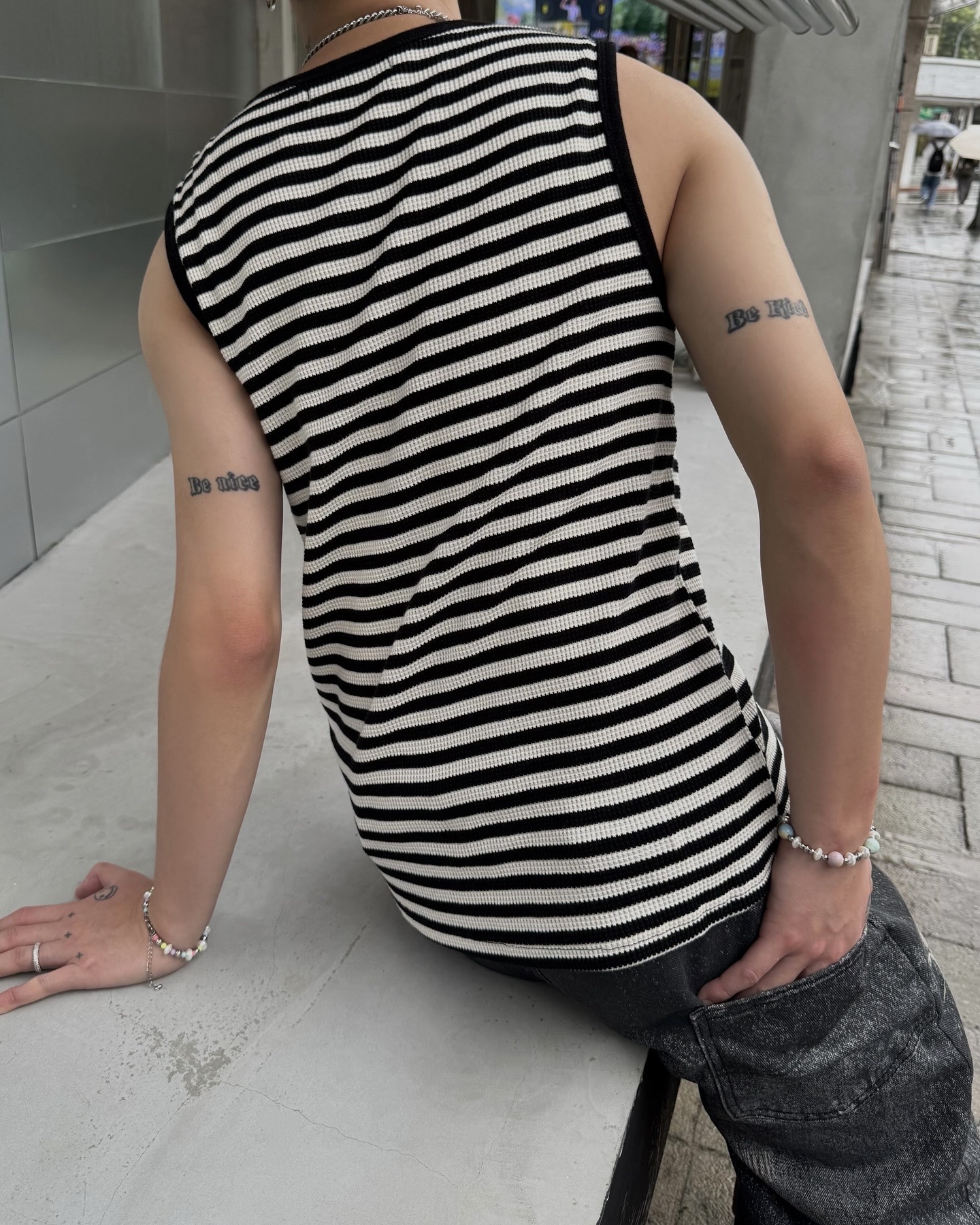 韓國 獨特 橫條紋 織理 針織 背心 Striped Vest (3color)