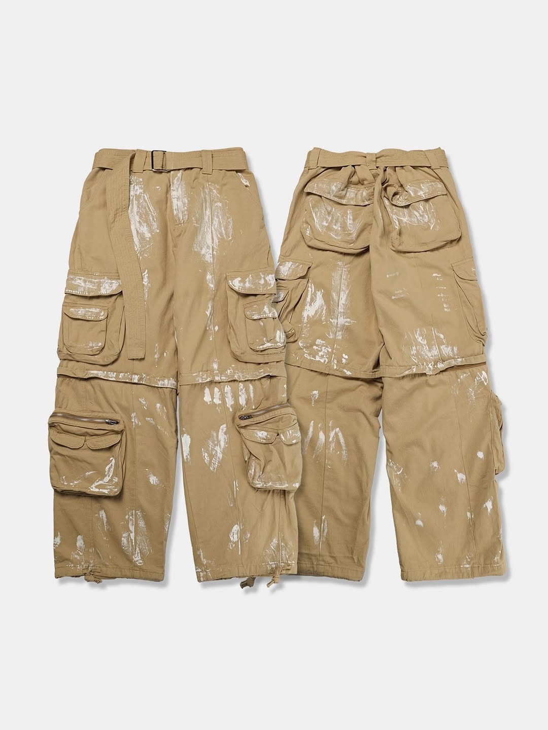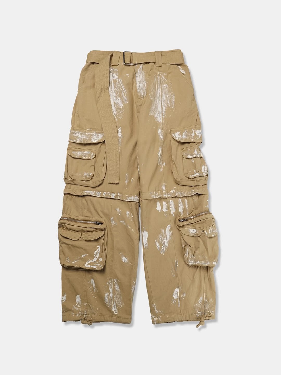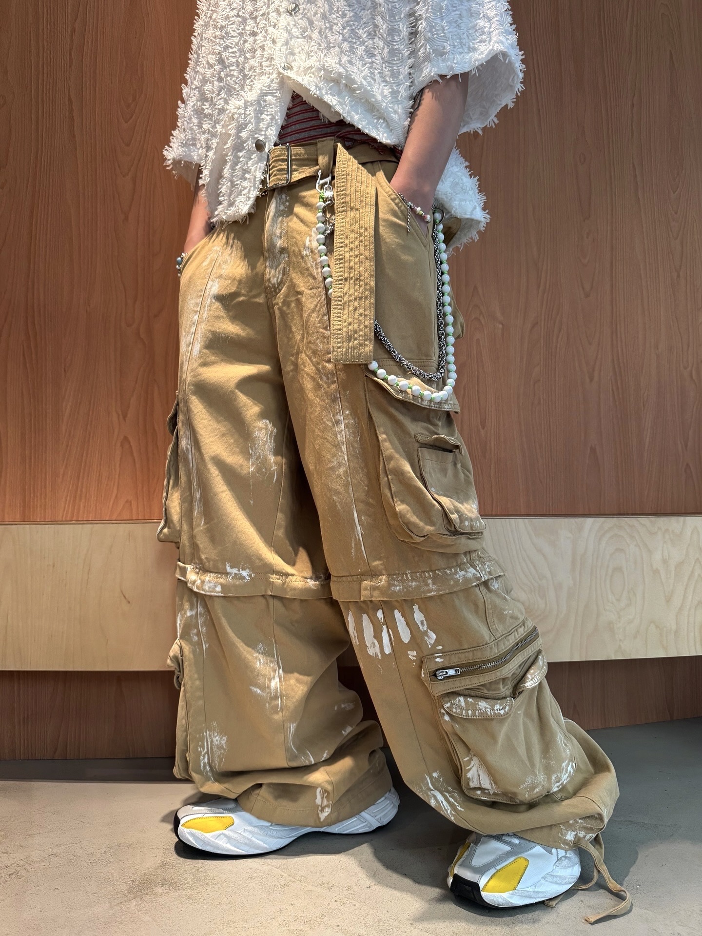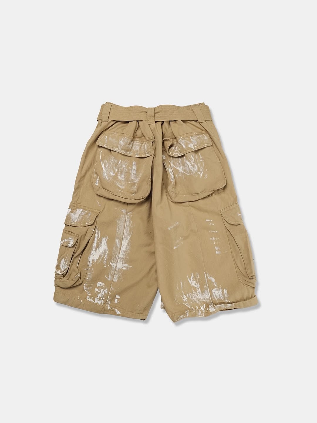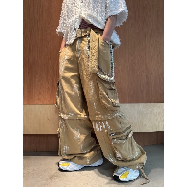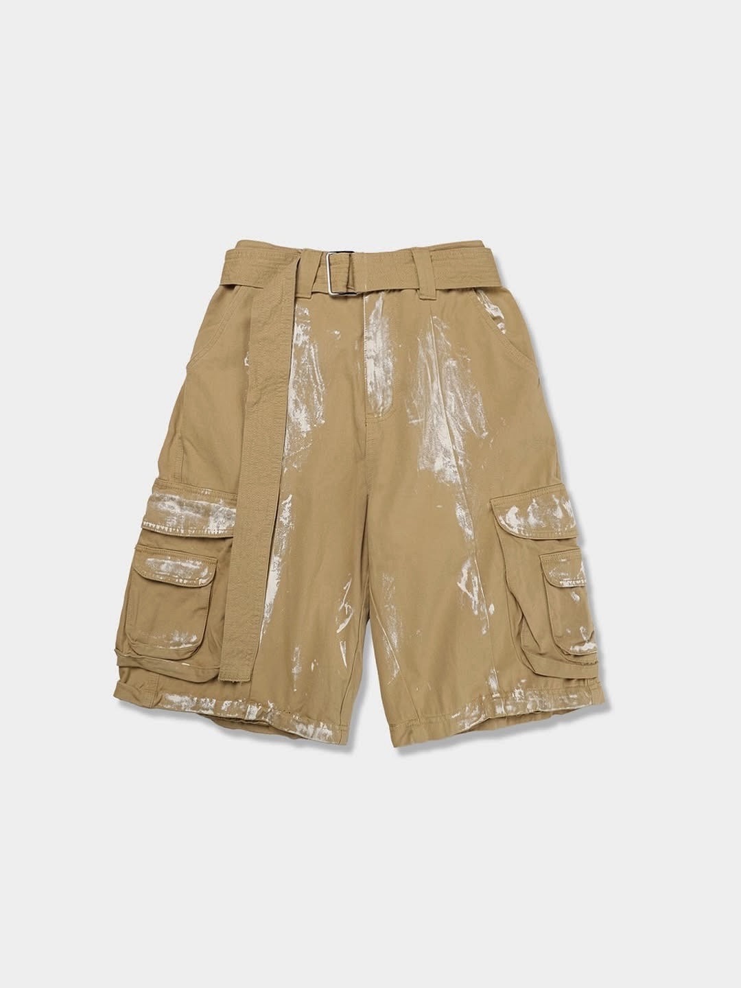 韓國 潑漆 設計感 腰帶 可拆式 重磅 大口袋 拉鍊 工作褲 短褲 (本季推薦必帶)