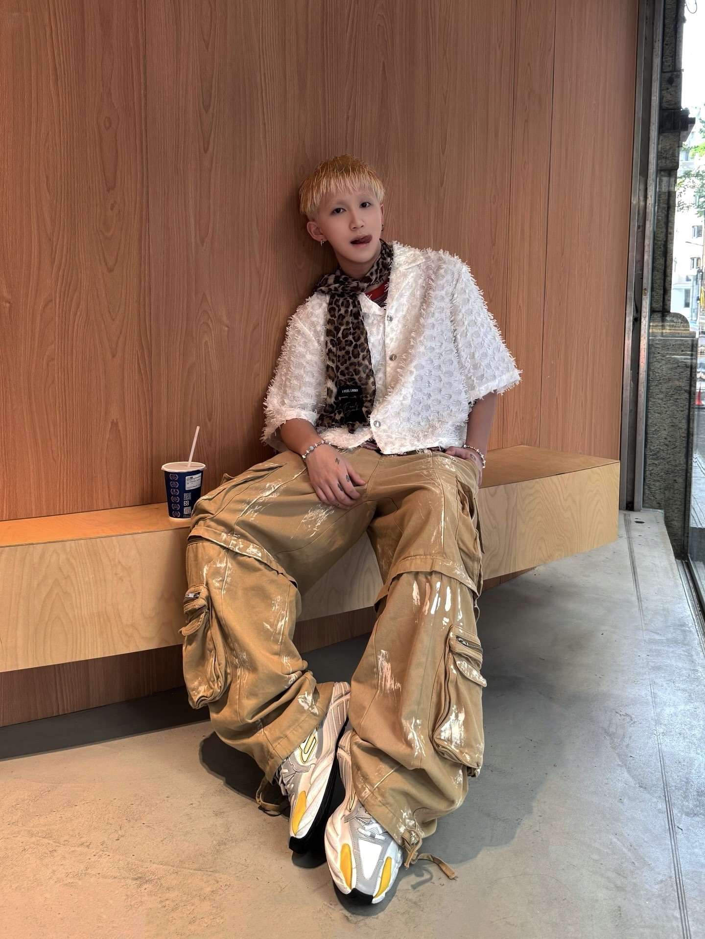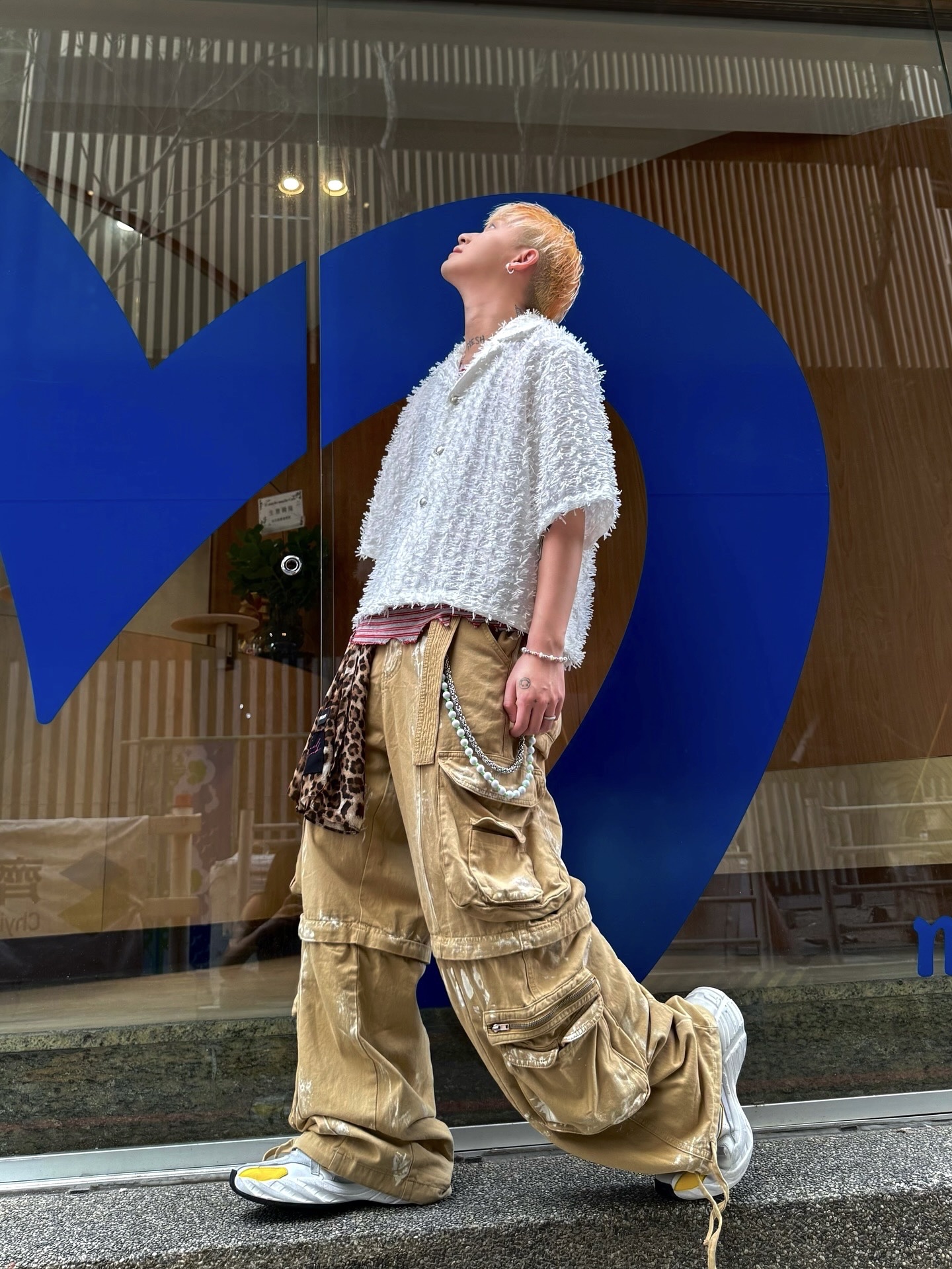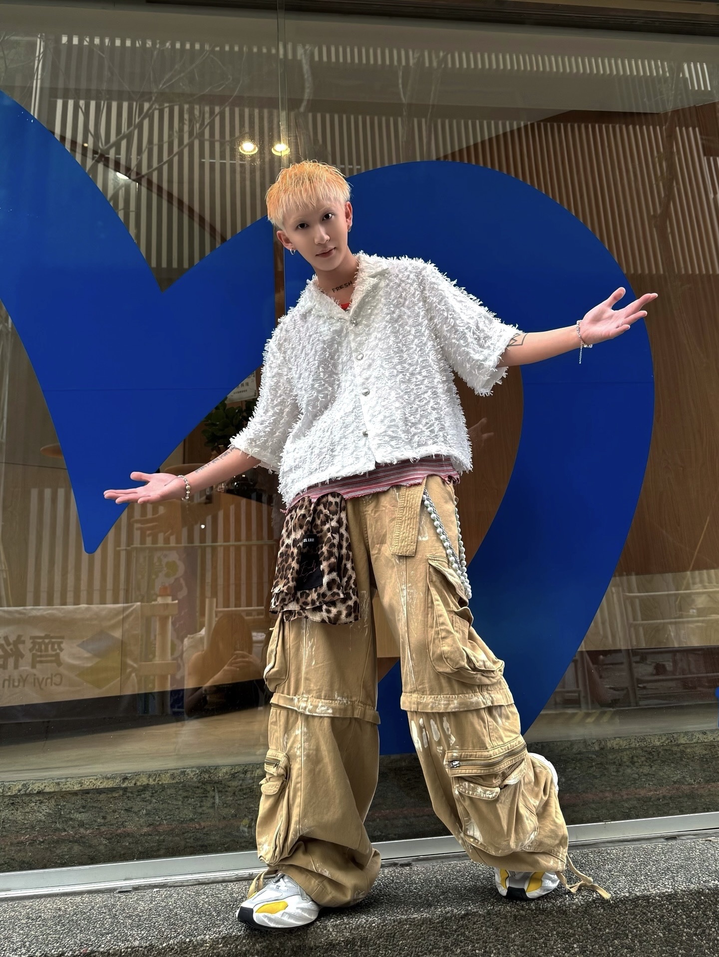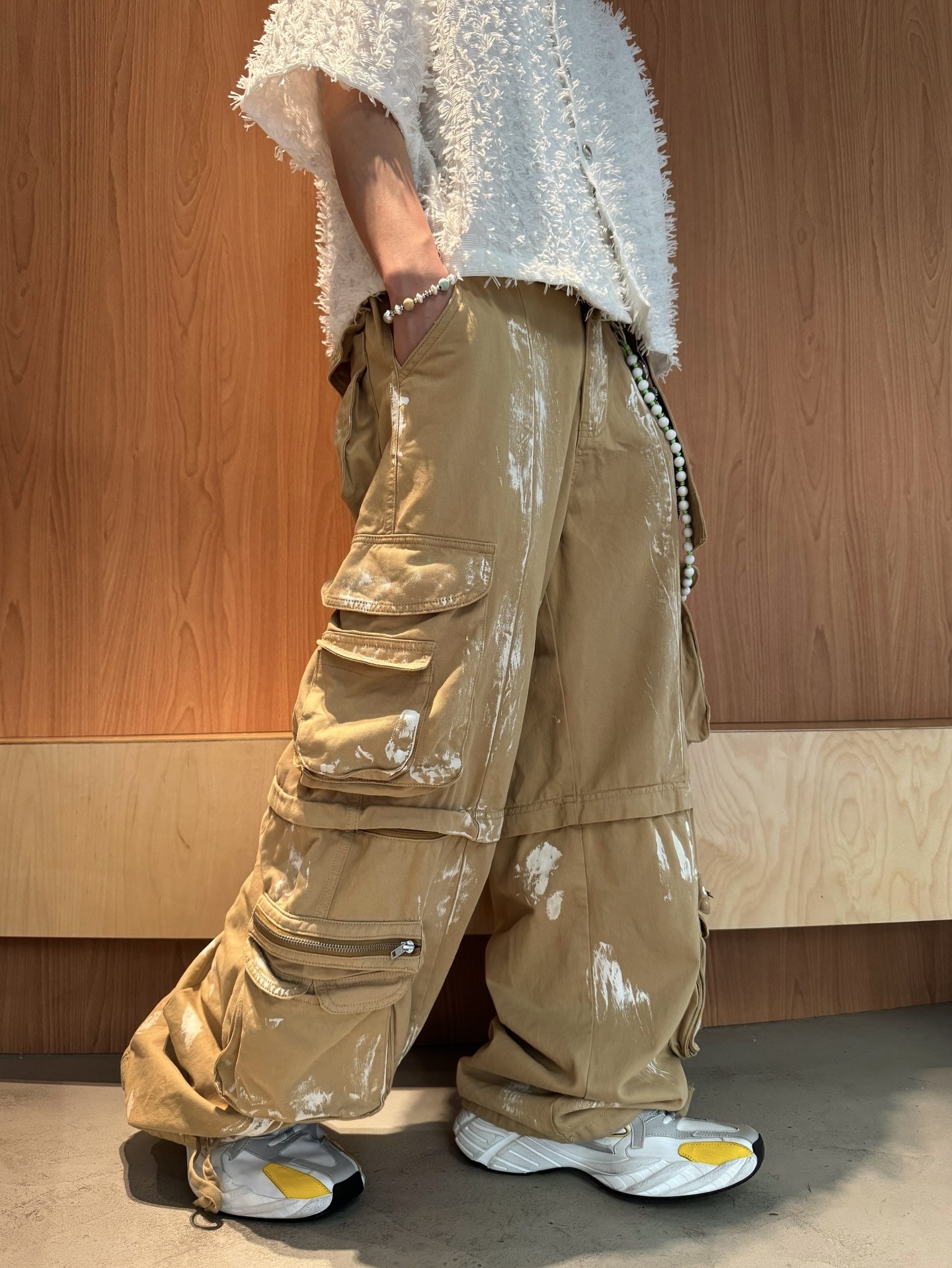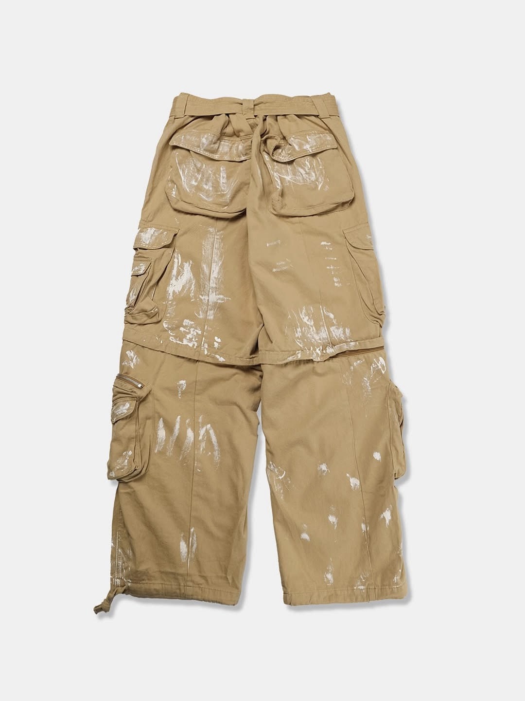 韓國 潑漆 設計感 腰帶 可拆式 重磅 大口袋 拉鍊 工作褲 短褲 (本季推薦必帶)