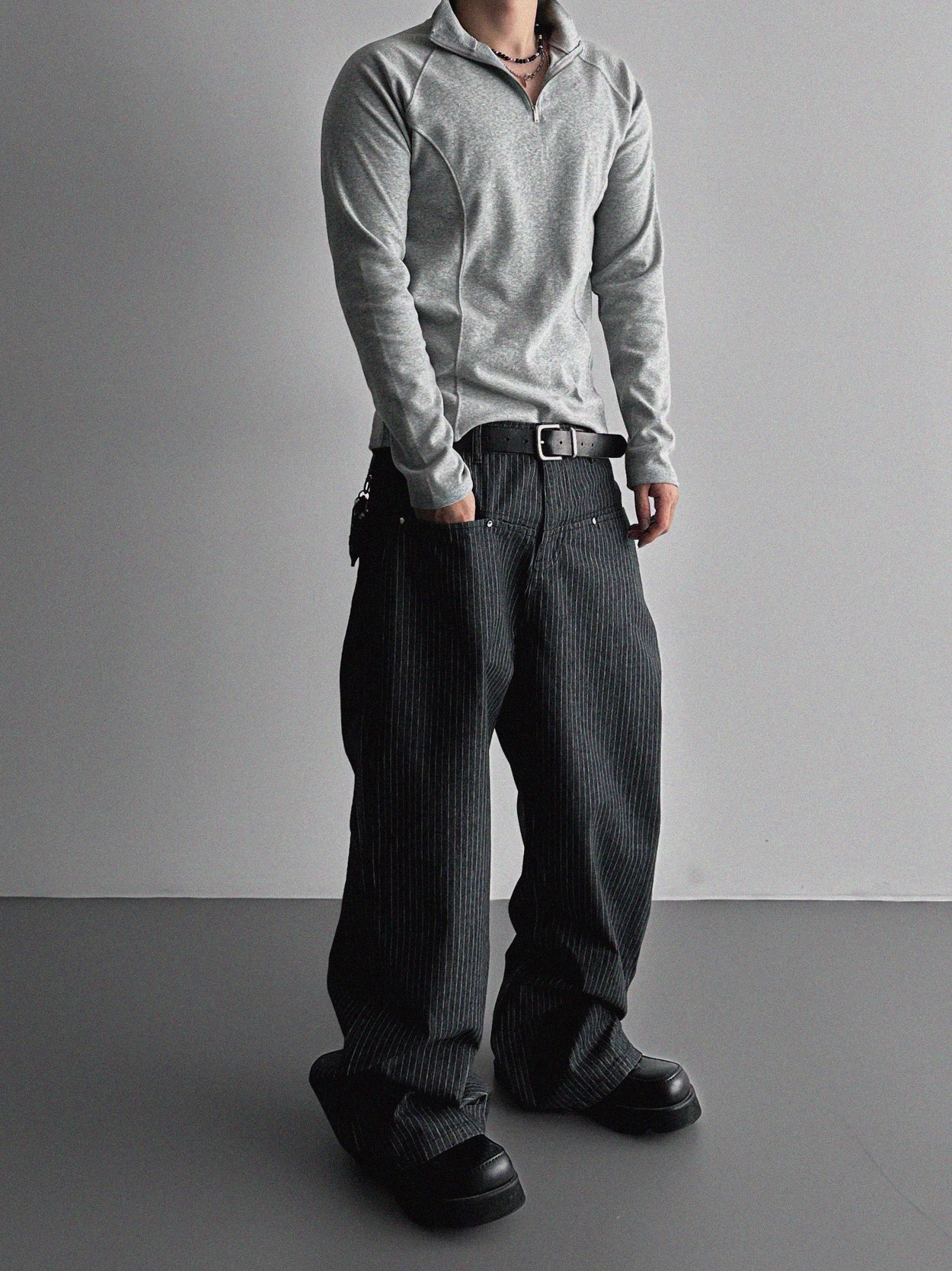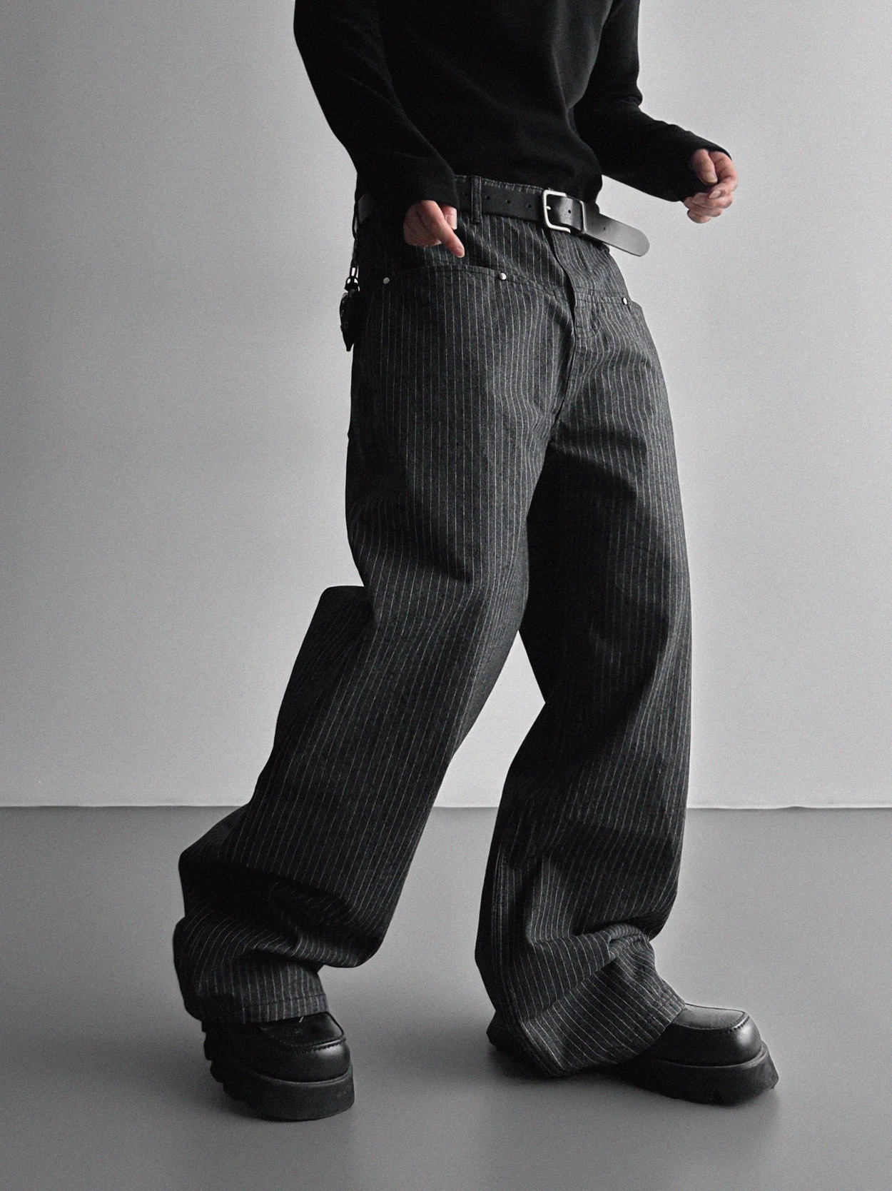 韓國 成熟感 魅力 直條紋 立體 質感 重磅 長褲
