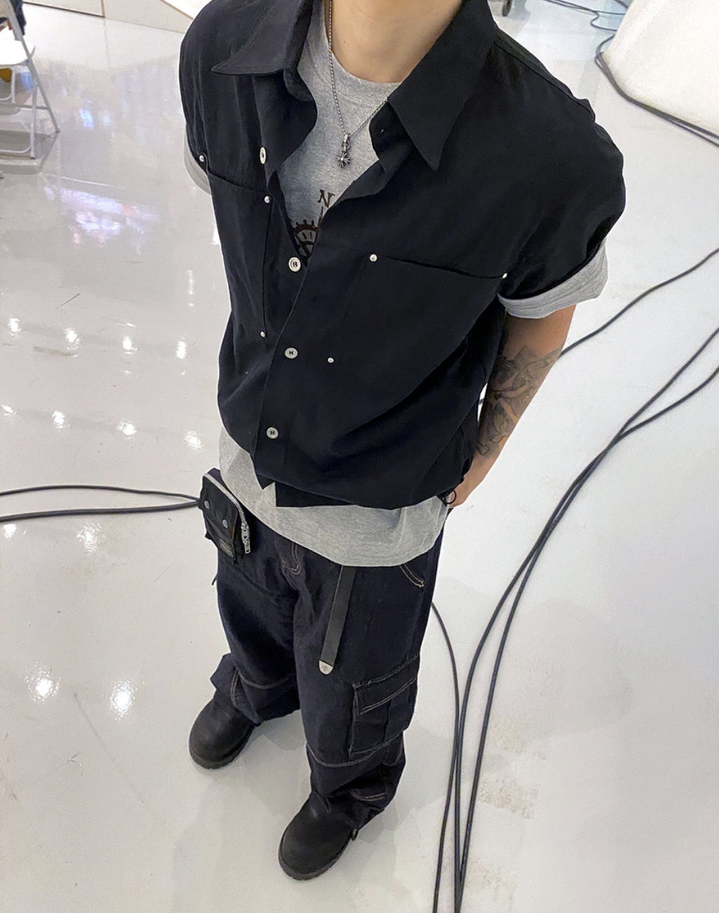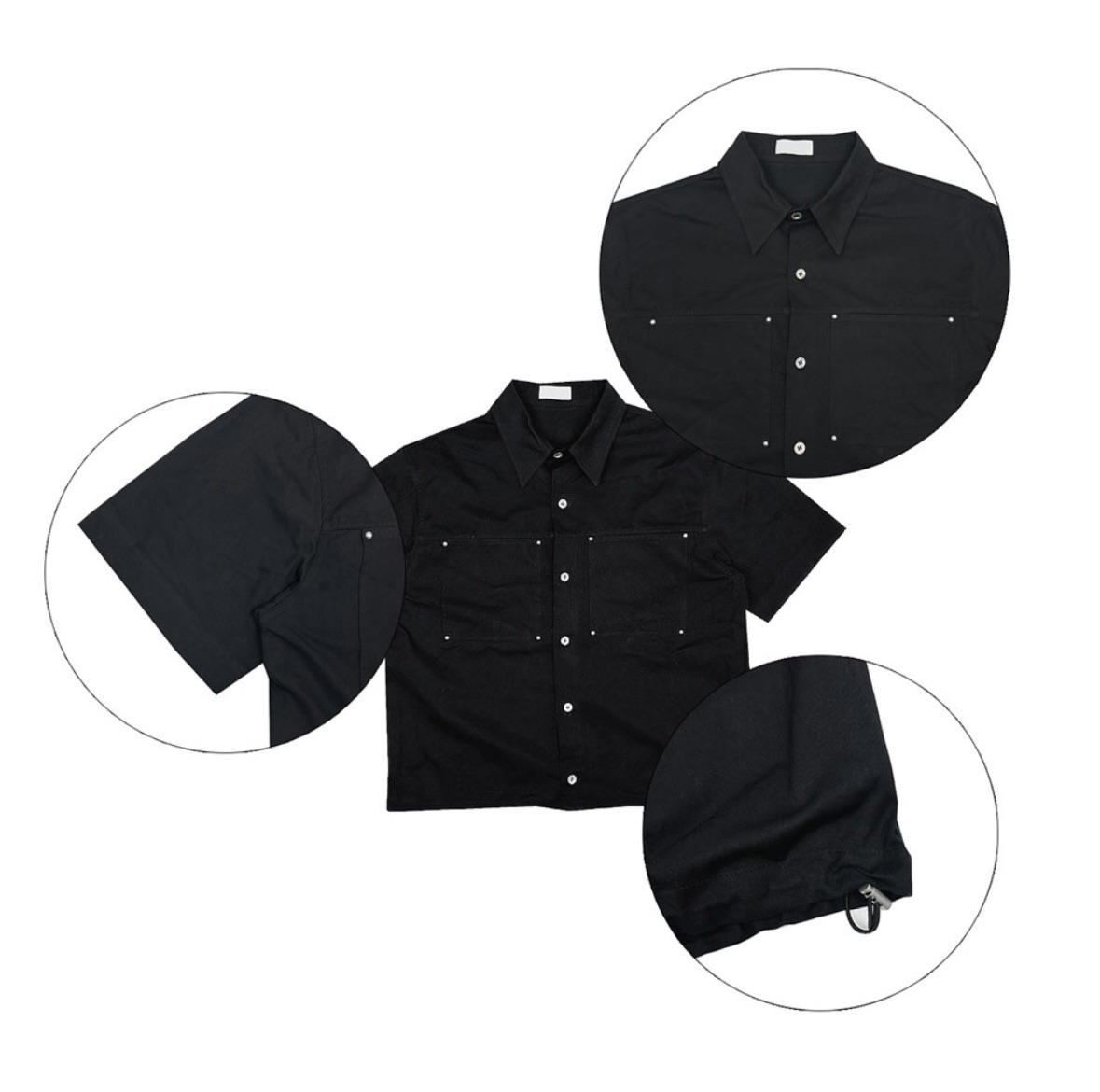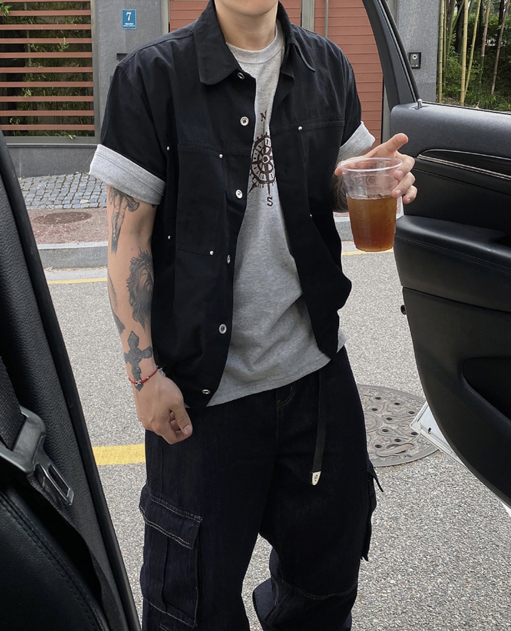 HOLY IN CODE BOXY 鉚釘 短版 襯衫式 鈕扣 短袖外套 (2color)