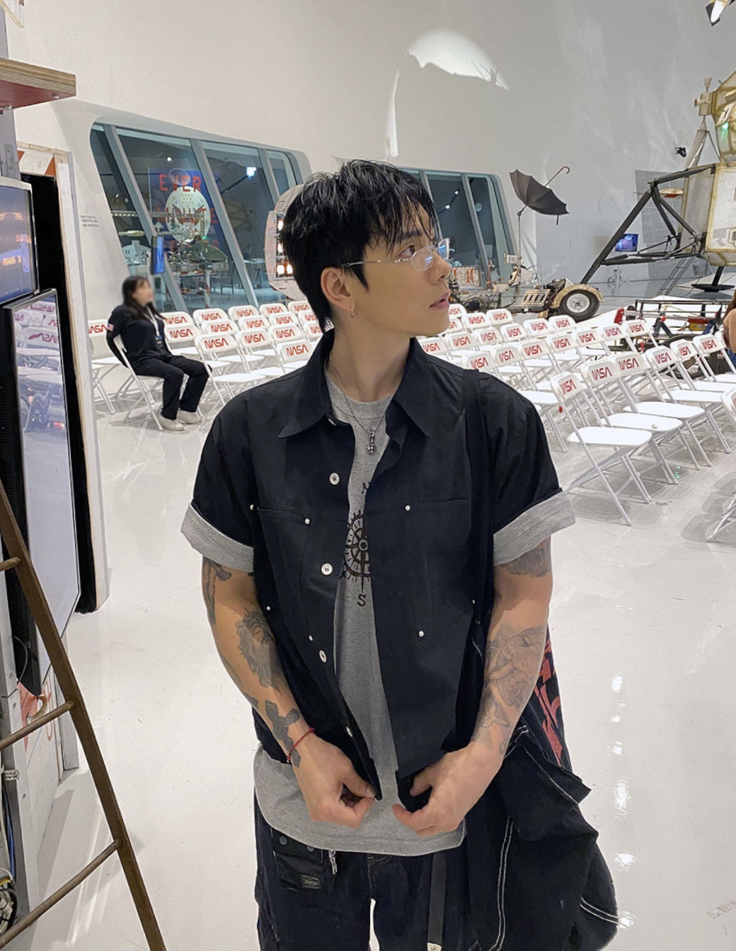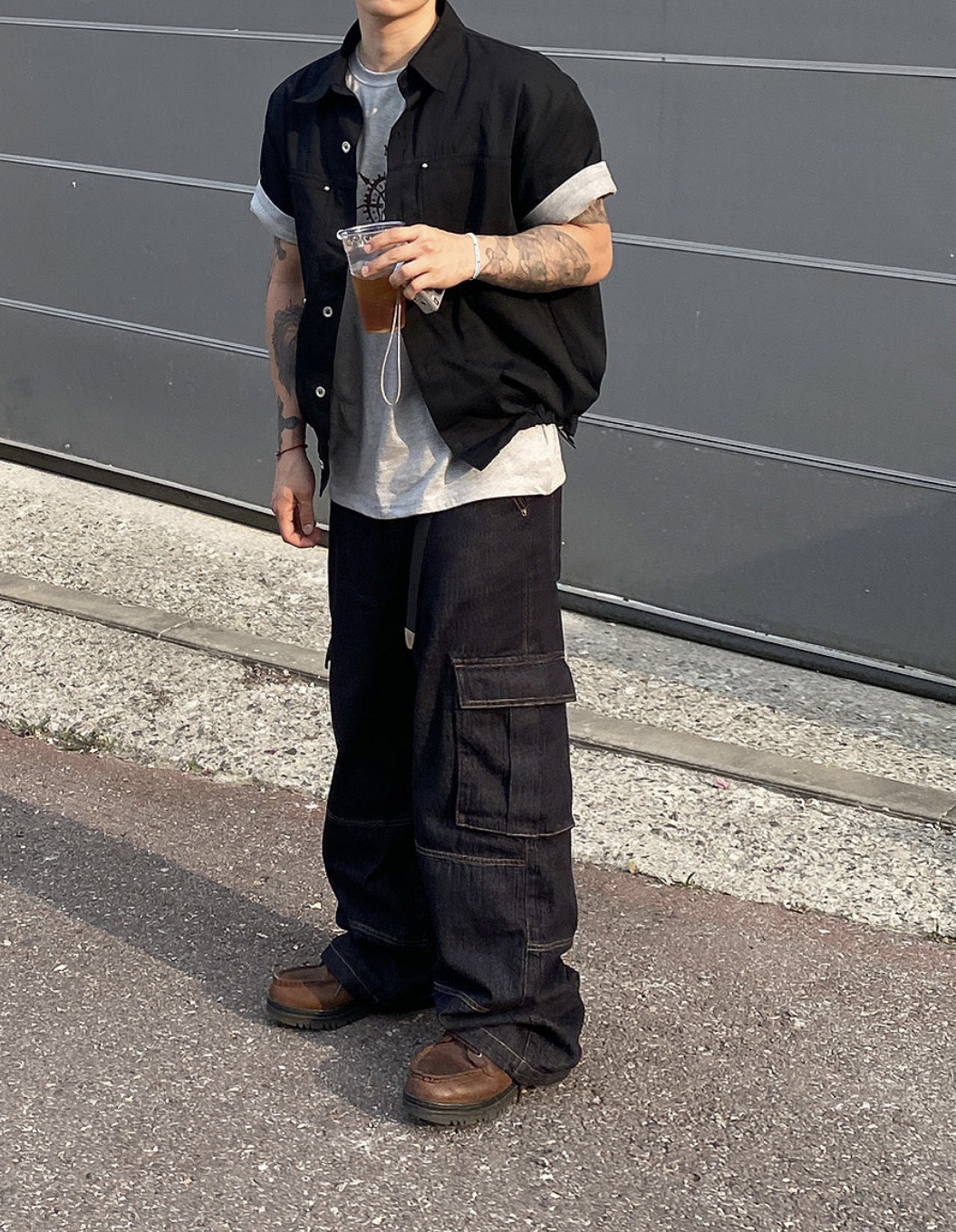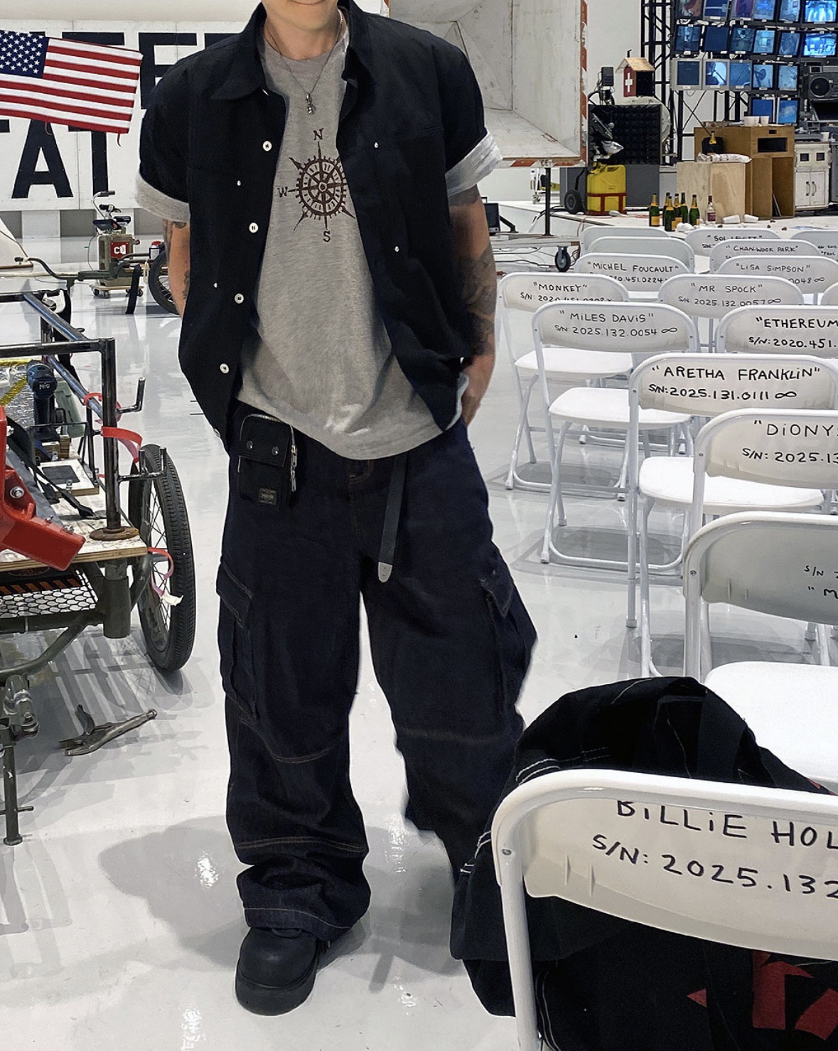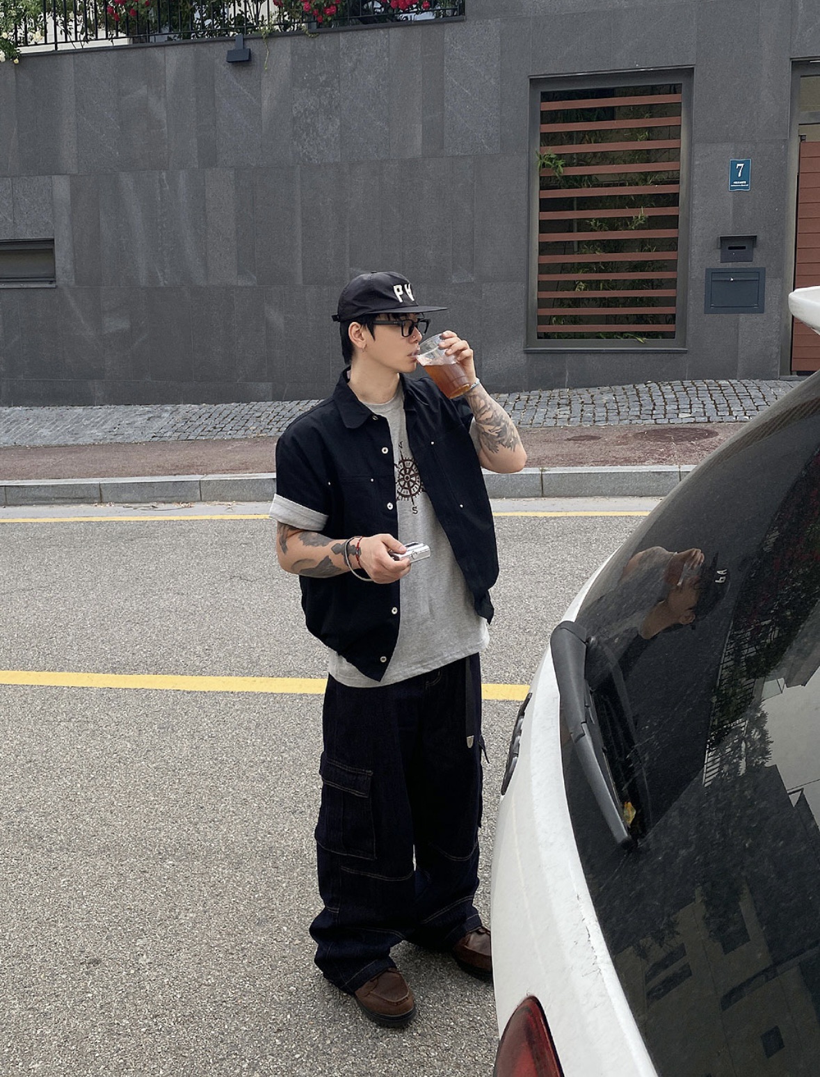 HOLY IN CODE BOXY 鉚釘 短版 襯衫式 鈕扣 短袖外套 (2color)