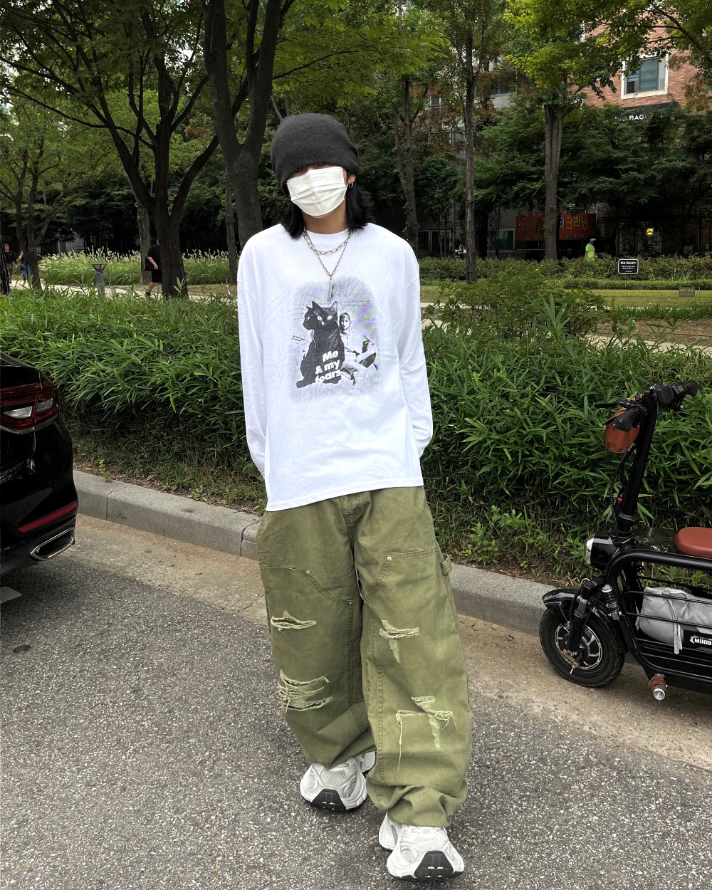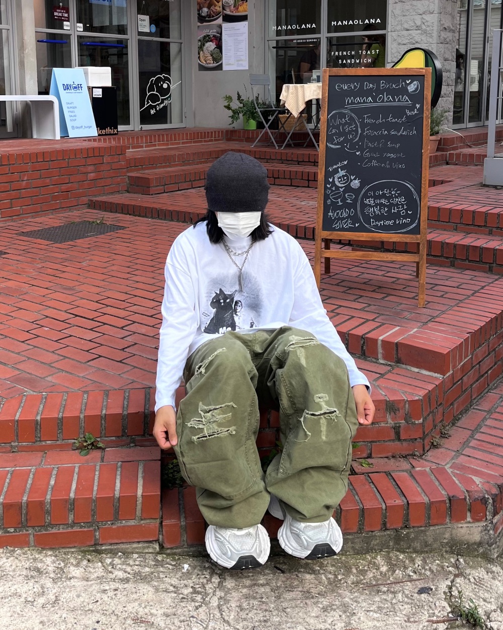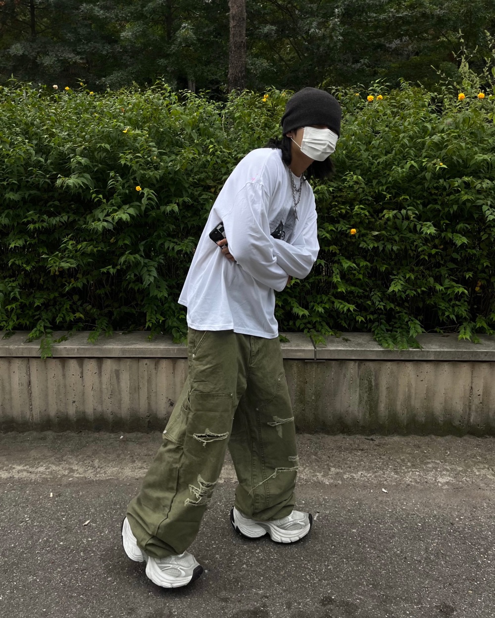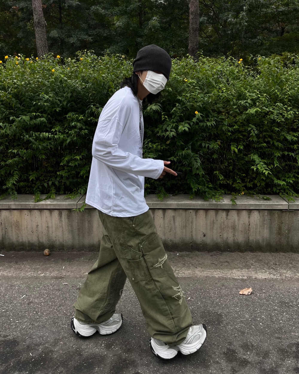 (大推軍綠!) Cause closet 不規則 刀割 破壞 水洗 寬版 工作褲 (3color)
