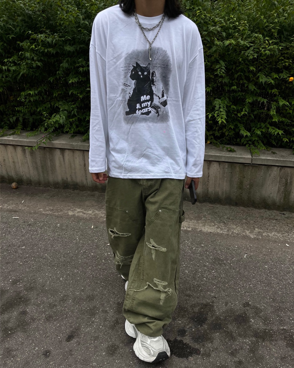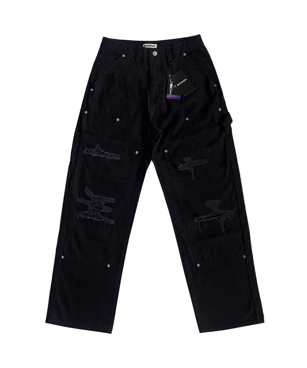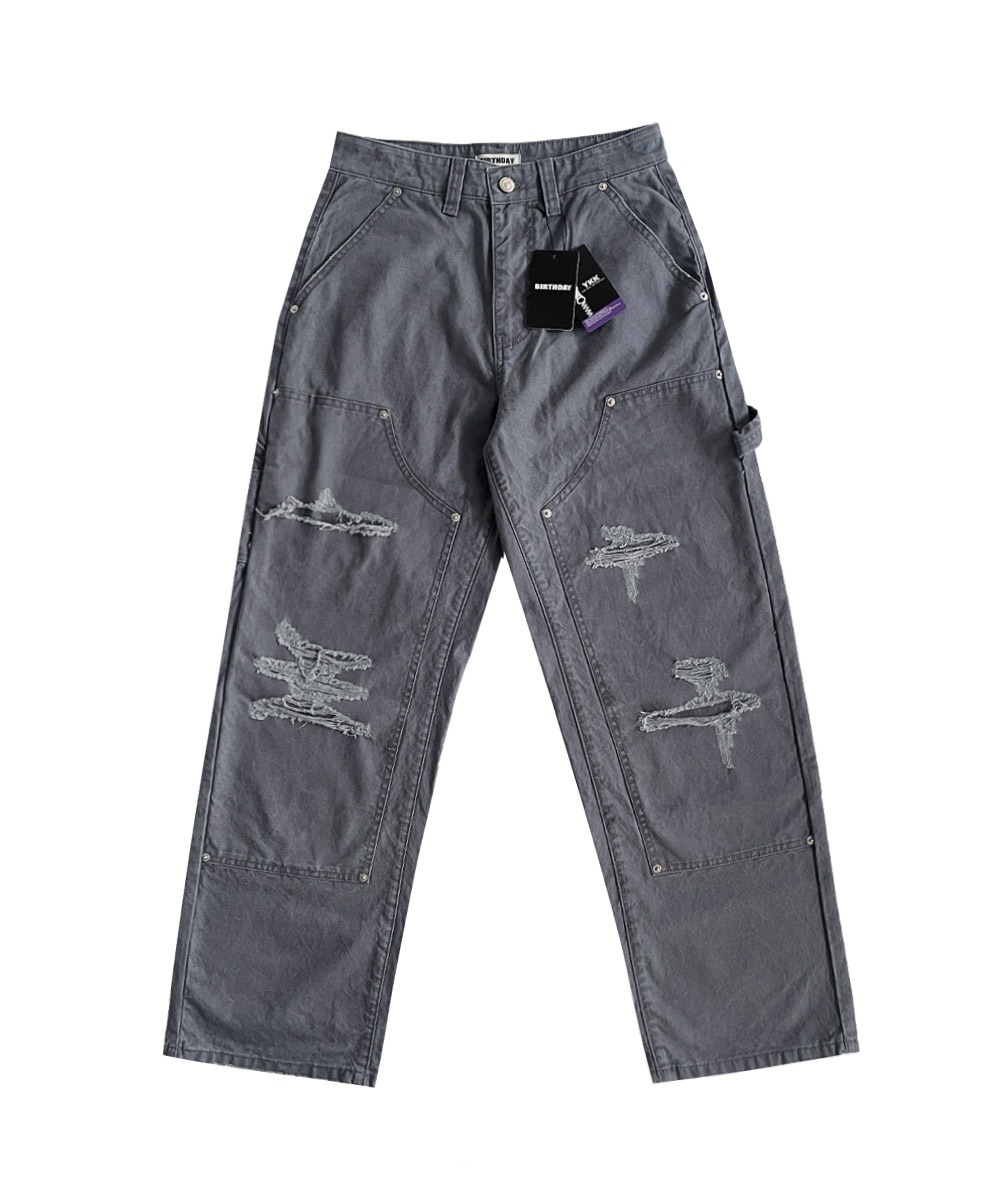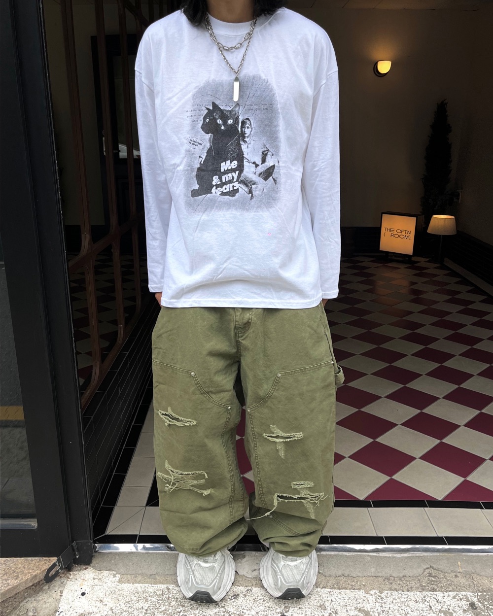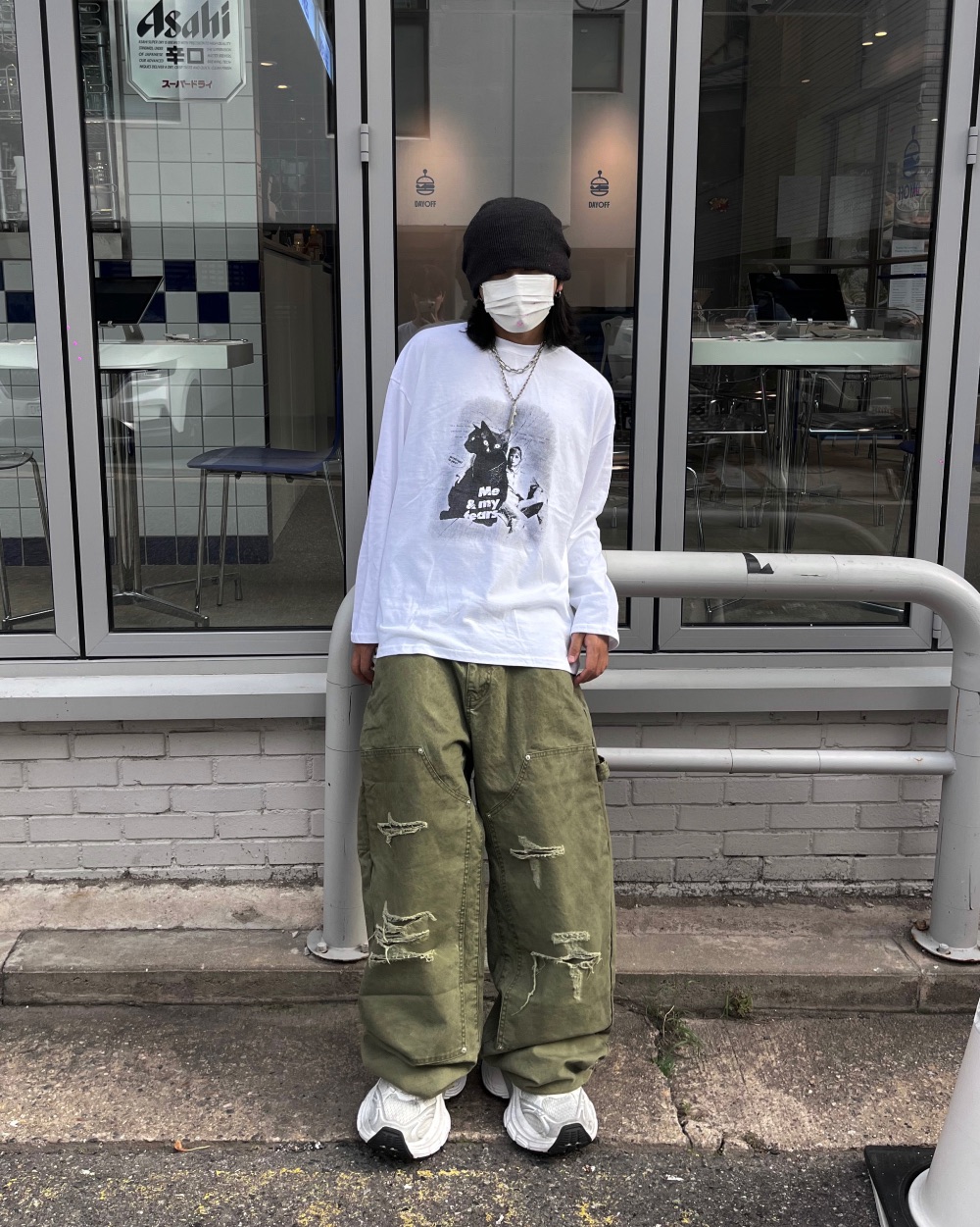 (大推軍綠!) Cause closet 不規則 刀割 破壞 水洗 寬版 工作褲 (3color)