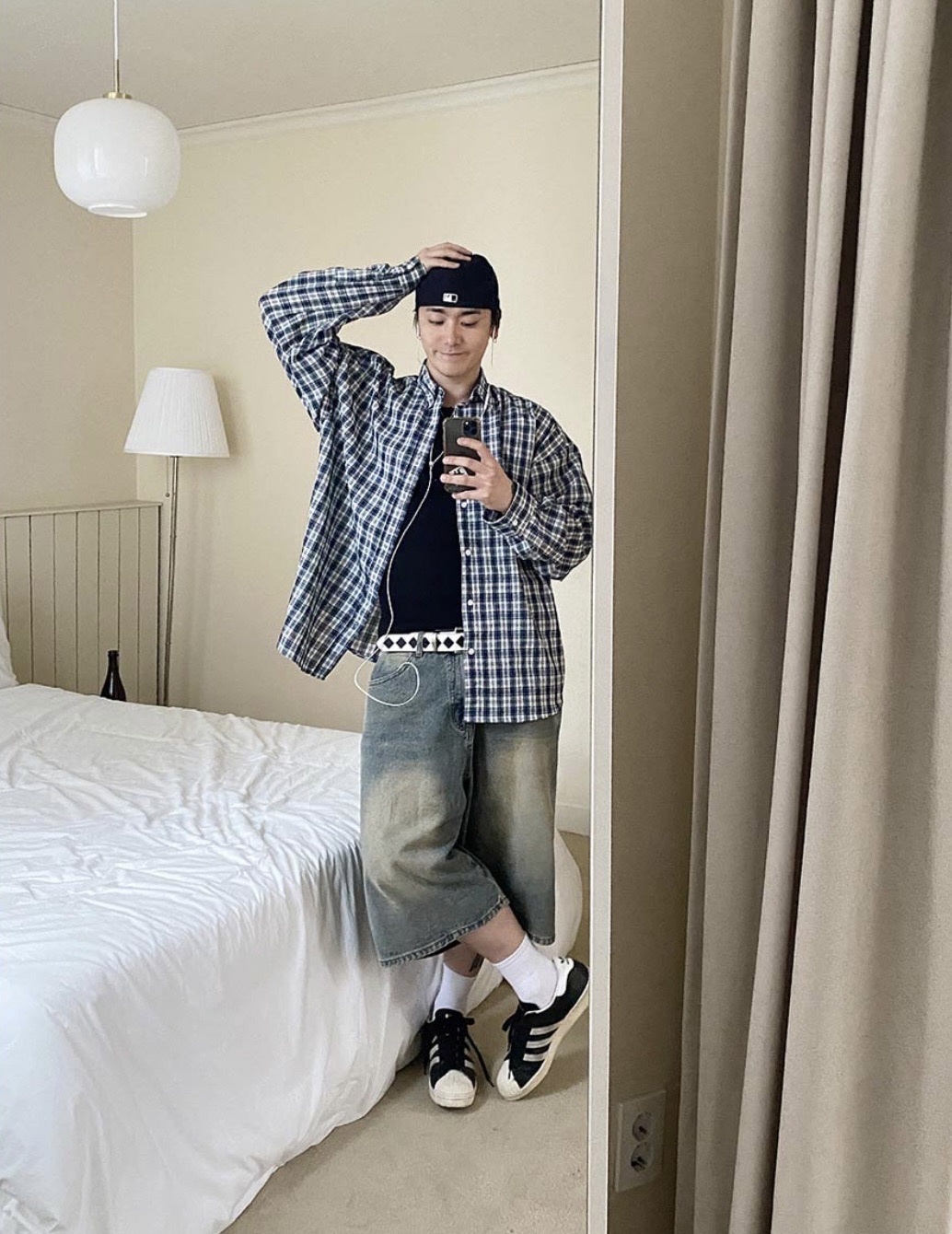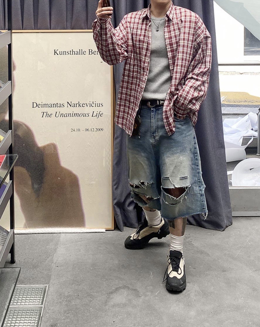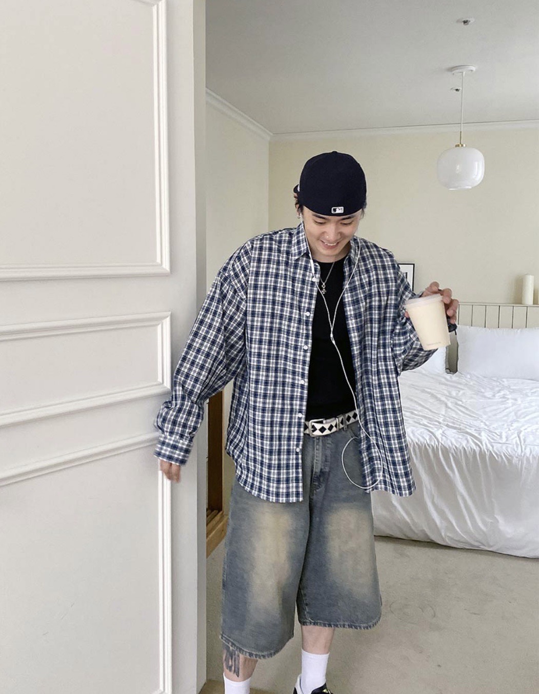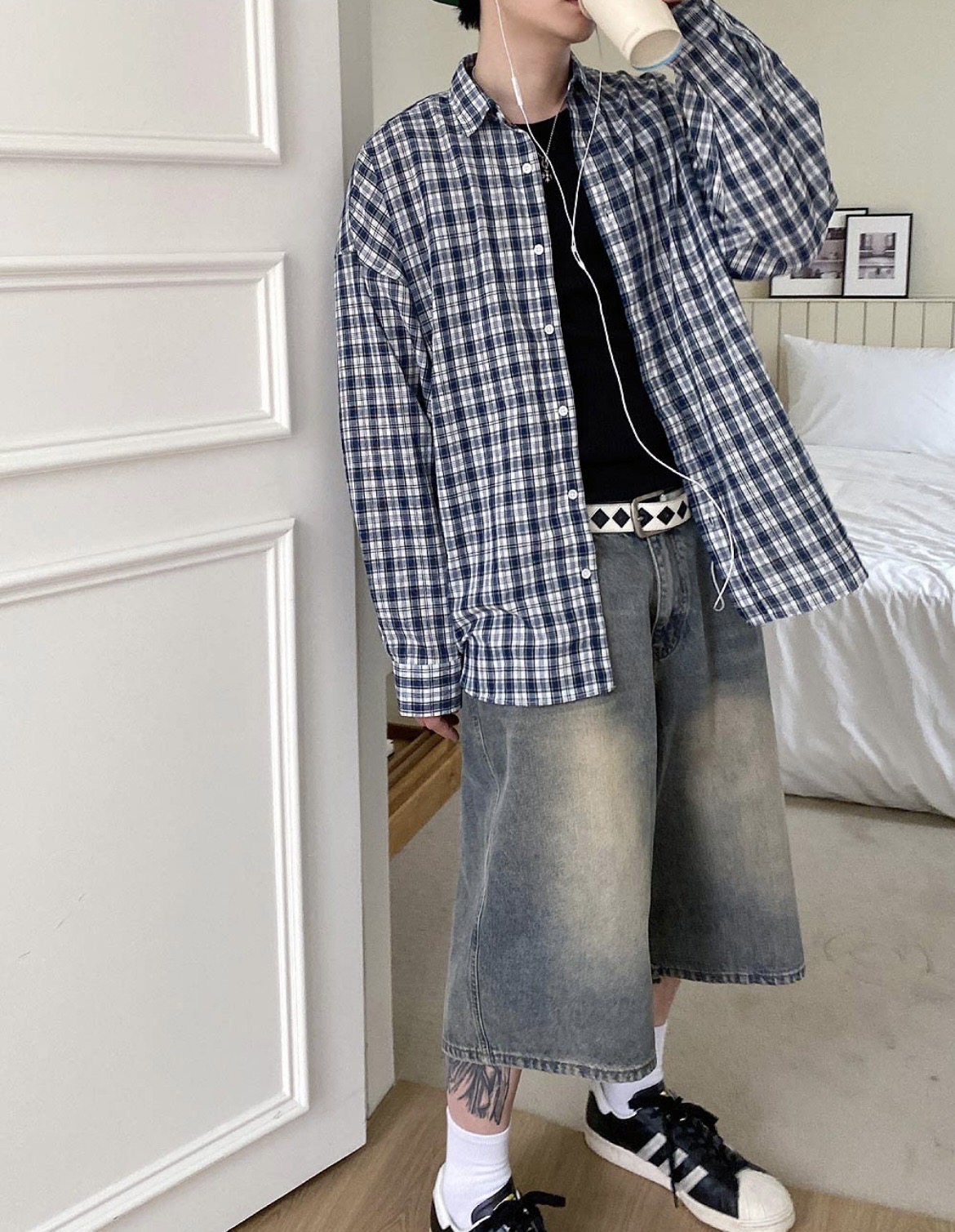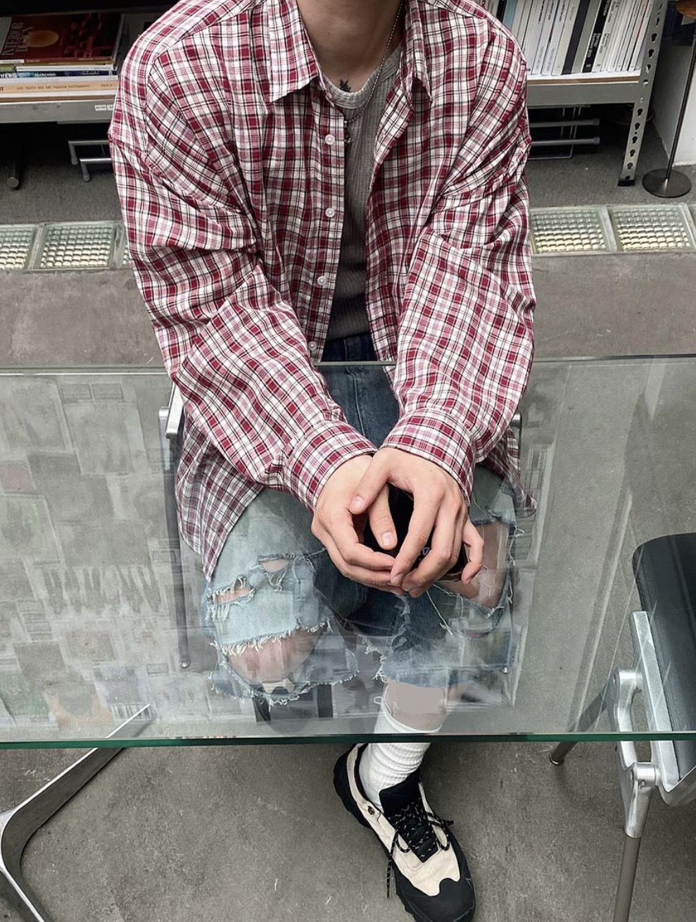 HOLY IN CODE 美式 街頭感 格紋 薄長袖襯衫 (2color)
