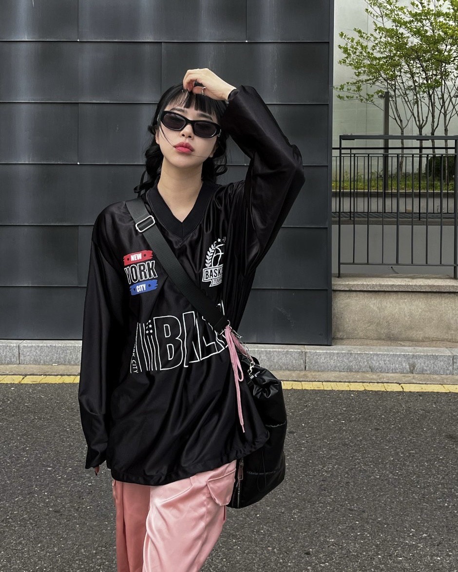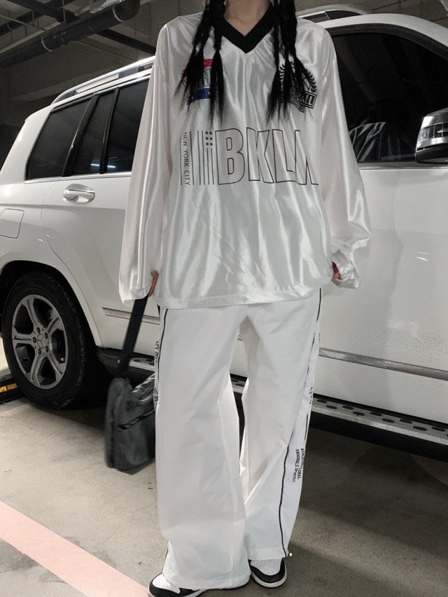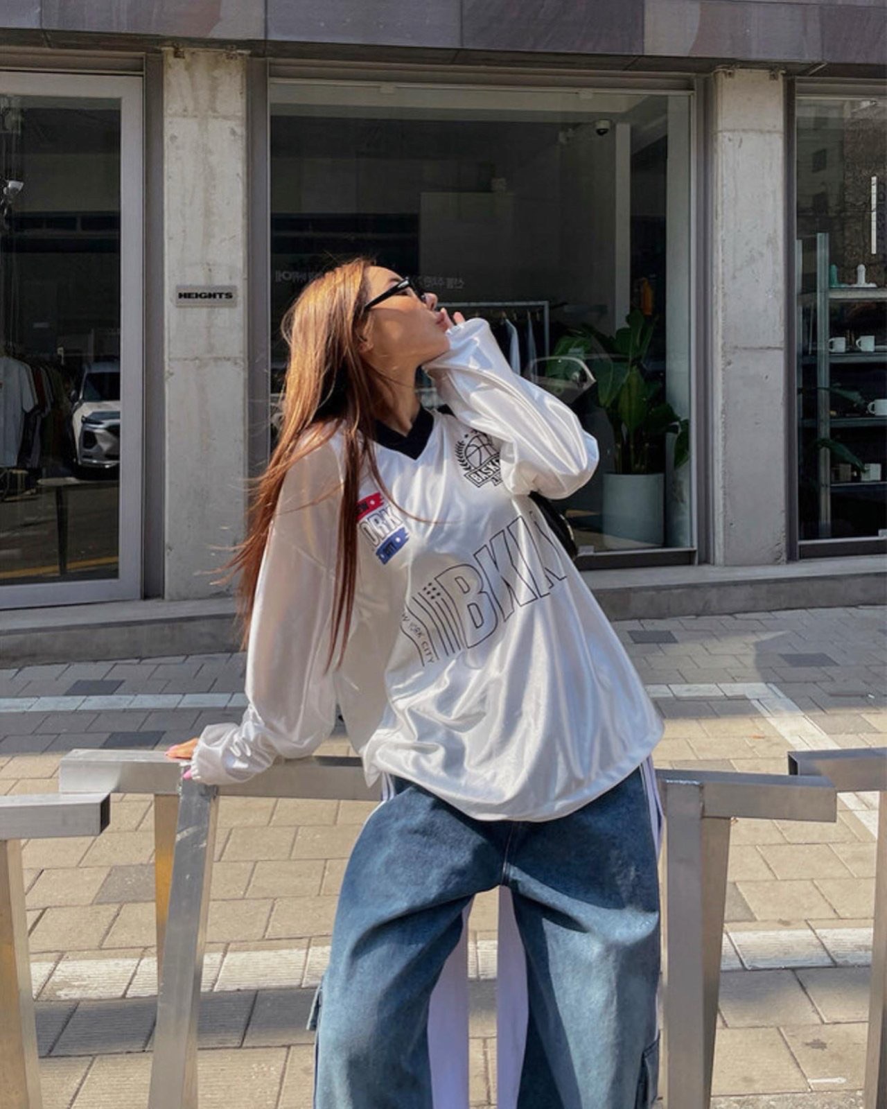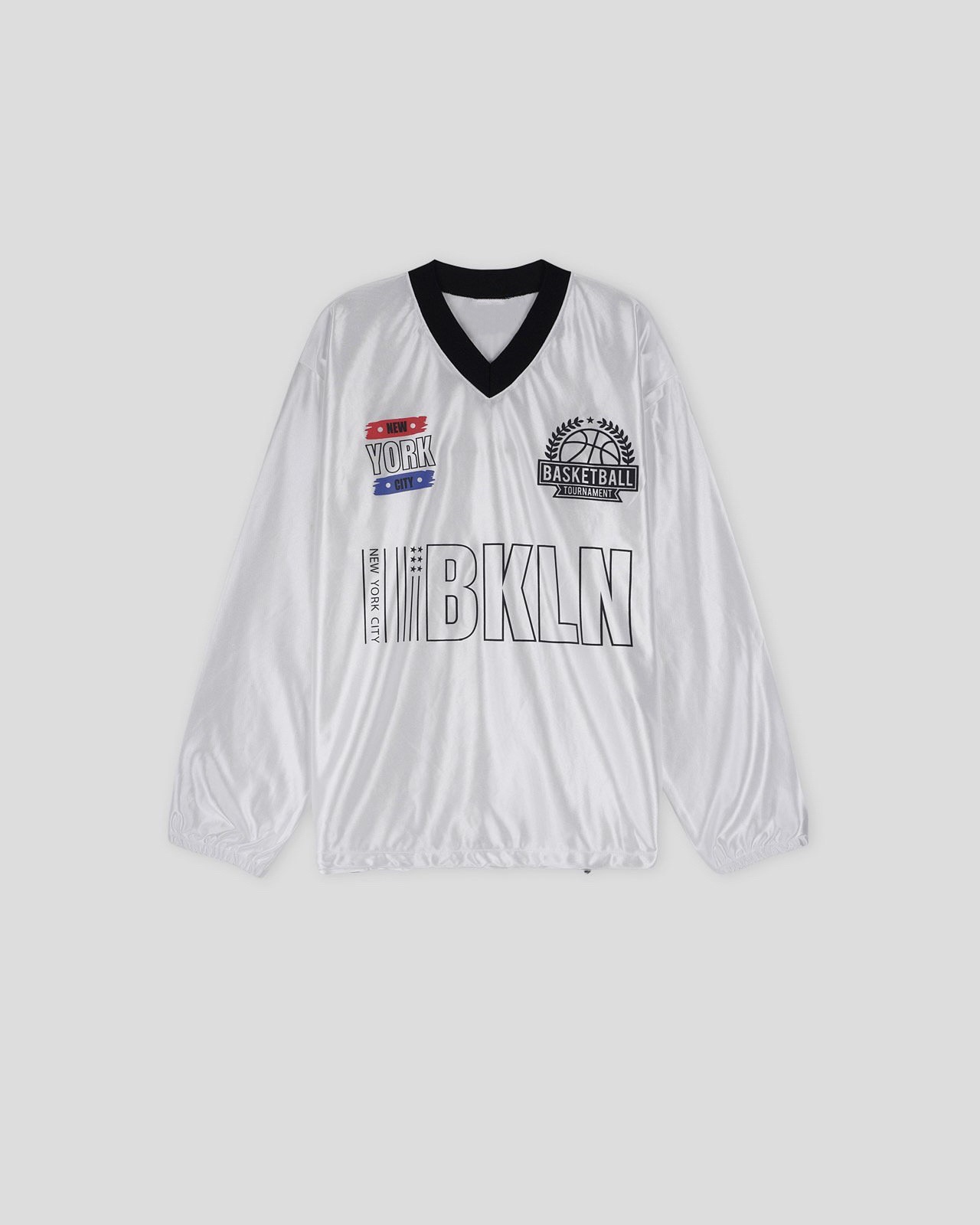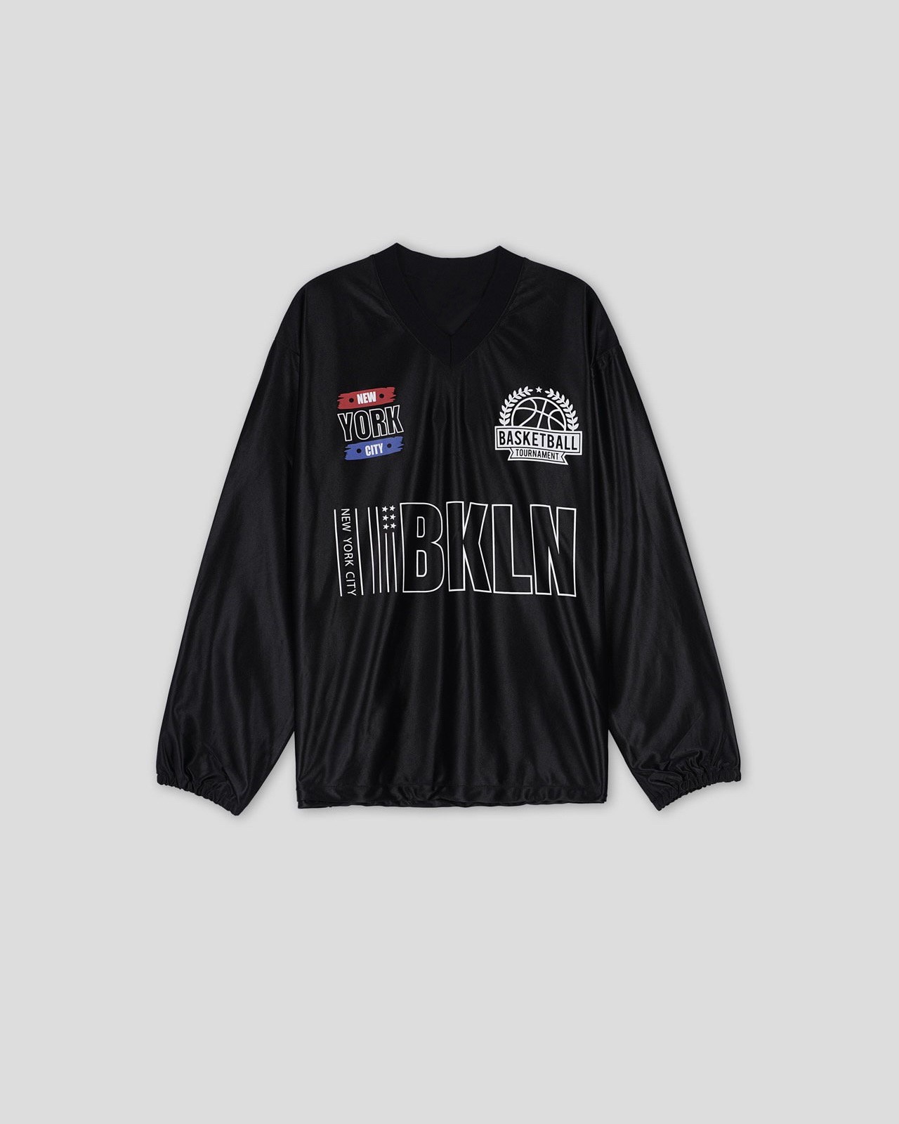 韓國 NEW YORK CITY BKLN 布魯克林 緞面 絲綢 V領 長袖 球衣 (3color)