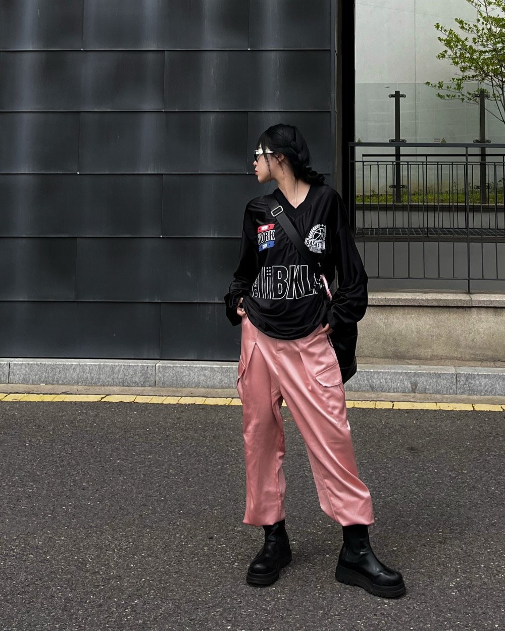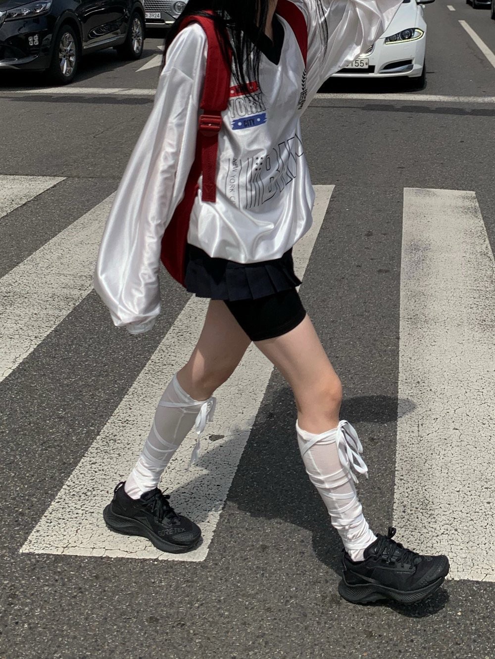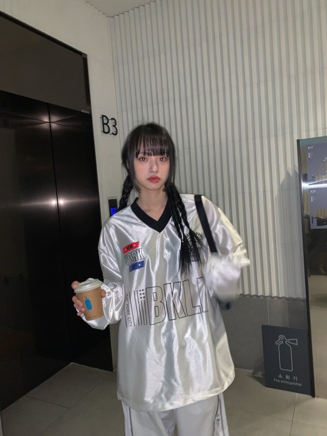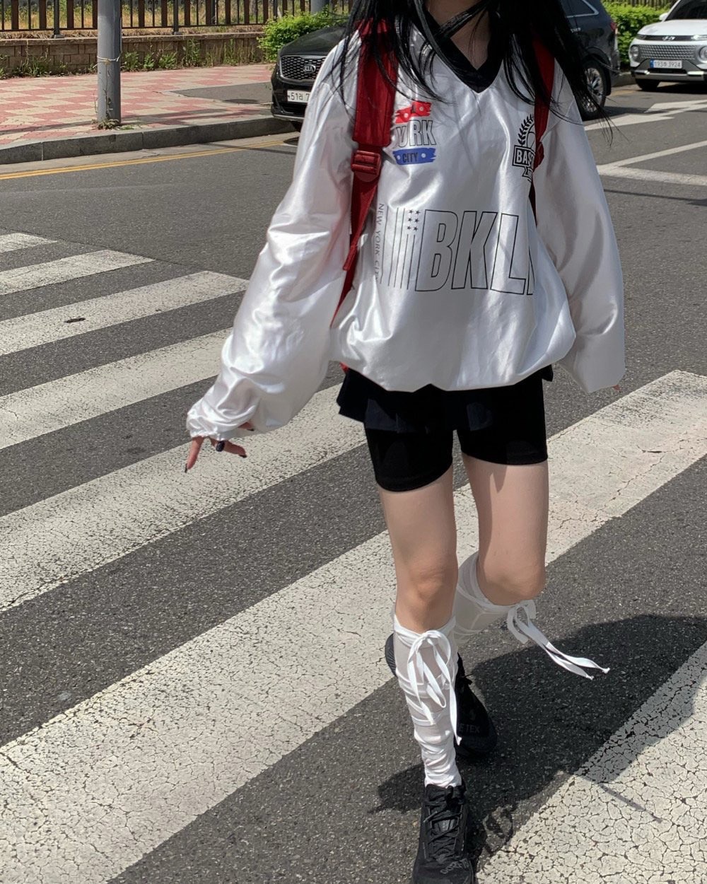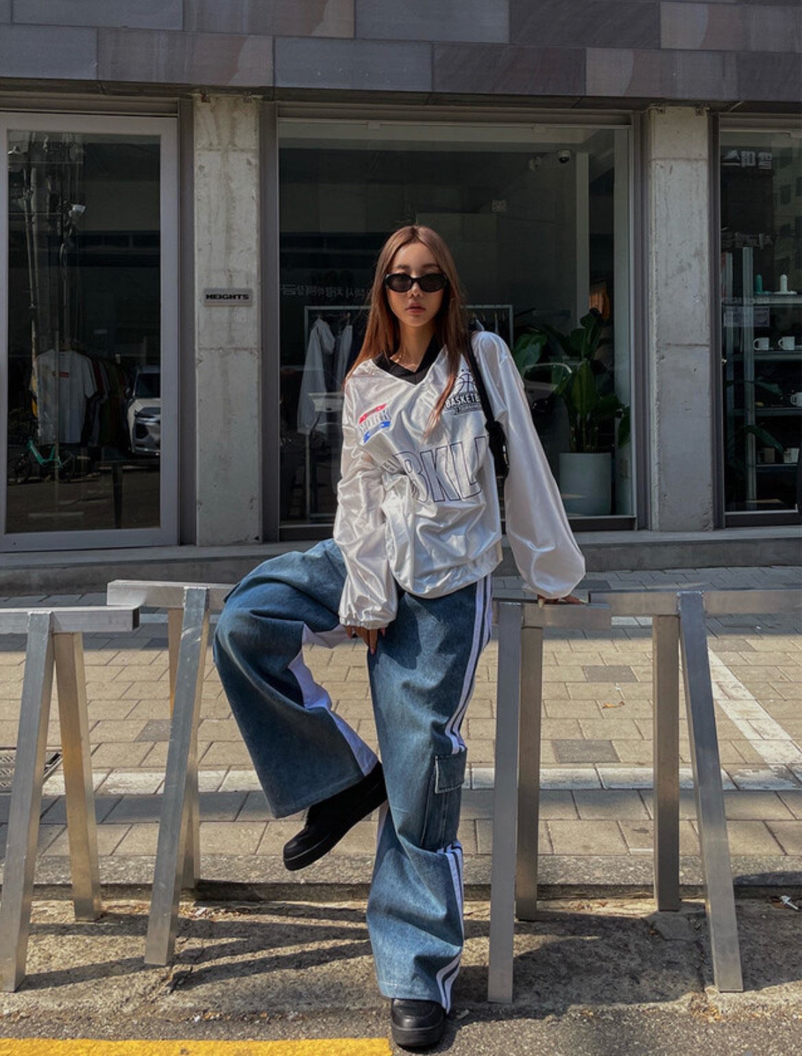 韓國 NEW YORK CITY BKLN 布魯克林 緞面 絲綢 V領 長袖 球衣 (3color)