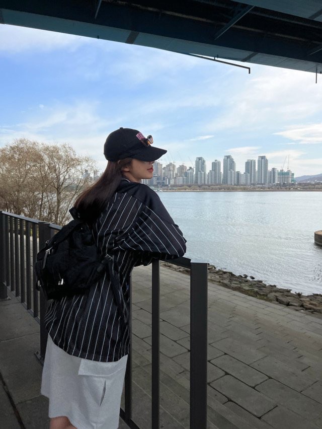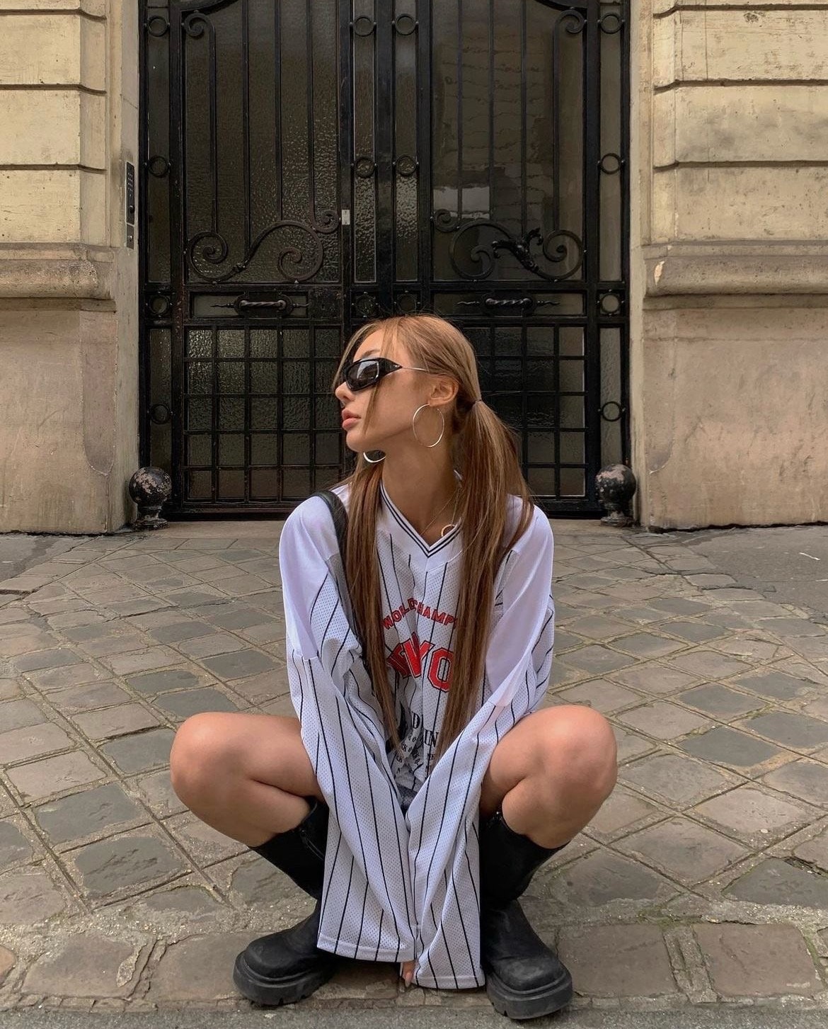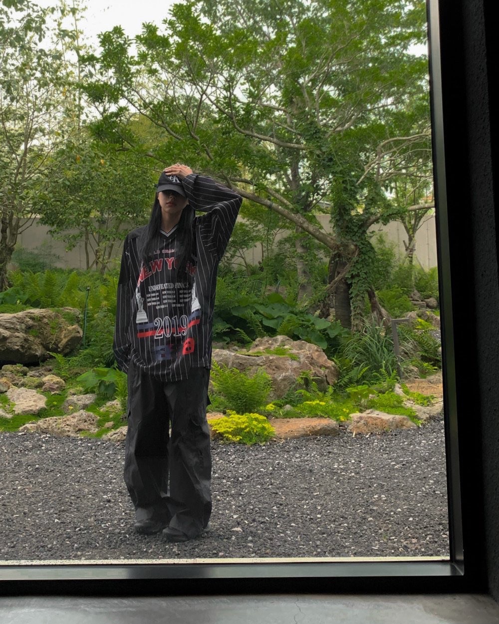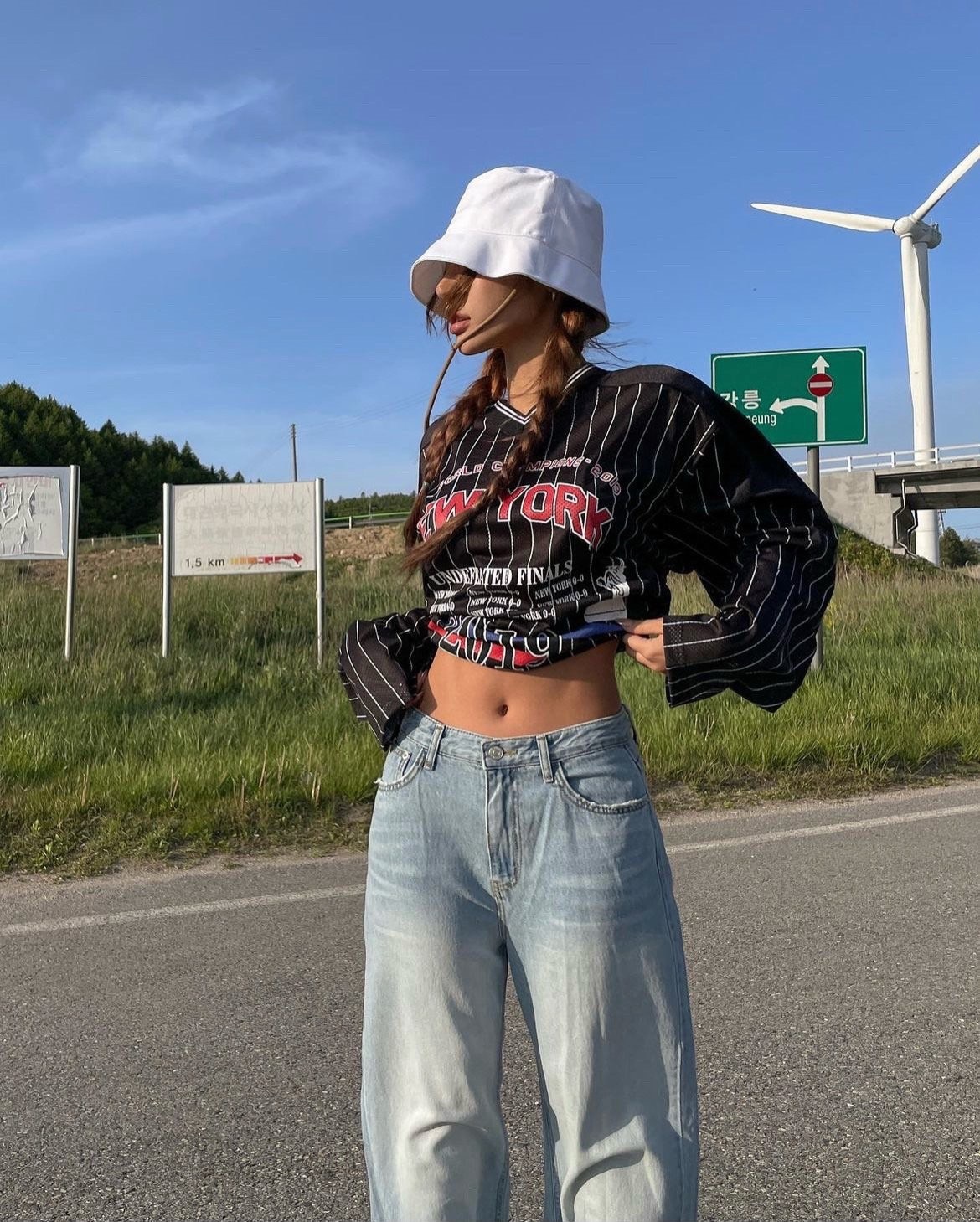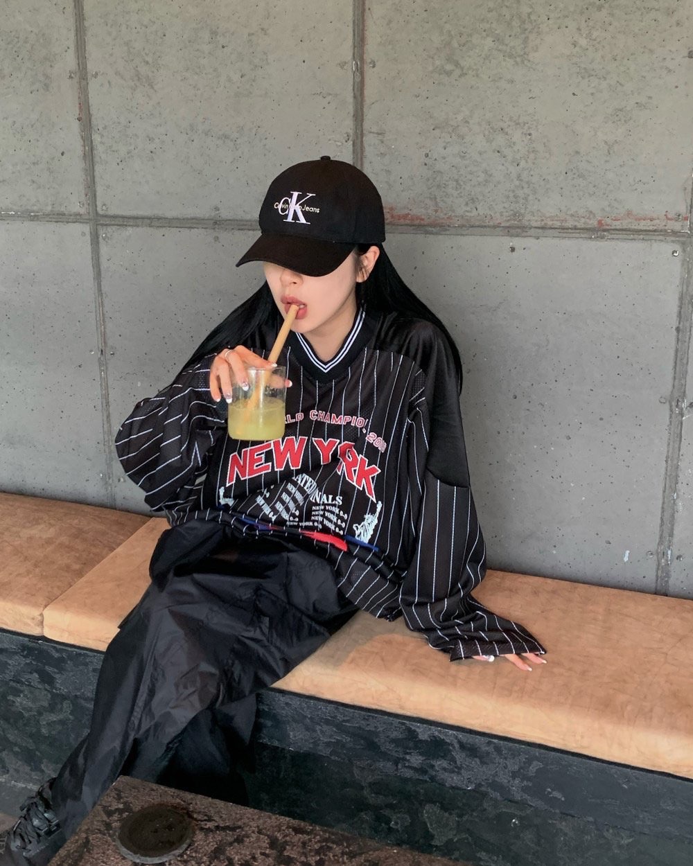 韓國 NEW YORK 2019 自由女神 直條紋 拼接 網眼 長袖 球衣 (2color)