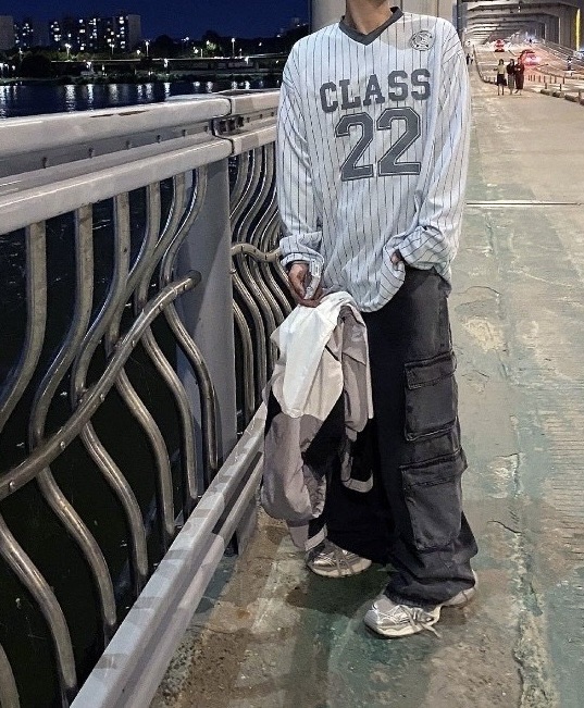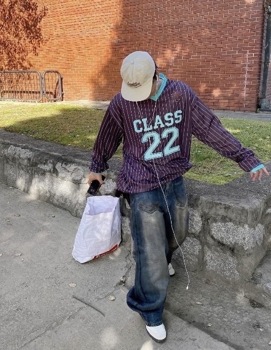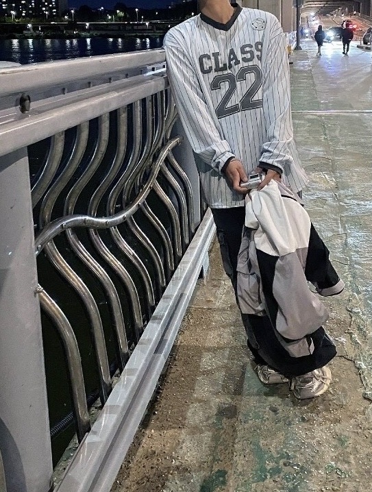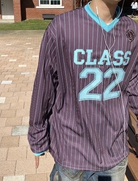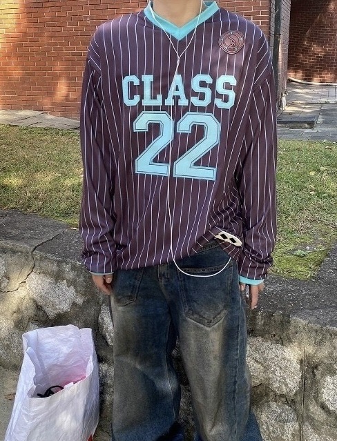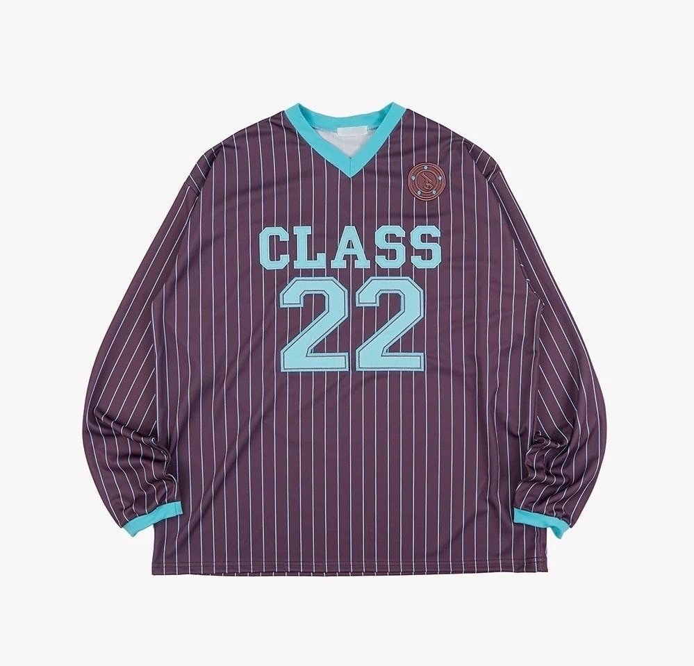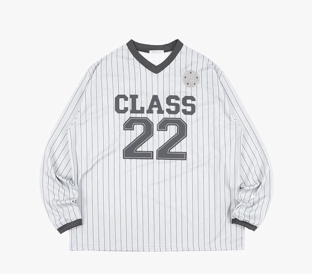HOLY IN CODE CLASS 22 拼色 直條紋 刺繡 貼布 V領 長袖 球衣 (2color)