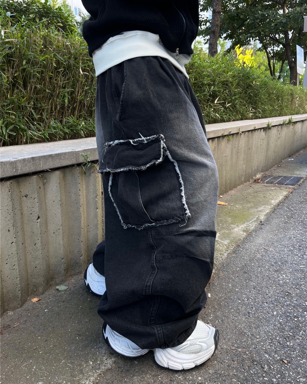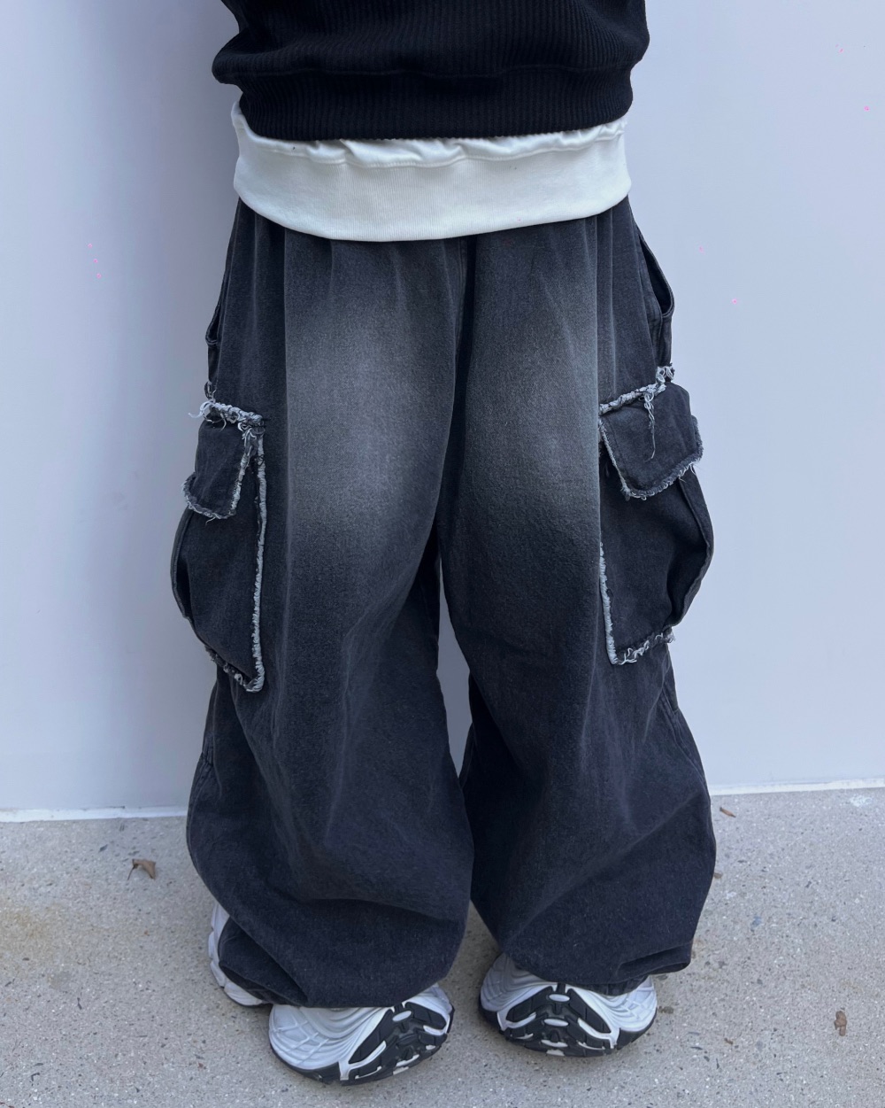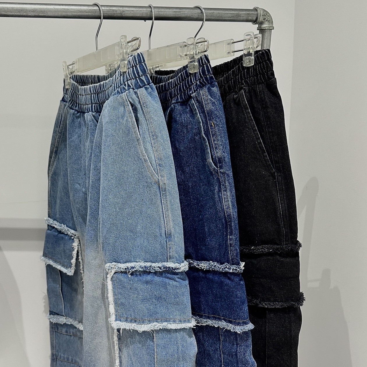 Cause closet 刷白 毛邊 破壞 大口袋 重磅 水洗 寬版 牛仔褲 (3color)
