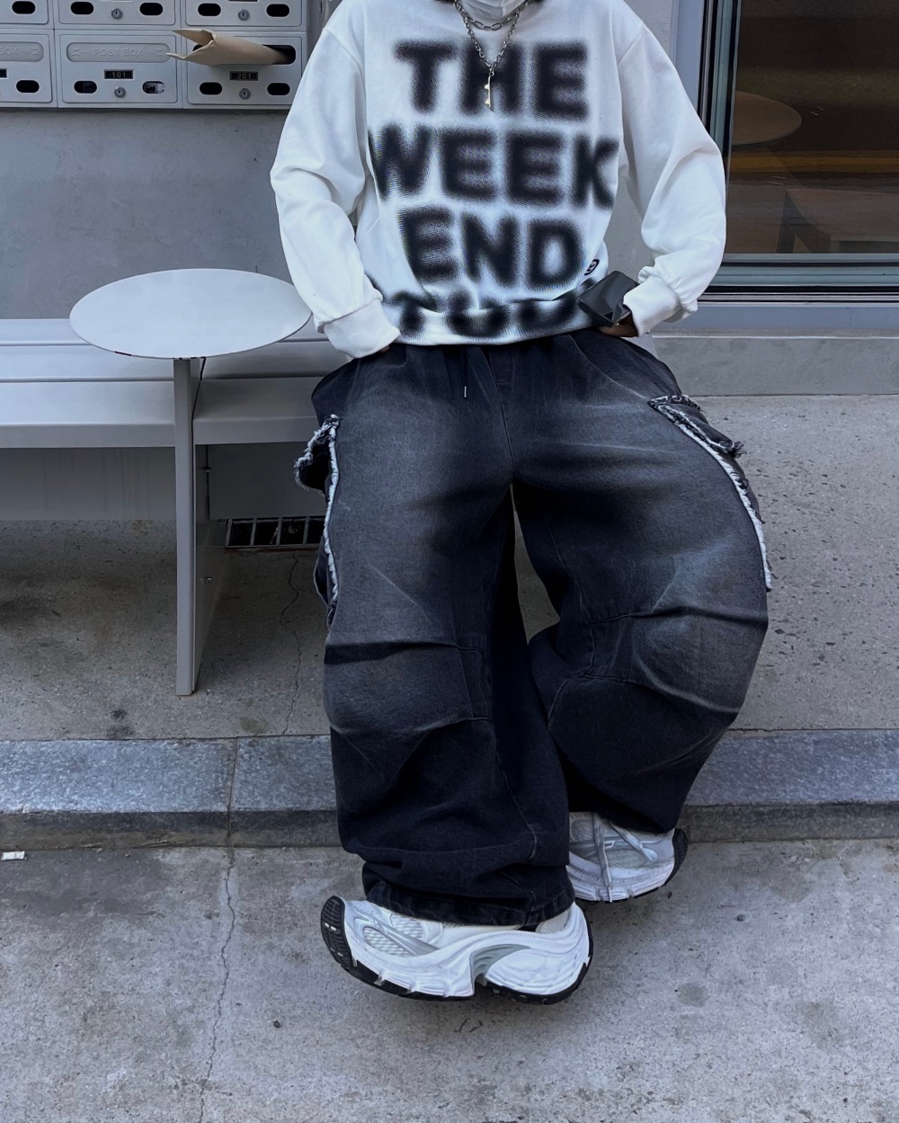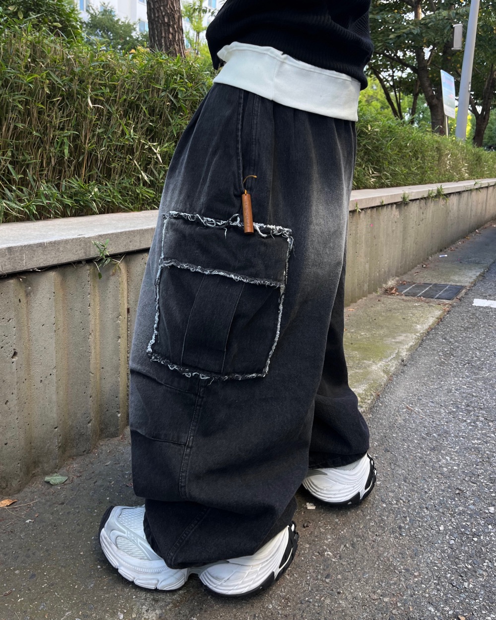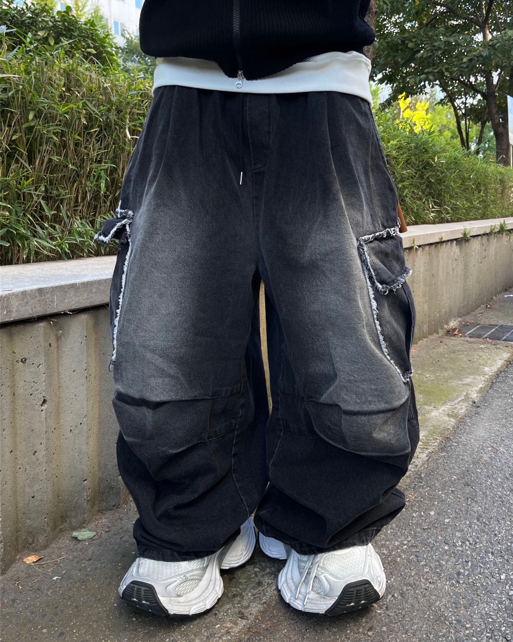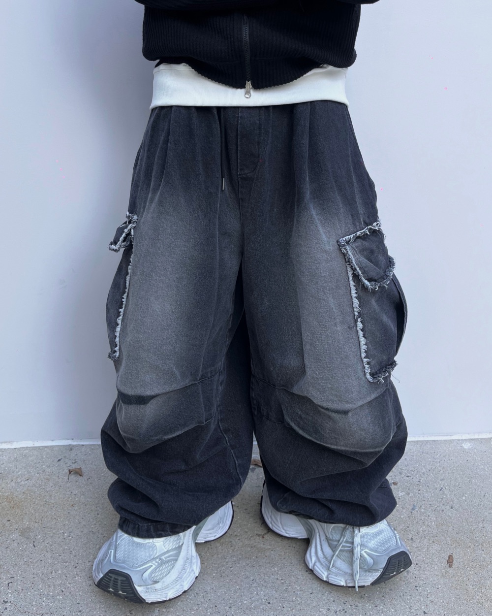 Cause closet 刷白 毛邊 破壞 大口袋 重磅 水洗 寬版 牛仔褲 (3color)