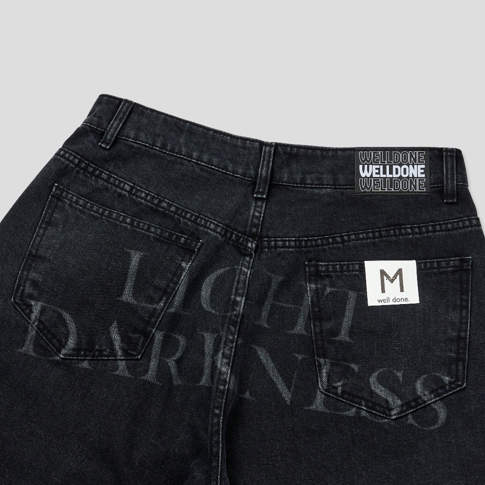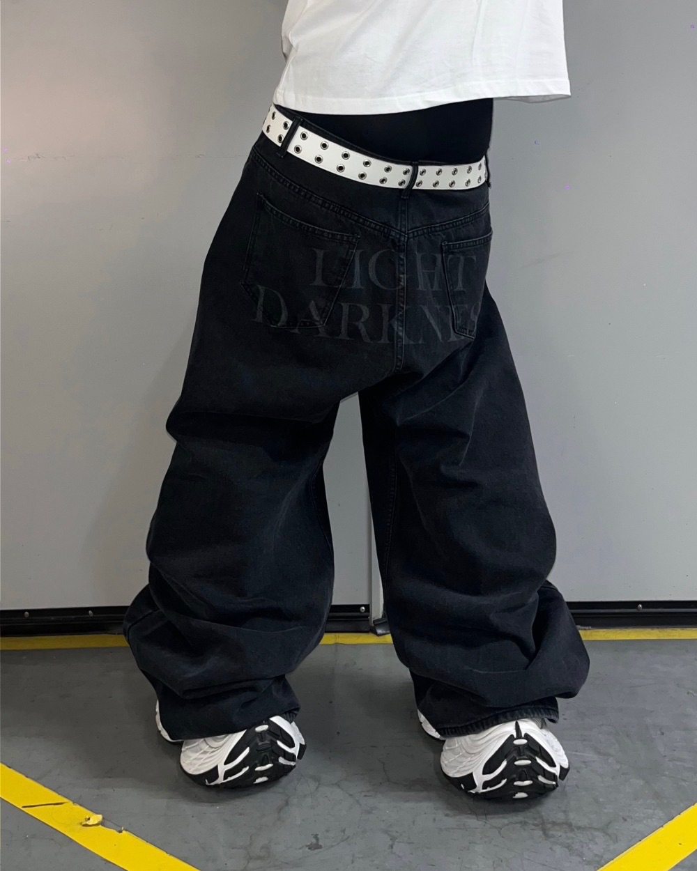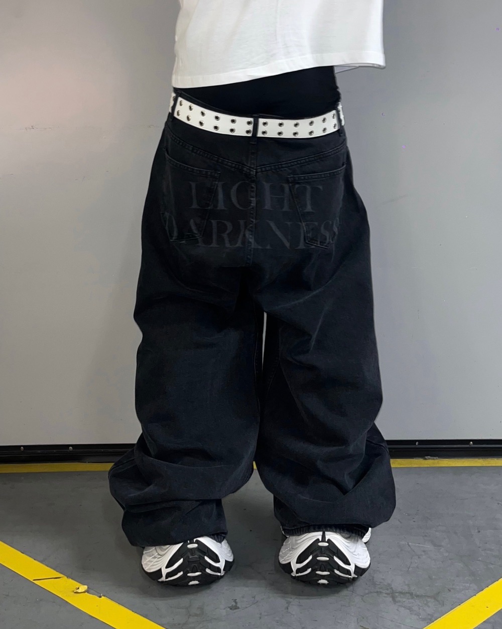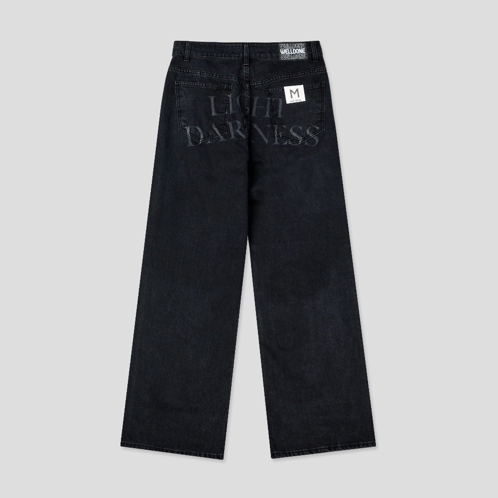 Cause closet LIGHT DARKLESS 刷印 水洗 寬版 黑牛仔褲