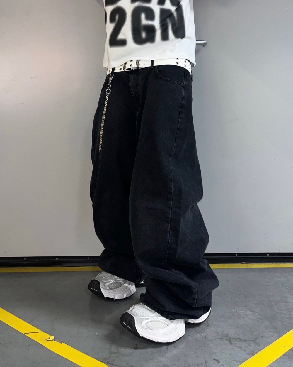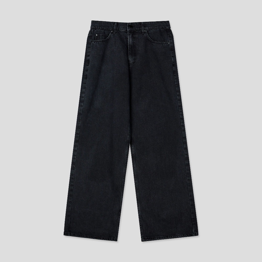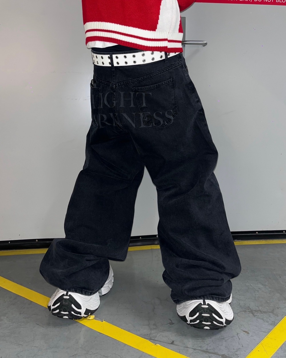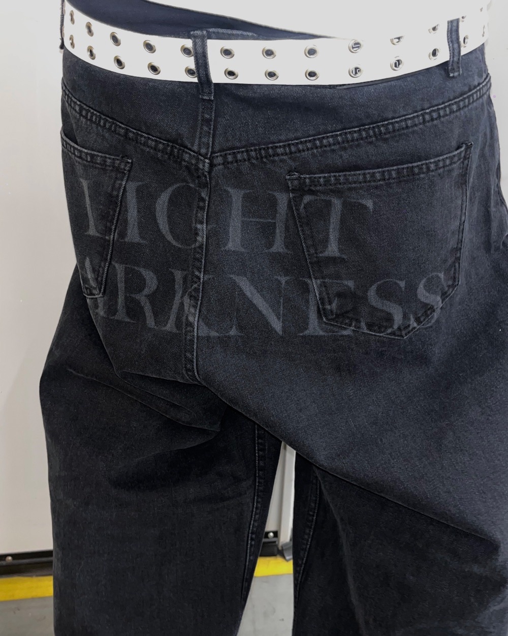 Cause closet LIGHT DARKLESS 刷印 水洗 寬版 黑牛仔褲