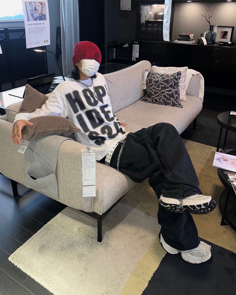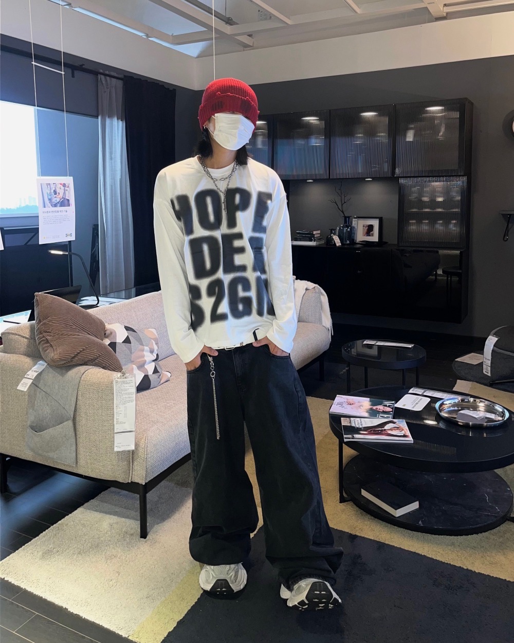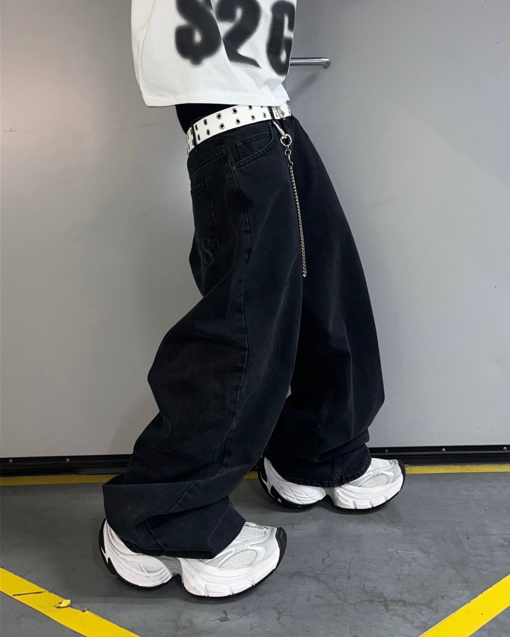 Cause closet LIGHT DARKLESS 刷印 水洗 寬版 黑牛仔褲